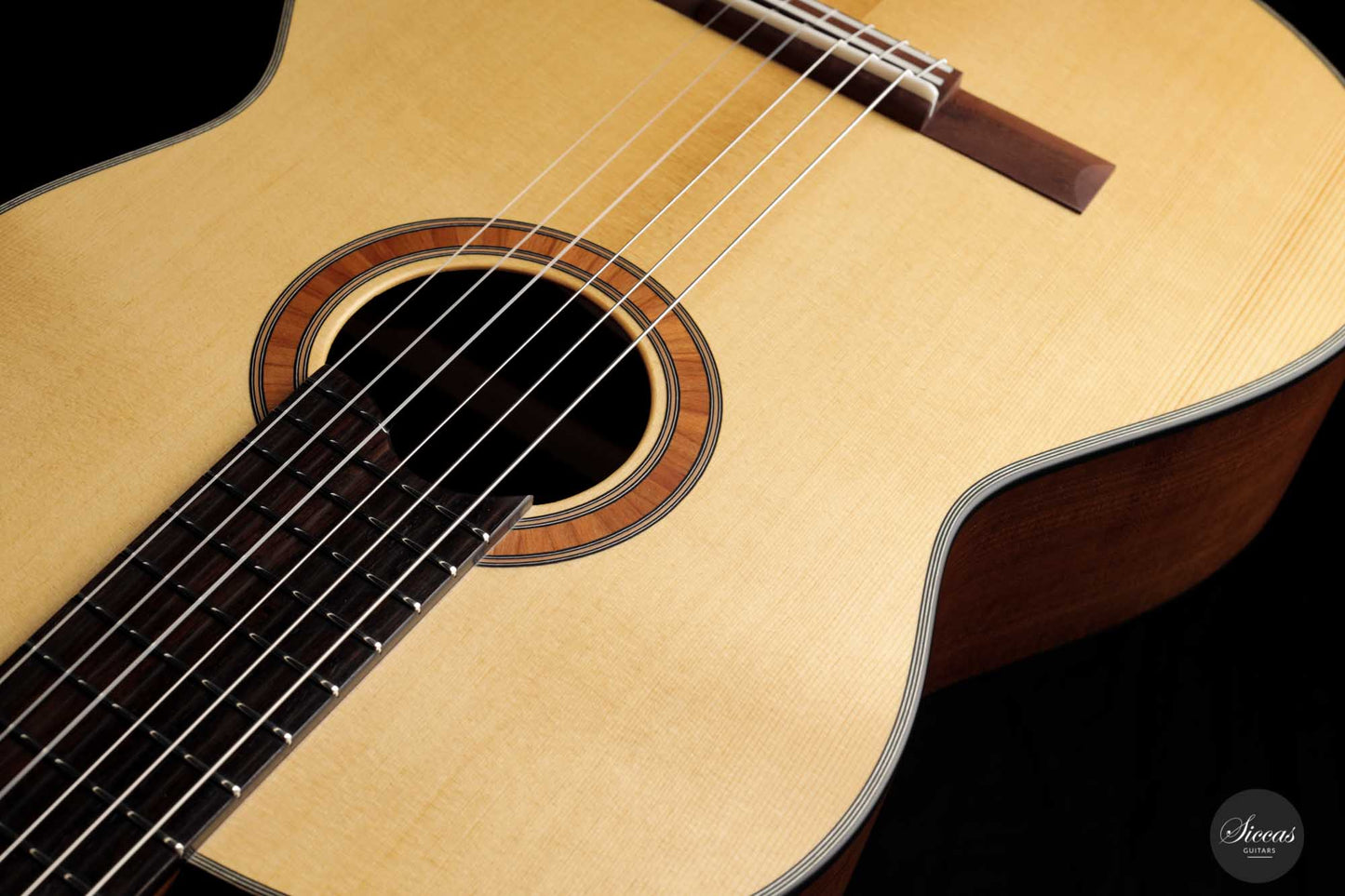 Die klassische Gitarre mit ihren weichen Nylonsaiten und ihrem charakteristischen Timbre ist zum Symbol der Kammermusik, der spanischen Tradition und des Konzertrepertoires geworden. Ihre moderne Form prägte Antonio de Torres im 19. Jahrhundert, indem er den Standard für Korpus, Fächerbeleistung und die 65-Zentimeter-Mensur setzte, die bis heute verwendet werden. Instrumente dieser Kategorie eröffnen eine reiche Palette von den feinen romantischen Miniaturen Tárregas bis zu den majestätischen Konzerten Rodrigos. Hier finden Sie Gitarren, die historische Kontinuität bewahren und zugleich zu neuen Interpretationen anregen.Alle Produkte der Kollektion ansehen -