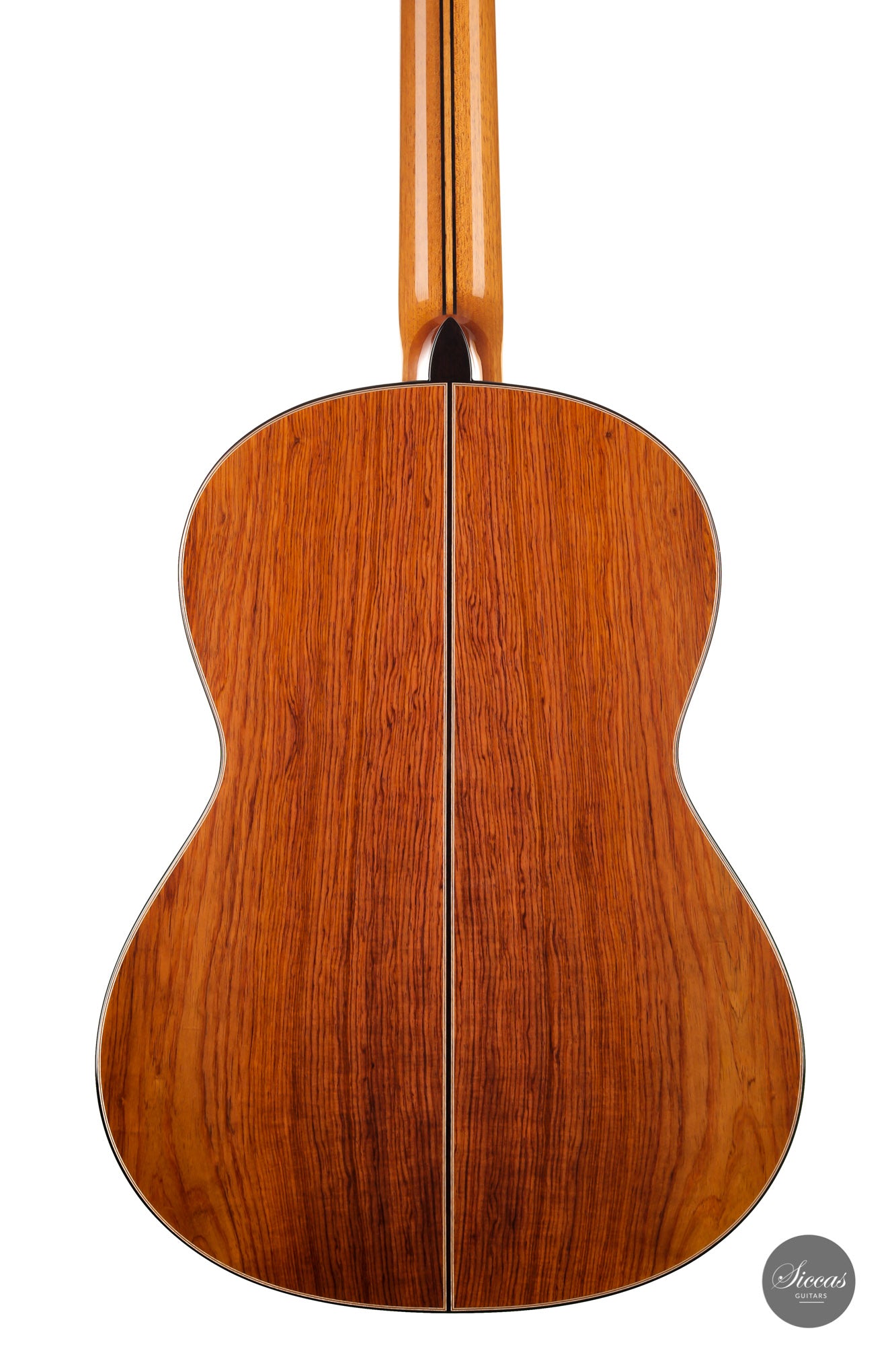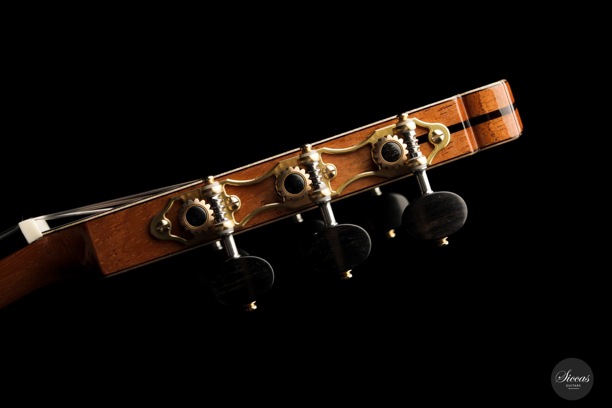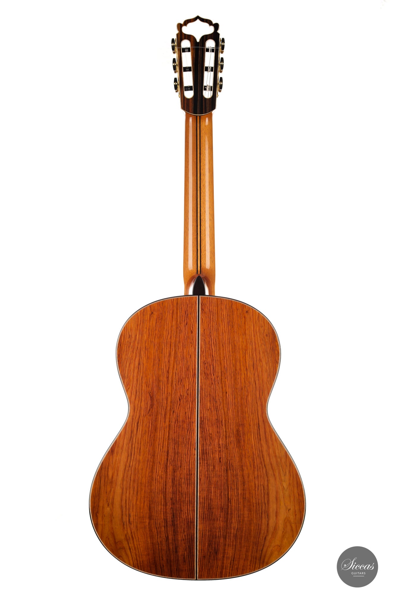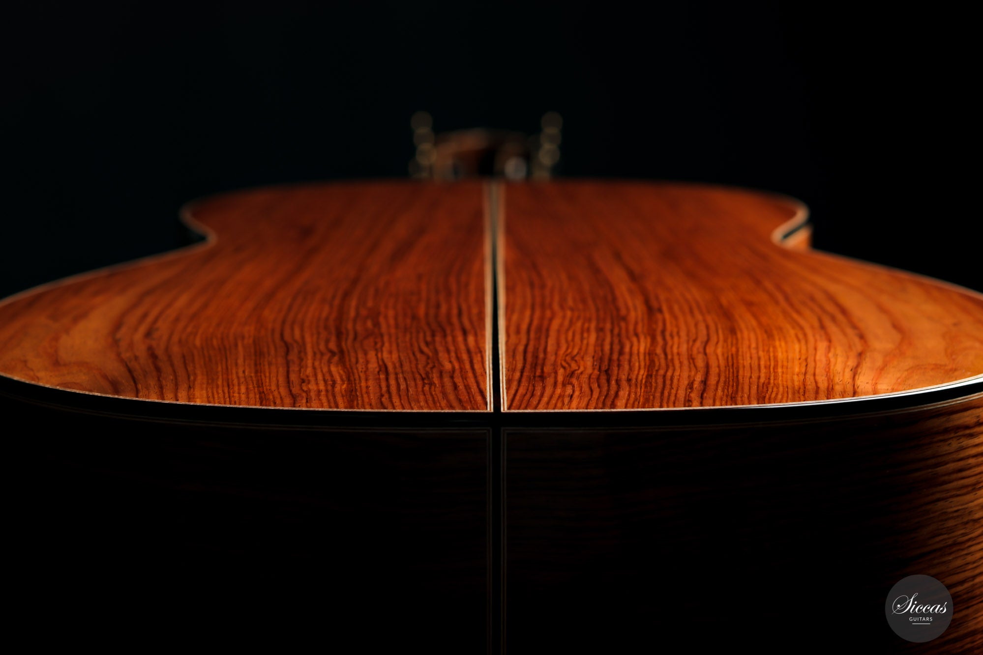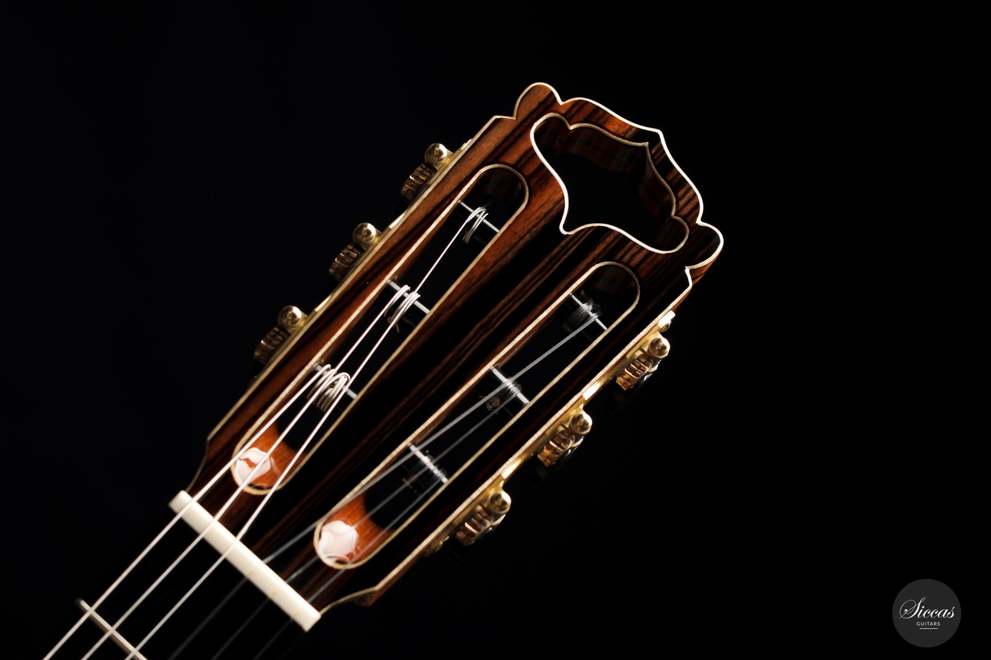 Grand Konzert, eine Innovation für große Räume. Boden und Zarge der Grand Konzert sind aus allerbestem mexikanischen Palo Escrito-Tonholz gefertigt, komplettiert durch eine perfekt geschnittene Fichtendecke von allerfeinster Holzqualität. Ein zweiter Klangboden aus wertigem Santos-Palisander sorgt freischwingend im Korpus für eine hervorragende Projektion und volleren Klang. Die kuppelgewölbte Decke mit 7-fach asymmetrisch gewichteter Fächerbeleistung optimiert den Wirkungsgrad dieser Konzertgitarre. Gerade durch ihr warmes und facettenreiches Timbre, den vollen Klang und die hervorragende Tonprojektion ist die Grand Konzert ideal für den großen Auftritt. Das Monitor-Schallloch unterstützt die Eigenwahrnehmung des Gitarristen und führt zu einer verbesserten direkten Hörbarkeit und Tonkontrolle. Der durchbrochene Palisander-Ahorn-Makassar-Kopf, die exklusive Alessi-Mechanik und die Korpuslackierung in Hochglanz sowie Deckenlackierung in aufwändigster Schelllack-Handpolitur runden dieses Instrument klanglich wie optisch ab. Inlusive Hiscox Pro II Koffer.
