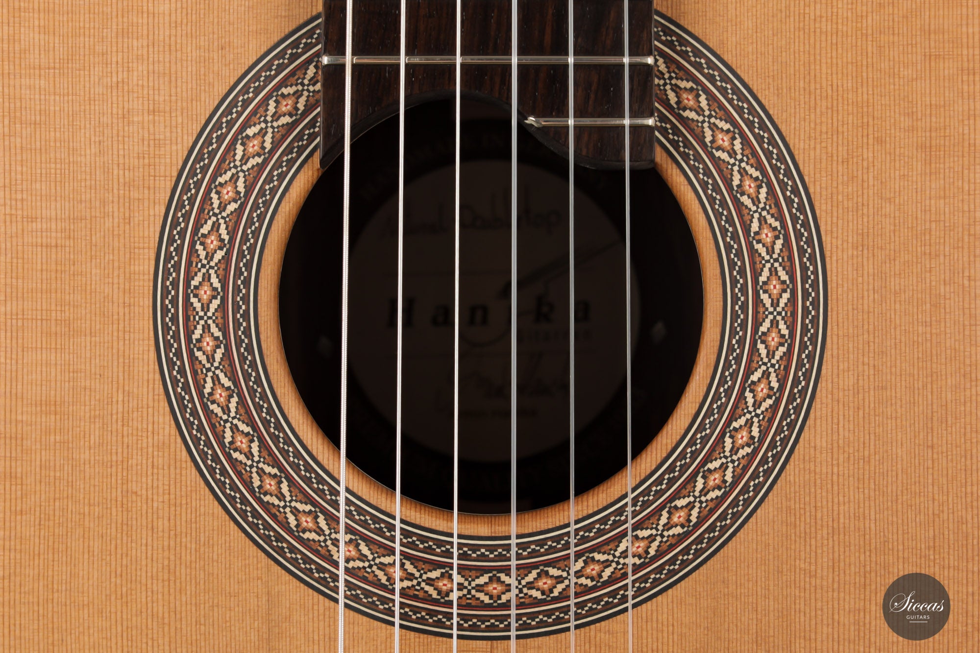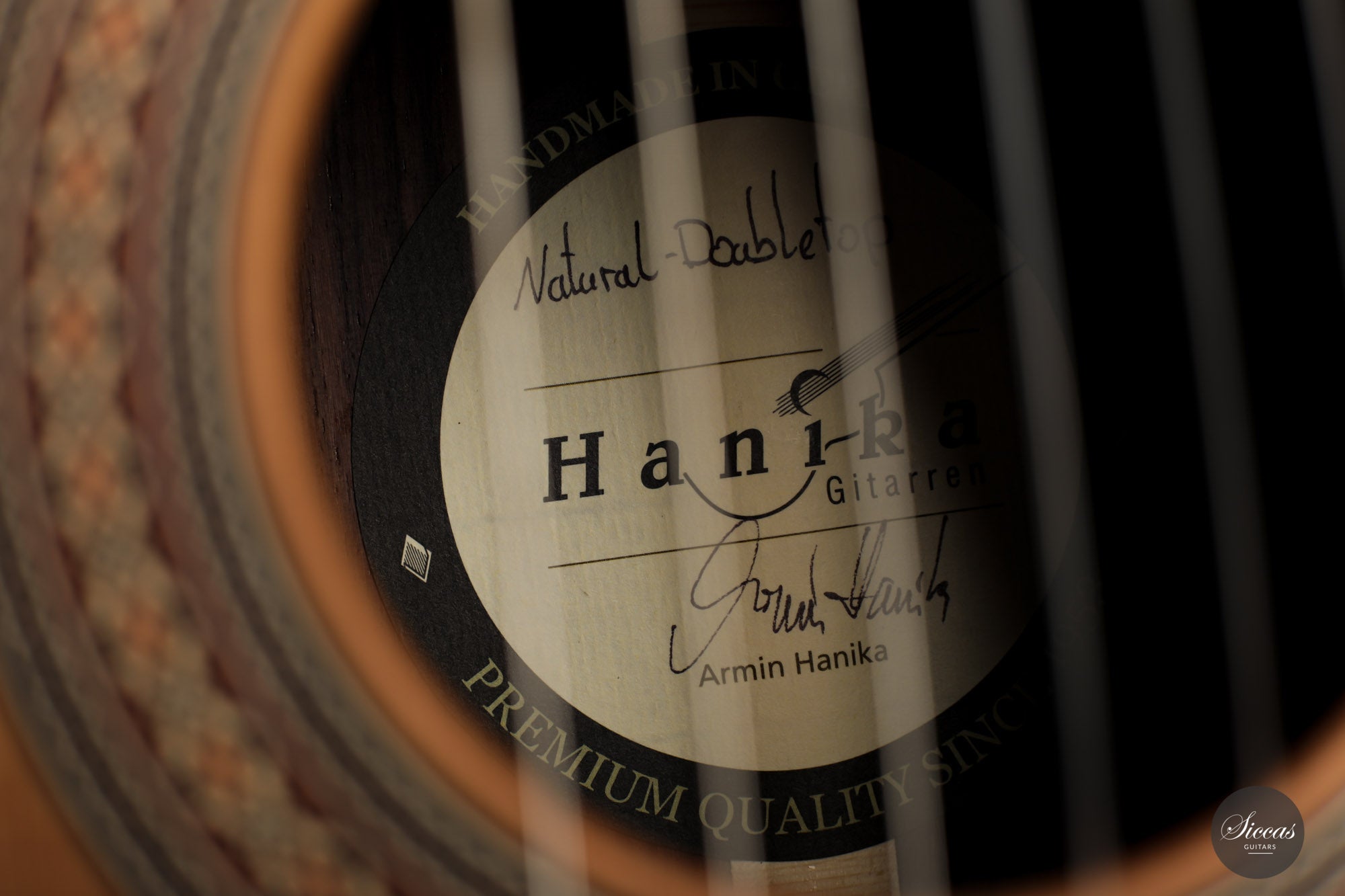 Back and sides of this model are made from select east Indian rosewood and a double-top soundboard made from finest cedar wood. The cedro neck has been reinforced at its core with hardwood / mahogany. The asymmetrically weighted domed soundboard that uses a sandwich design optimises efficiency. The Natural Doubletop delivers superior dynamics, a balanced range of tone colour, crispness and excellent responsiveness. All materials used for this classical guitar along with its workmanship and sound mean that it is able to meet elevated demands.The pierced rosewood-maple-Macassar head and noble designer tuning machines by Nicoló Alessi underline the high demands that the Natural Doubletop makes on quality. The volume of this guitar and the quick response are impressive. The player gets a very good feedback and it’s easy to play so that the player can play fast and virtuous. Depth of bass comes from an air resonance somewhat lower than F. The balance between the treble, middle and bass is very good. The tuning machines are made by Alessi. Comes with a Hanika Hiscox Pro II case.Regelmäßige Pflege verlängert die Lebensdauer des Instruments