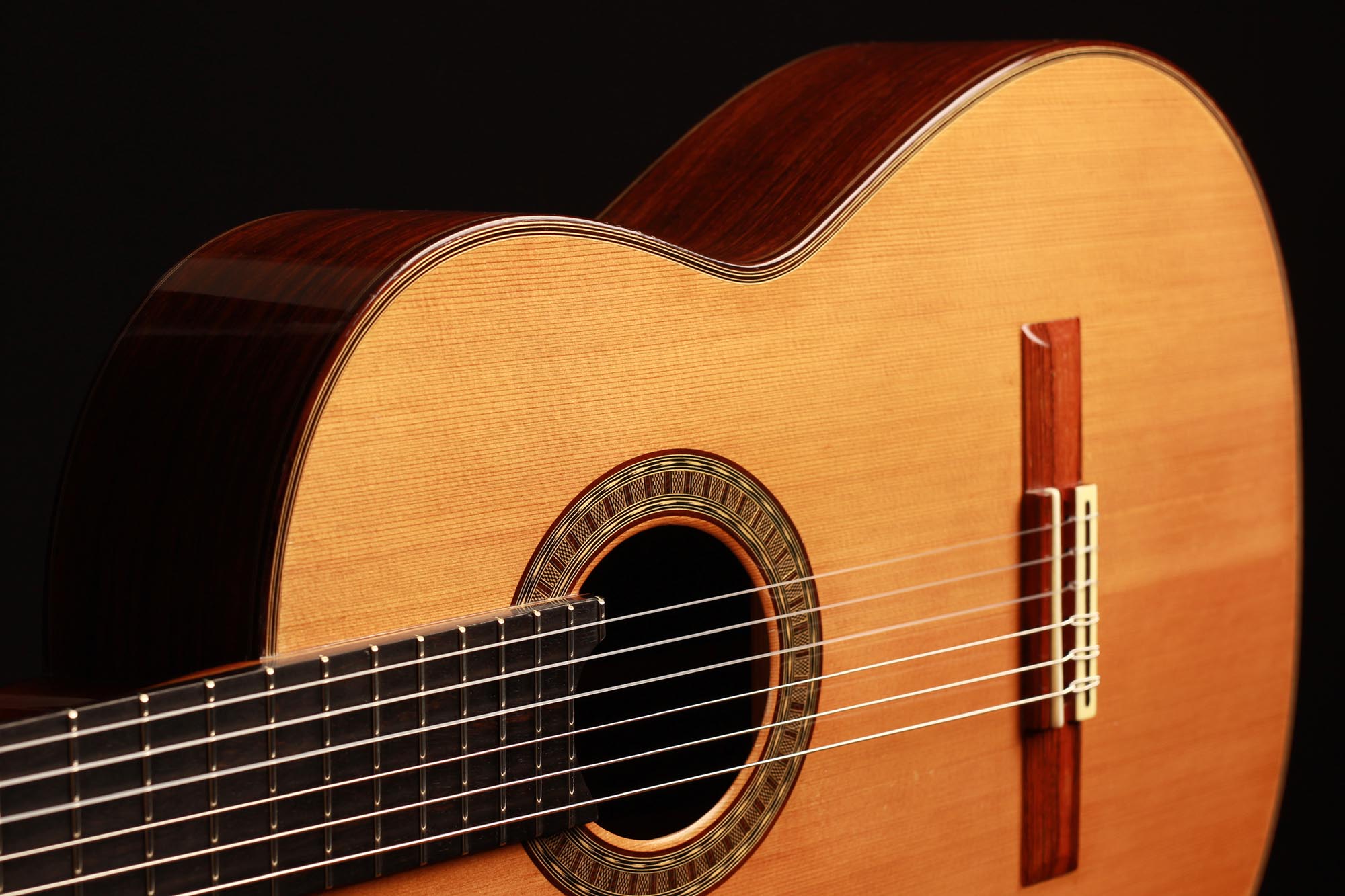 Die klassische Gitarre mit ihren weichen Nylonsaiten und ihrem charakteristischen Timbre ist zum Symbol der Kammermusik, der spanischen Tradition und des Konzertrepertoires geworden. Ihre moderne Form prägte Antonio de Torres im 19. Jahrhundert, indem er den Standard für Korpus, Fächerbeleistung und die 65-Zentimeter-Mensur setzte, die bis heute verwendet werden. Instrumente dieser Kategorie eröffnen eine reiche Palette von den feinen romantischen Miniaturen Tárregas bis zu den majestätischen Konzerten Rodrigos. Hier finden Sie Gitarren, die historische Kontinuität bewahren und zugleich zu neuen Interpretationen anregen.