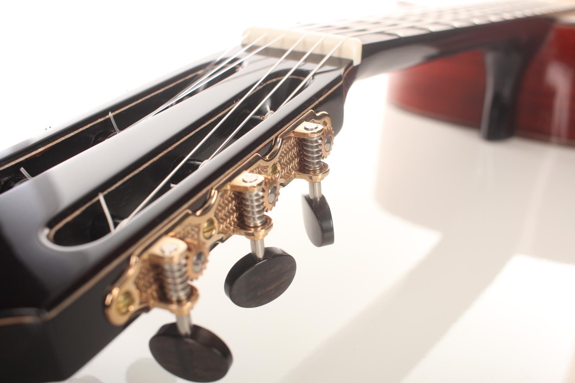 Bernd Holzgruber was born in 1939 in Velden at Wörthersee (Carinthia) in Austria. He studied guitar with Karl Scheit in Vienna and played his final examination in 1968 on a self-constructed instrument. Since then, he took care of Scheit’s instrument collection, which gave him the possibility to study master guitars as Robert Bouchet’s instruments. He is a pioneer in the construction of historical instruments and a creative luthier. He continuously developed his models during his 50-year career.