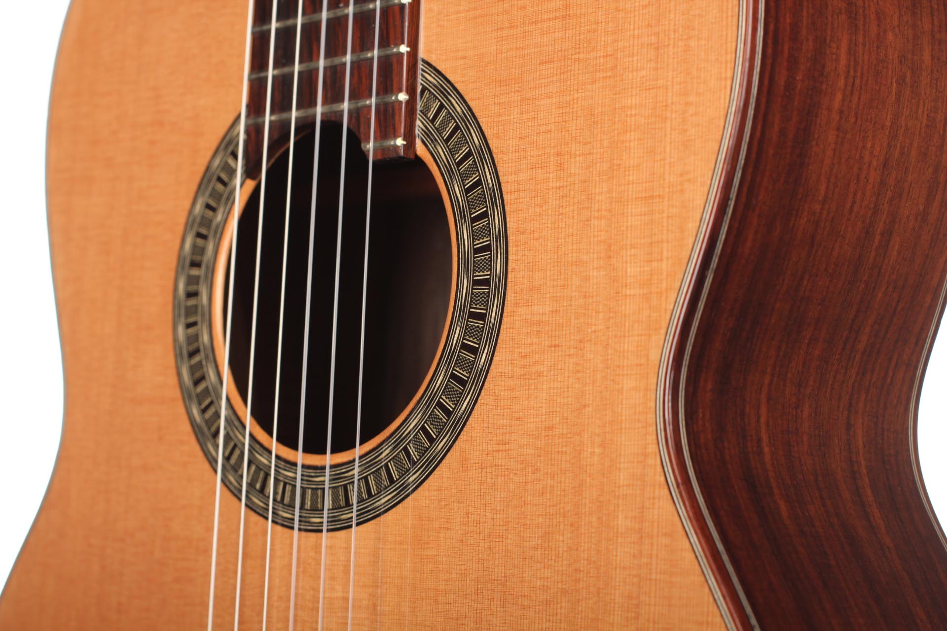 Die klassische Gitarre mit ihren weichen Nylonsaiten und ihrem charakteristischen Timbre ist zum Symbol der Kammermusik, der spanischen Tradition und des Konzertrepertoires geworden. Ihre moderne Form prägte Antonio de Torres im 19. Jahrhundert, indem er den Standard für Korpus, Fächerbeleistung und die 65-Zentimeter-Mensur setzte, die bis heute verwendet werden. Instrumente dieser Kategorie eröffnen eine reiche Palette von den feinen romantischen Miniaturen Tárregas bis zu den majestätischen Konzerten Rodrigos. Hier finden Sie Gitarren, die historische Kontinuität bewahren und zugleich zu neuen Interpretationen anregen.Alle Produkte der Kollektion ansehen -