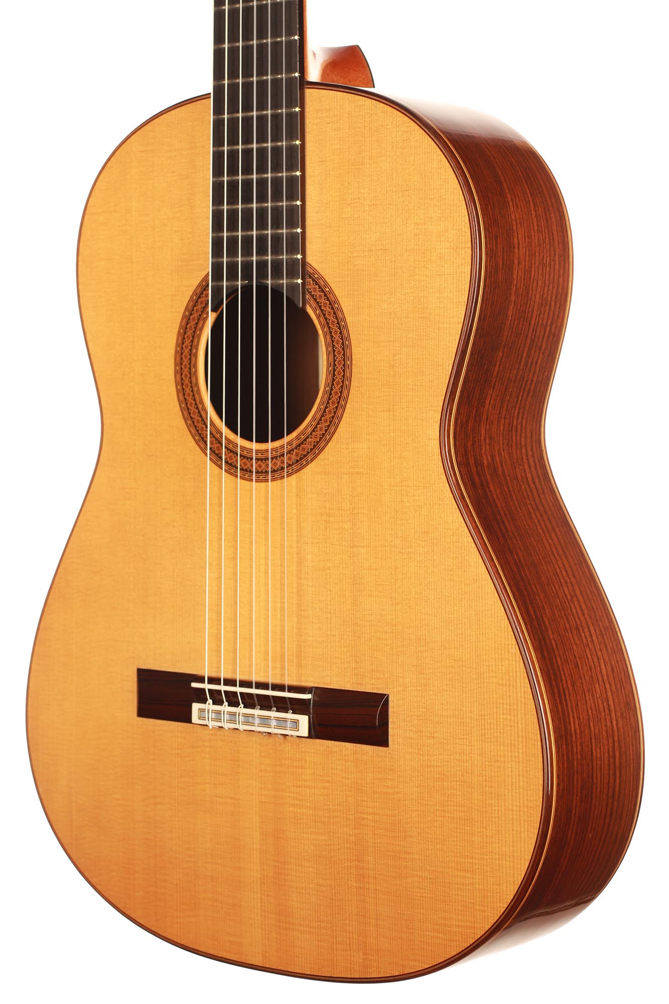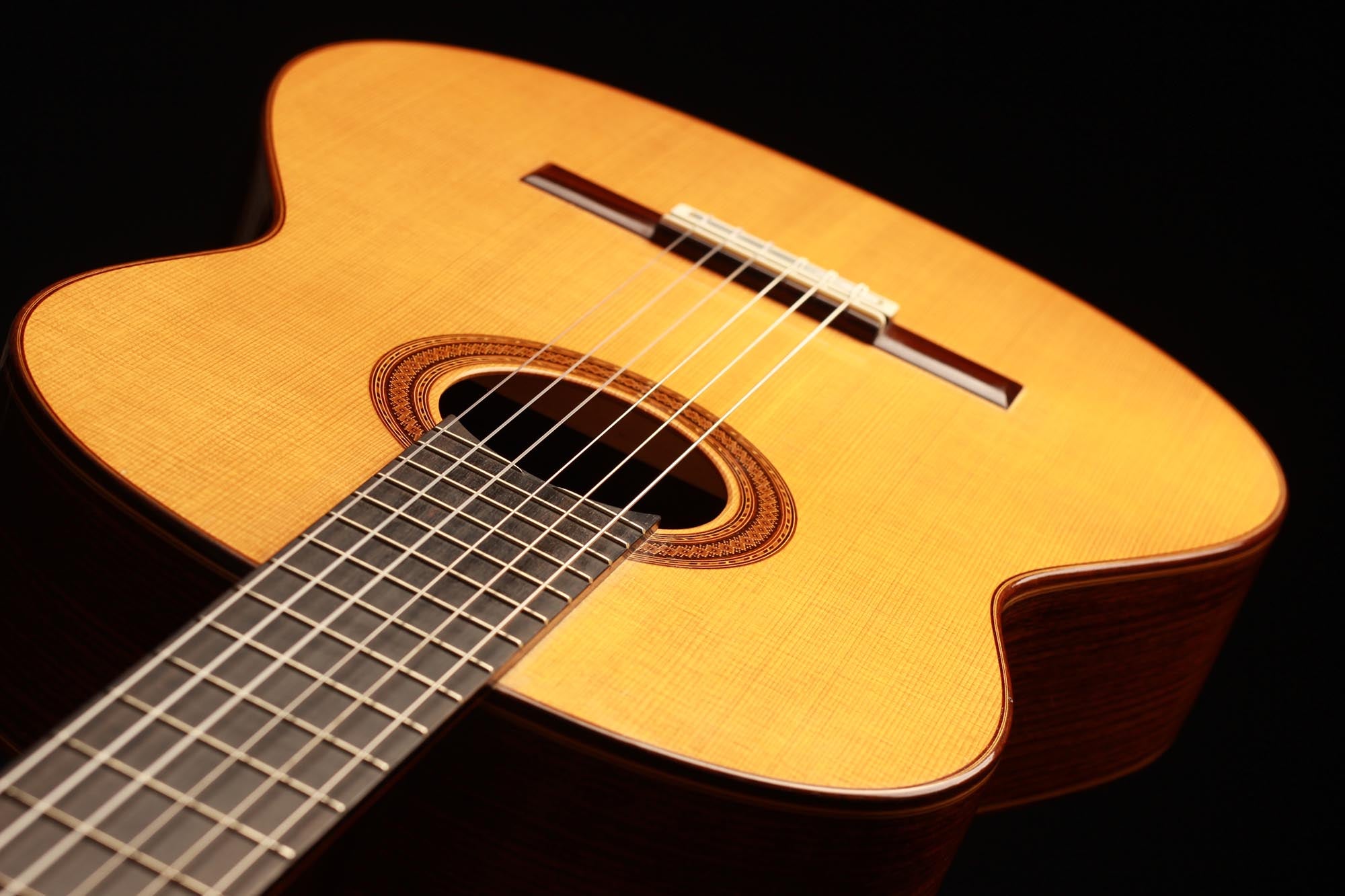 Die klassische Gitarre mit ihren weichen Nylonsaiten und ihrem charakteristischen Timbre ist zum Symbol der Kammermusik, der spanischen Tradition und des Konzertrepertoires geworden. Ihre moderne Form prägte Antonio de Torres im 19. Jahrhundert, indem er den Standard für Korpus, Fächerbeleistung und die 65-Zentimeter-Mensur setzte, die bis heute verwendet werden. Instrumente dieser Kategorie eröffnen eine reiche Palette von den feinen romantischen Miniaturen Tárregas bis zu den majestätischen Konzerten Rodrigos. Hier finden Sie Gitarren, die historische Kontinuität bewahren und zugleich zu neuen Interpretationen anregen.