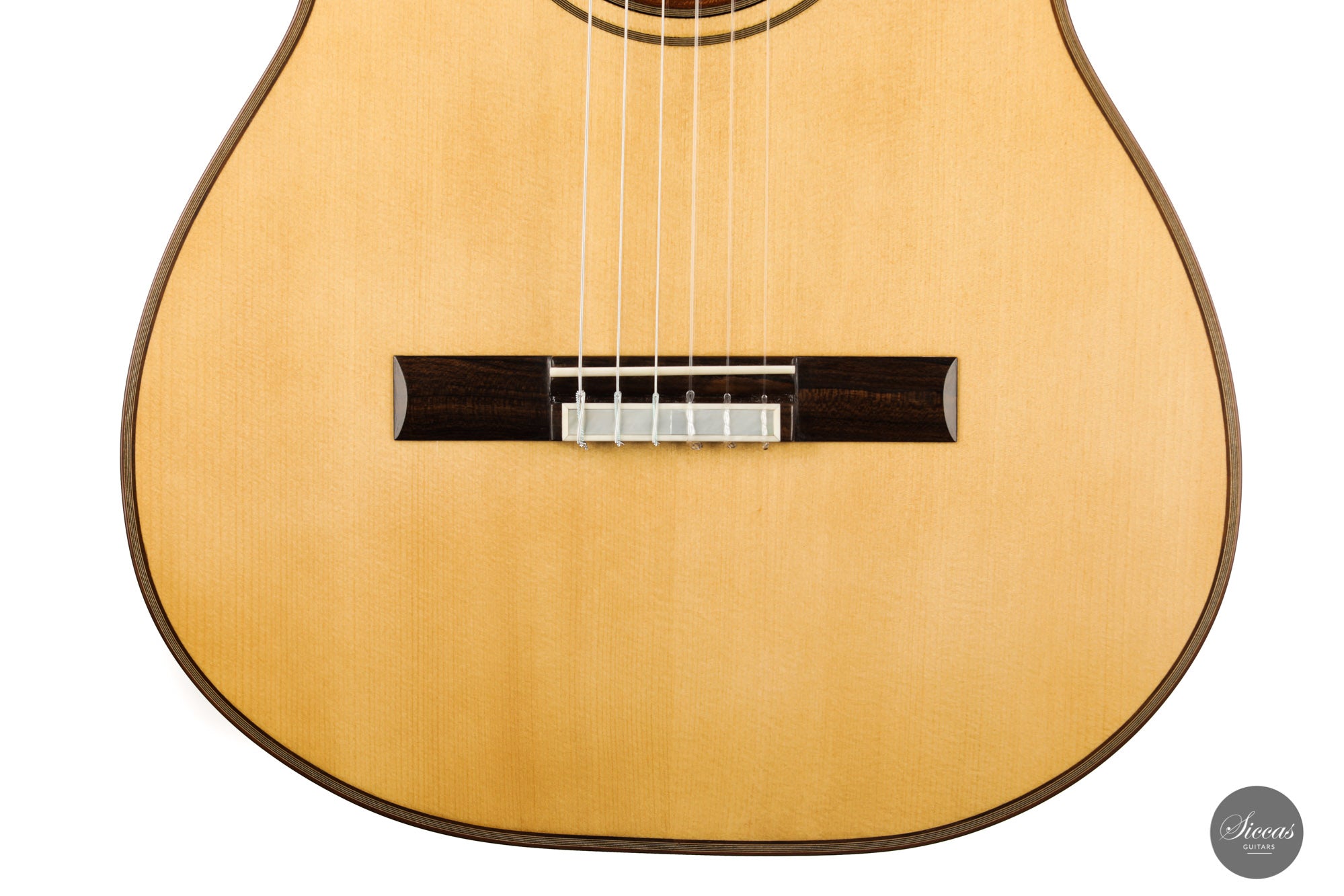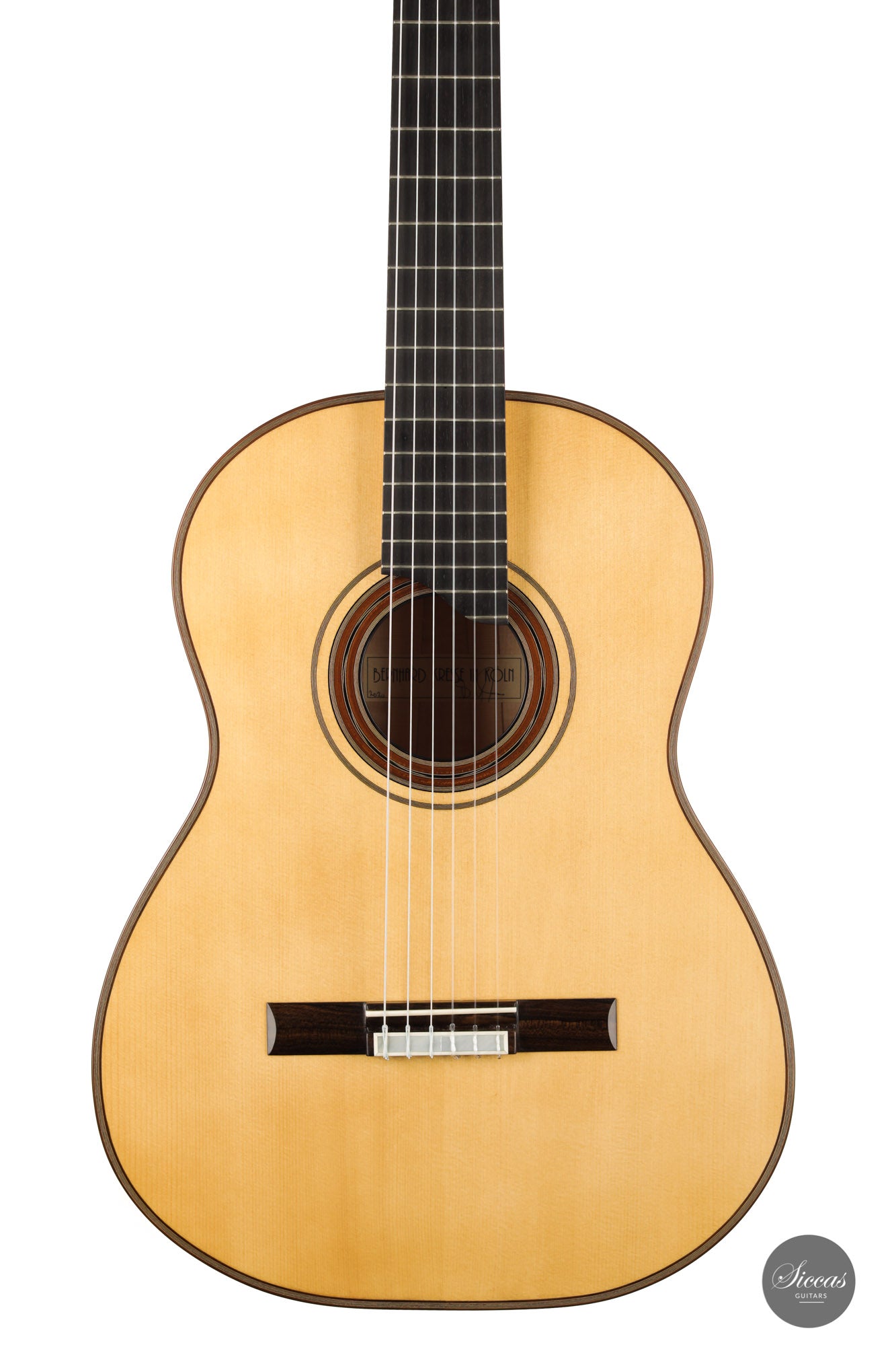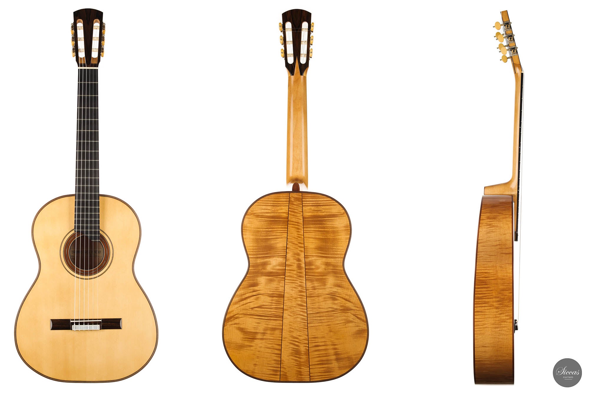 Our fascination for this guitar also applies to its sound. The very clear and easy to modulate tone has an elegant charm, with a notorious power and projection. The impressing ease of playing and the pure transparency of the tone in the trebles make this guitar a highly mesmerizing instrument. In summary, it is a true gem from one of the most experienced luthiers in Germany.