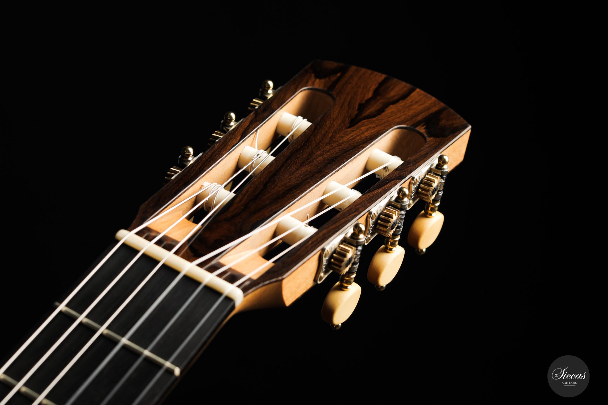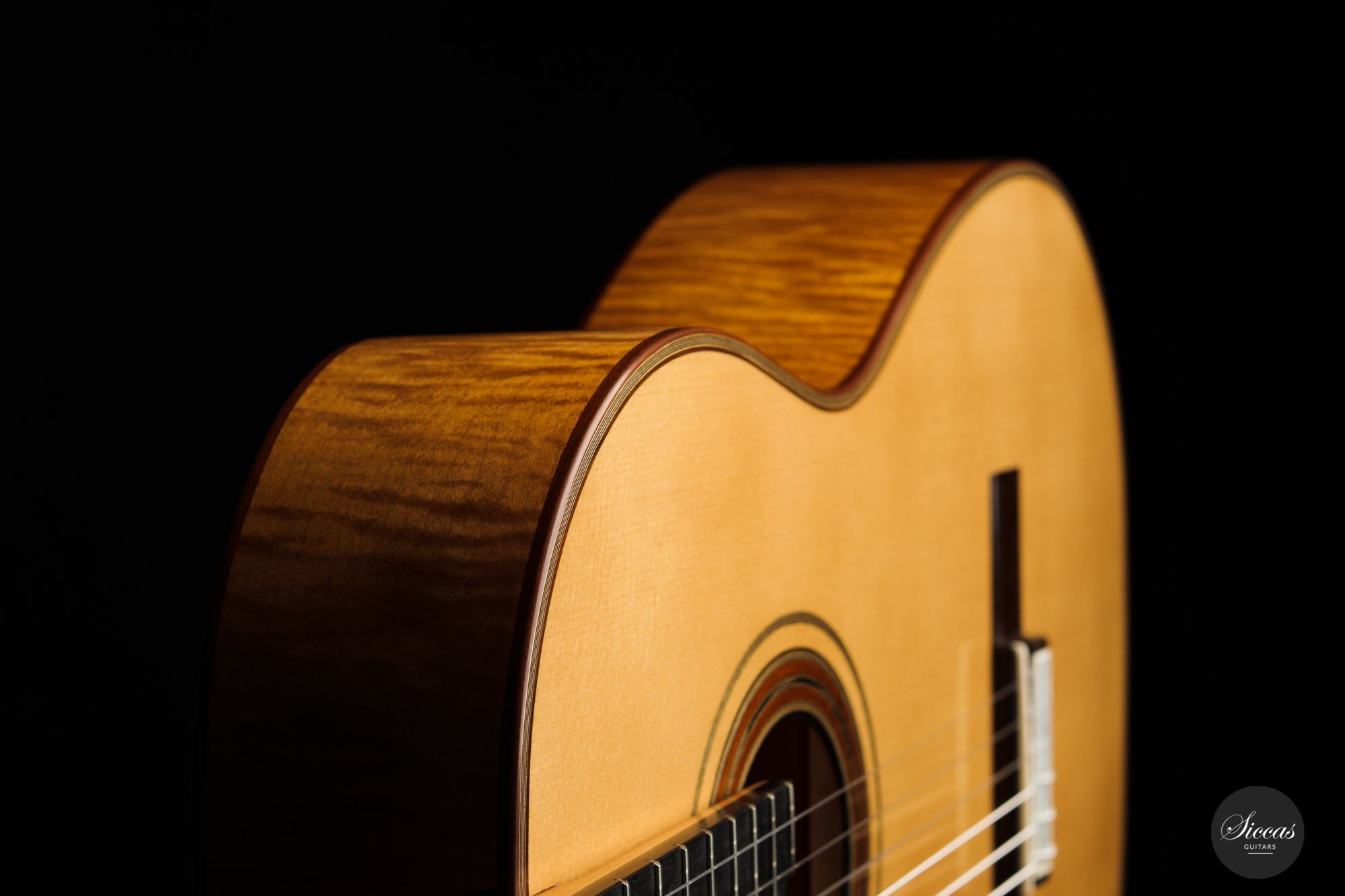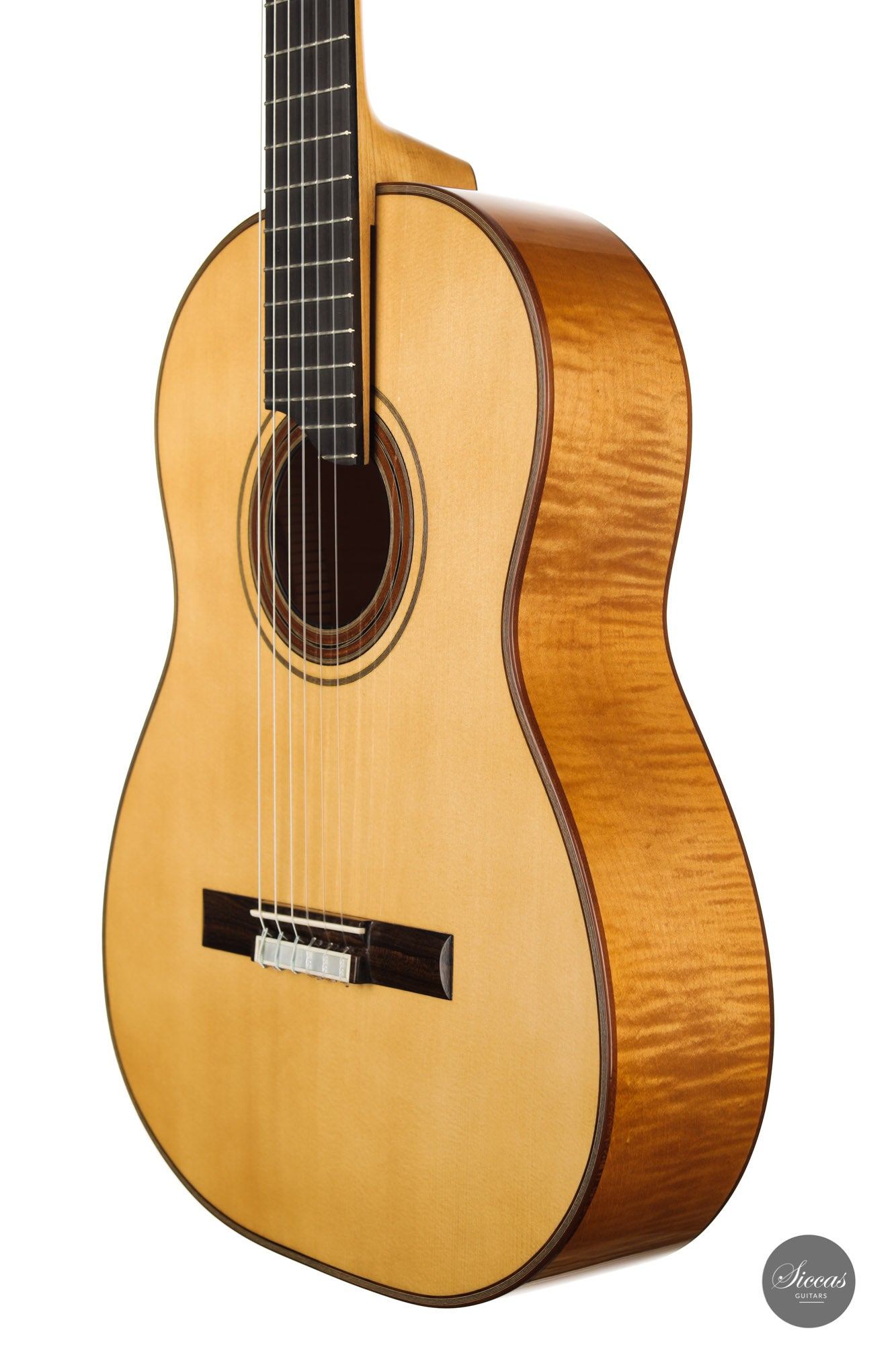 Our fascination for this guitar also applies to its sound. The very clear and easy to modulate tone has an elegant charm, with a notorious power and projection. The impressing ease of playing and the pure transparency of the tone in the trebles make this guitar a highly mesmerizing instrument. In summary, it is a true gem from one of the most experienced luthiers in Germany.