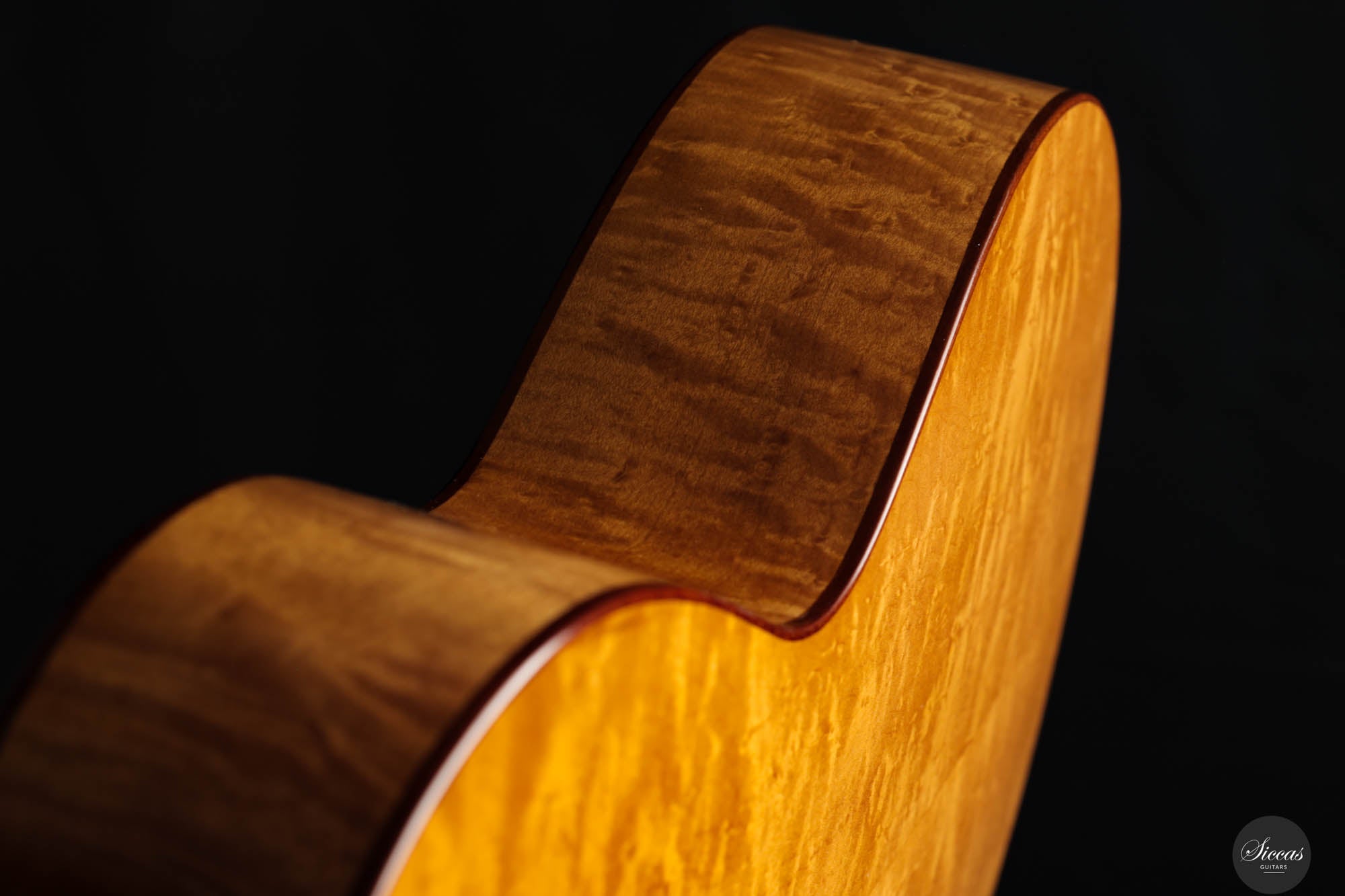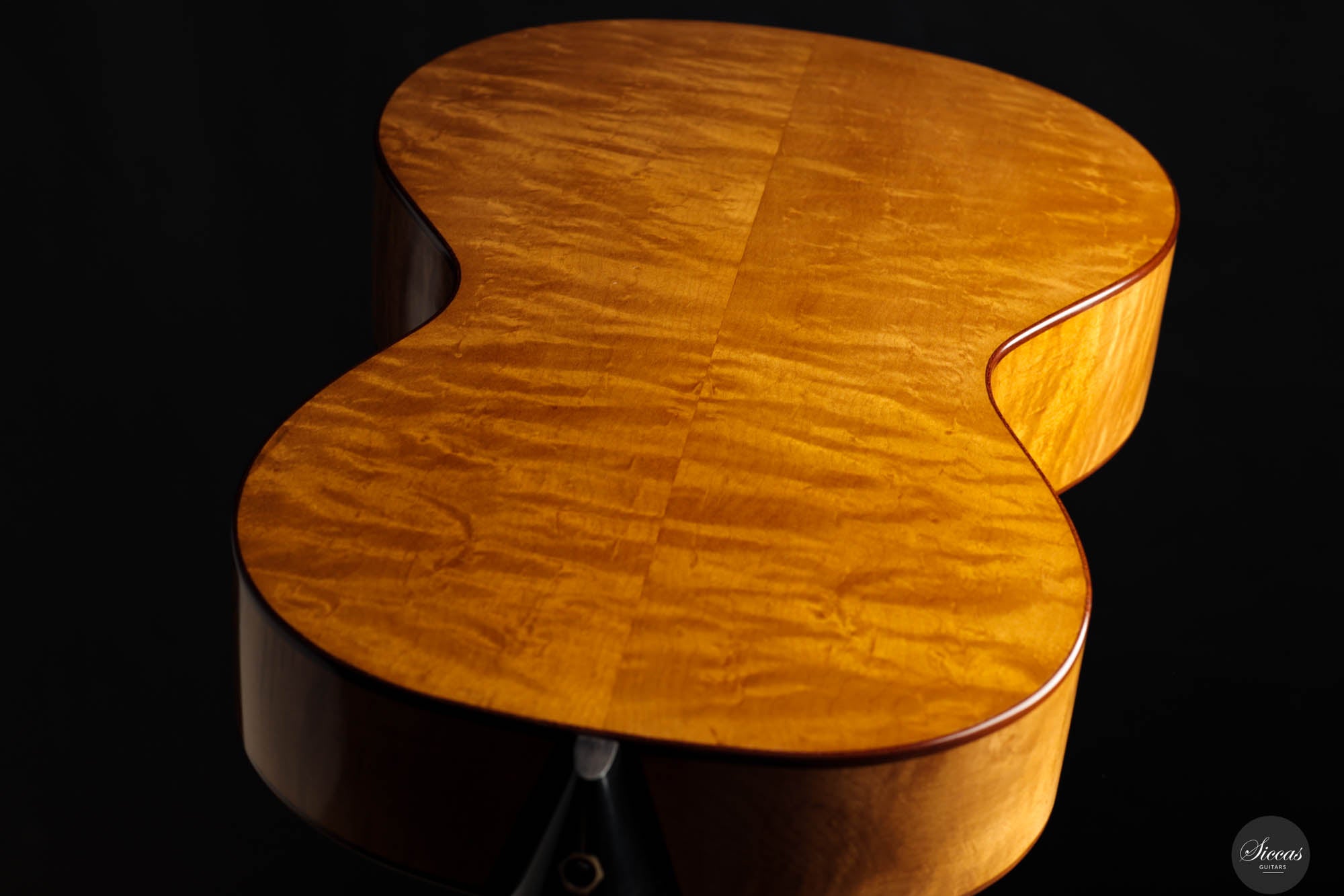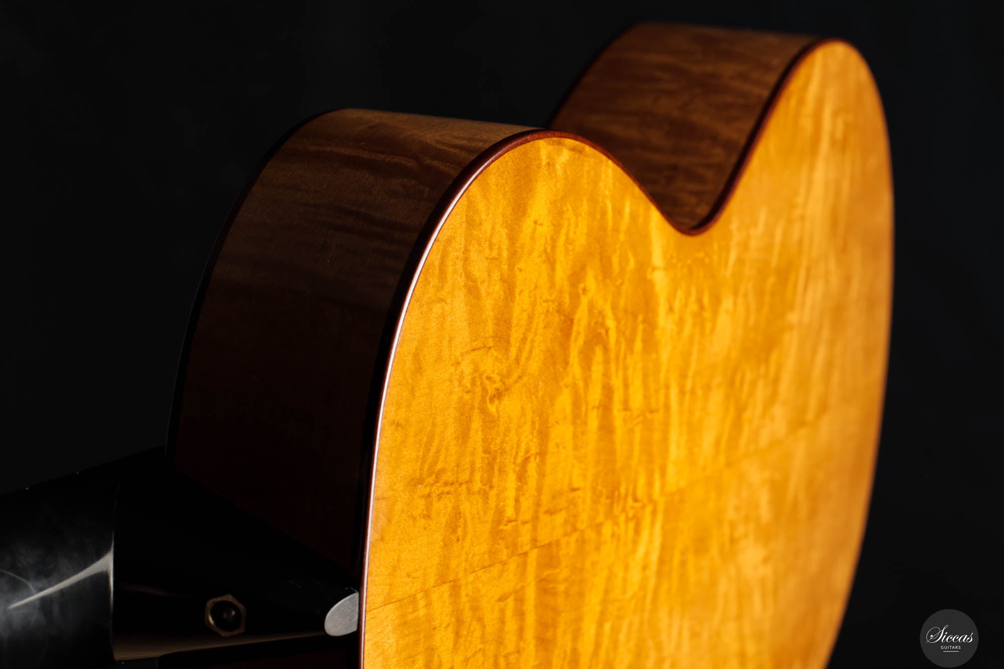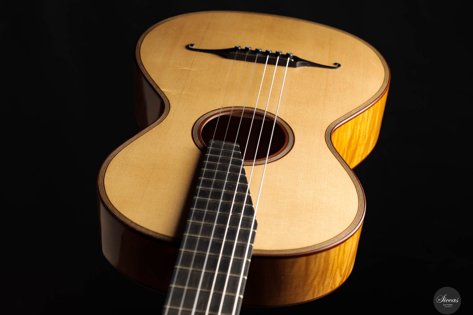 Dieses Instrument verkörpert Bernhards tiefes Fachwissen und seine Leidenschaft für historische Gitarren. Es handelt sich um ein herausragendes Konzertinstrument mit schneller Ansprache, außergewöhnlicher Projektion und bemerkenswerter Lautstärke. Mit Blick auf Komfort gestaltet, verfügt es über einen verstellbaren Hals und ein leicht erhöhtes Griffbrett, inspiriert von Stauffers patentiertem Design. Die verwendeten Materialien sind von höchster Qualität: Die Fichtendecke sowie Boden und Zargen aus eindrucksvollem Ahorn sind sowohl optisch ansprechend als auch klanglich hervorragend. Darüber hinaus verleiht die elegante Mechanik von Rodgers der Gitarre nicht nur ästhetischen Reiz, sondern arbeitet auch makellos. Diese Gitarre im Stauffer-Stil bietet eine einzigartige Gelegenheit für jeden Gitarristen, der ein historisches Instrument sucht, das von einem der weltweit führenden Experten im Bereich des historischen Gitarrenbaus gefertigt wurde.
