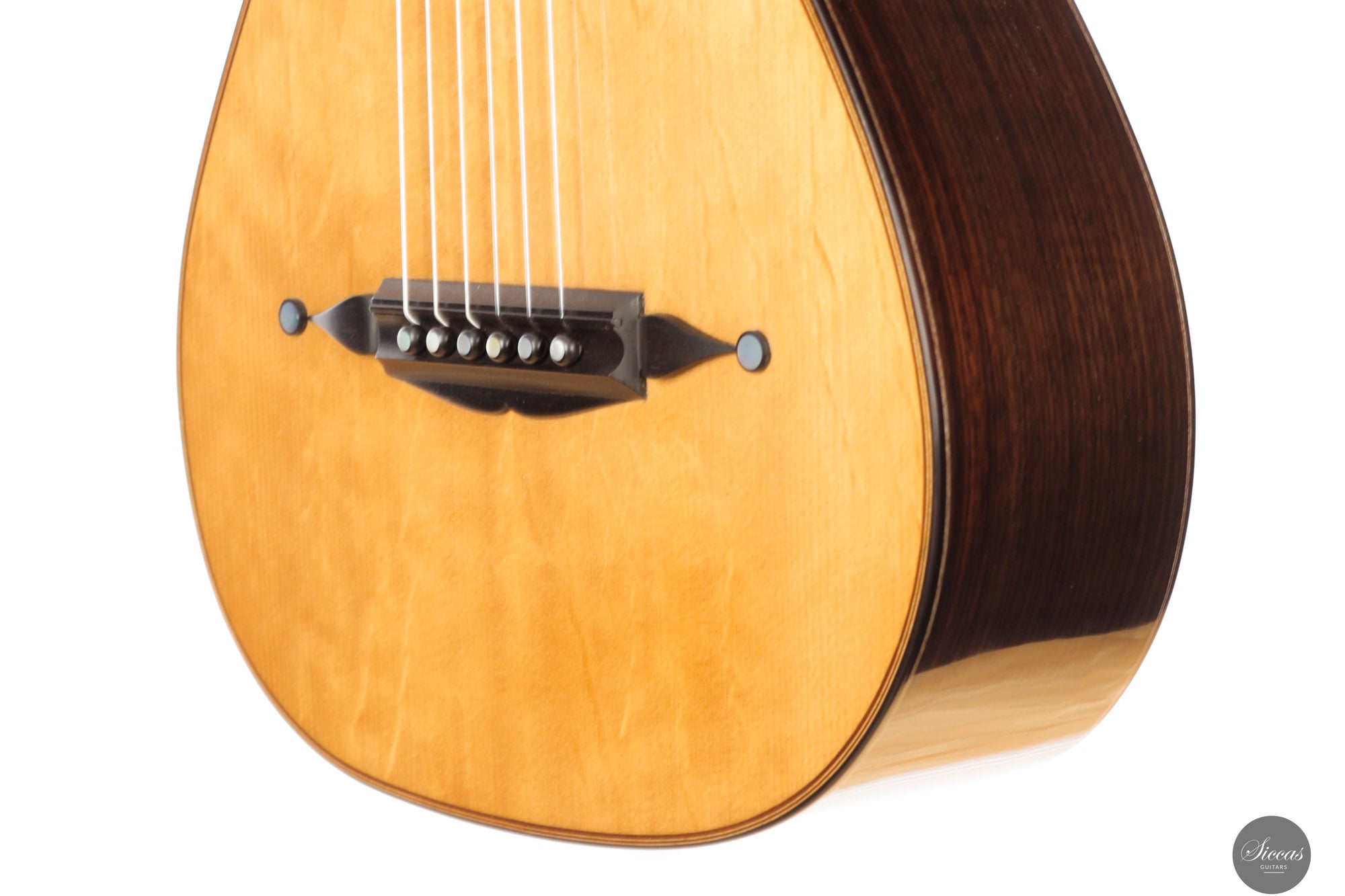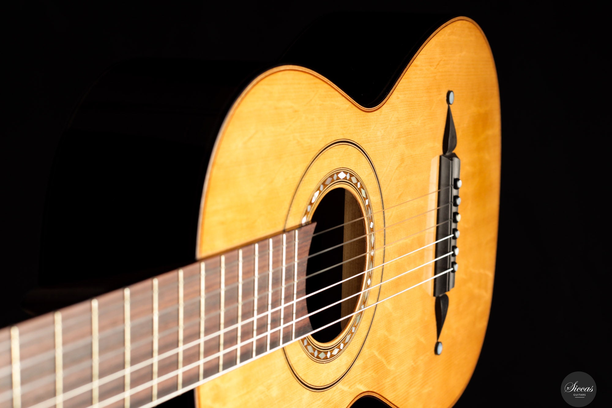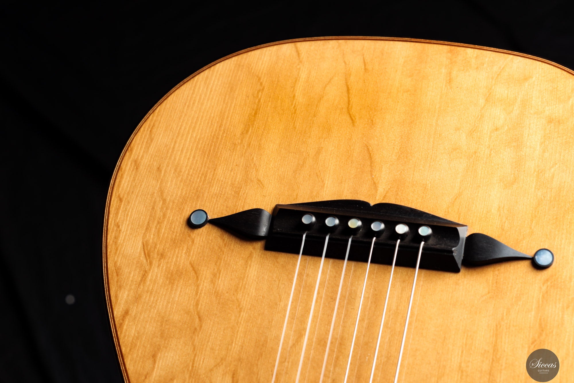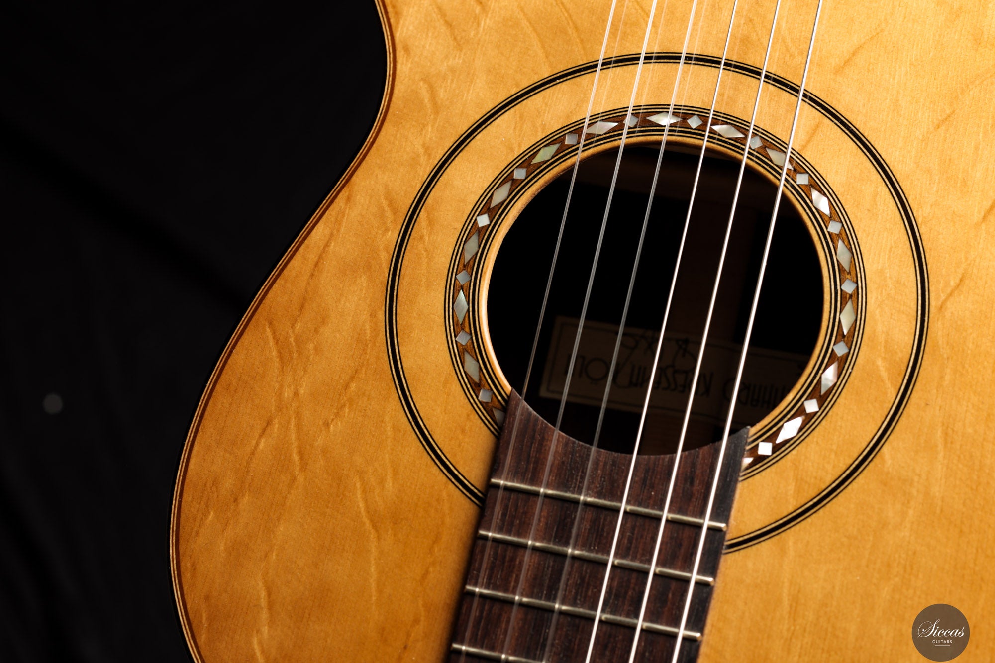 Dieses Instrument, fertiggestellt im Jahr 2025, ist Kresses Interpretation einer Gitarre von Louis Panormo aus dem Jahr 1843. Die Decke besteht aus Fichte, Boden und Zargen aus indischem Palisander, das Finish ist eine Schellackpolitur. Mit einer Mensur von 630 mm, einer Sattelbreite von 47 mm und einem sehr geringen Gewicht von 1190 Gramm bietet die Gitarre das Spielgefühl und die Wendigkeit romantischer Instrumente. Alessi Mechaniken runden die elegante und präzise Ausführung ab. Klanglich zeigt sich ein intimer, lyrischer Charakter mit dem typischen Fokus auf den Mitten, einer weichen, leicht boxigen Färbung und einem dezenten nasalen Ton, wie man ihn von originalen Panormo Gitarren kennt. Die ausgewogene Klarheit eignet sich hervorragend für klassische und romantische Literatur, während die neue Bauweise Stabilität und Zuverlässigkeit gewährleistet.Regelmäßige Pflege verlängert die Lebensdauer des Instruments