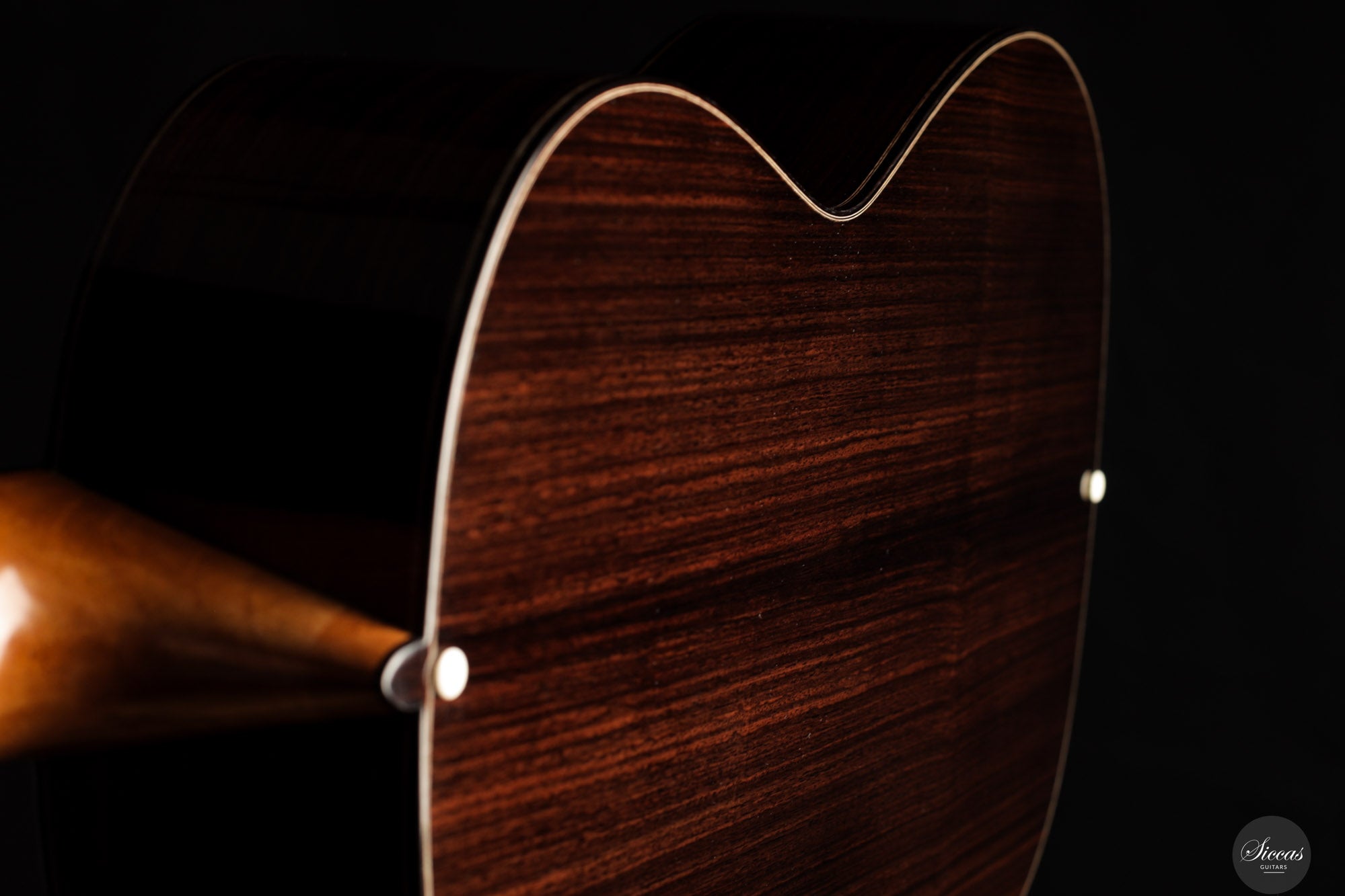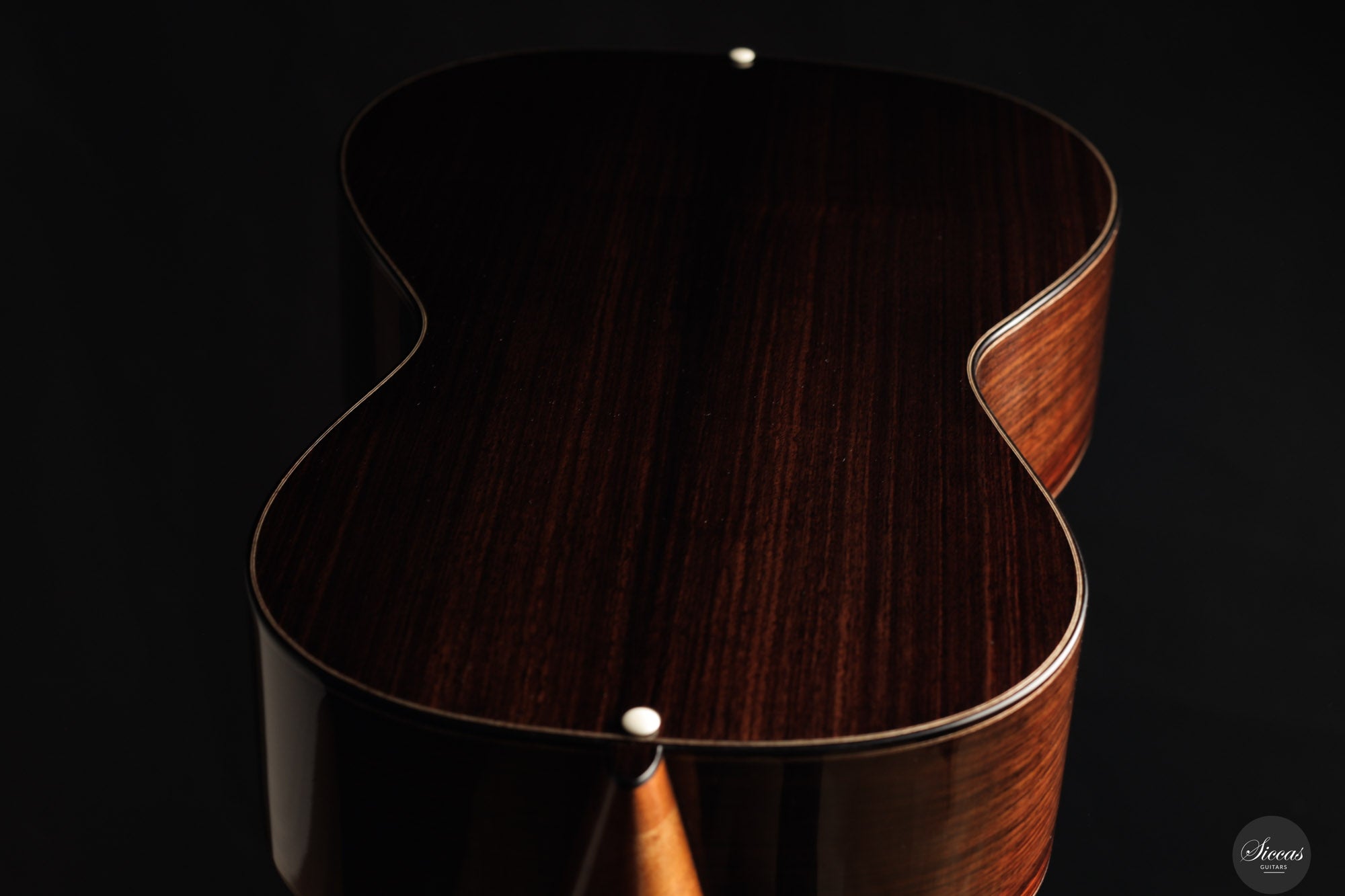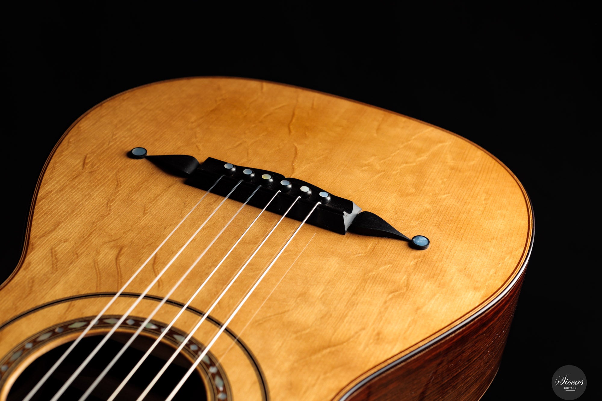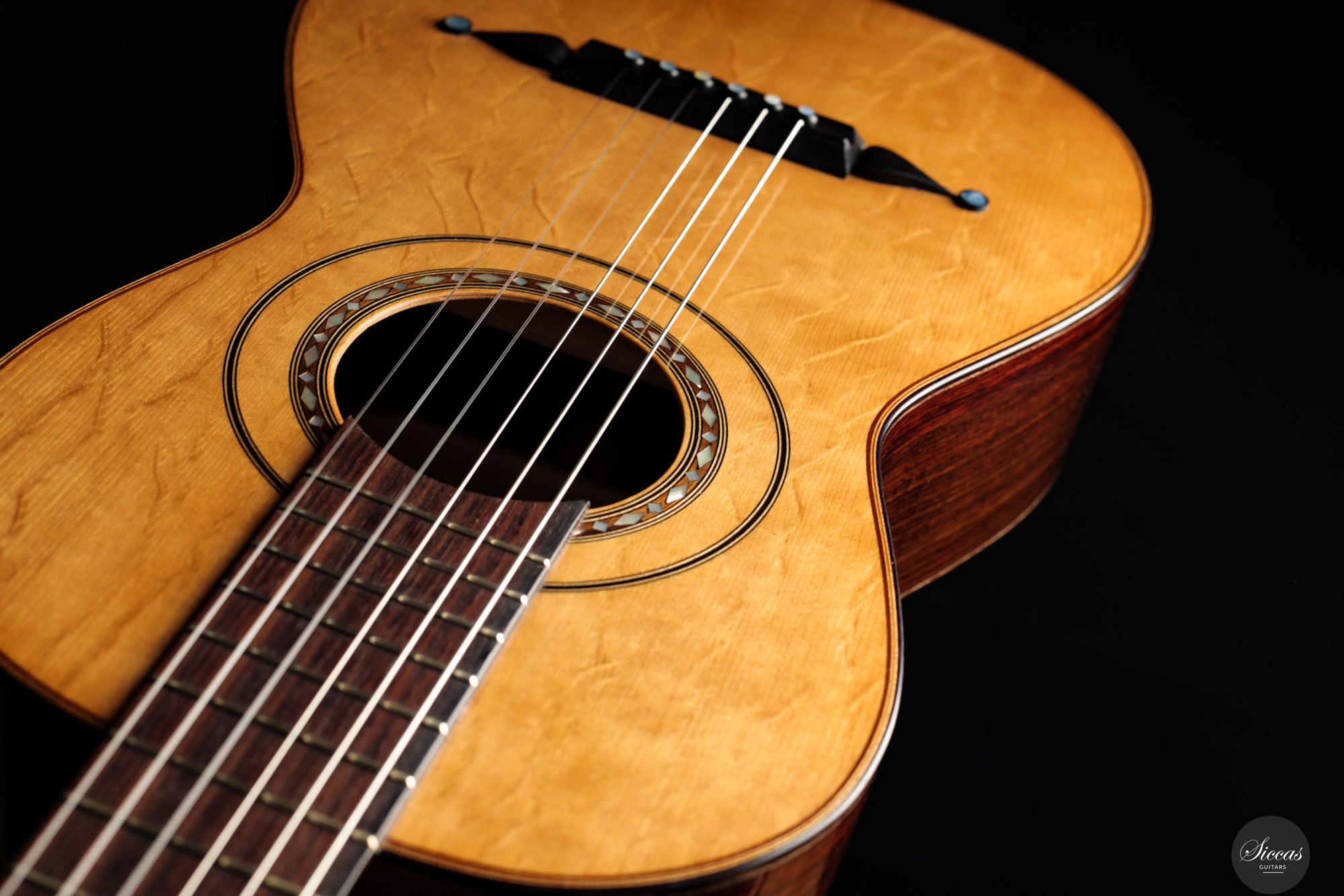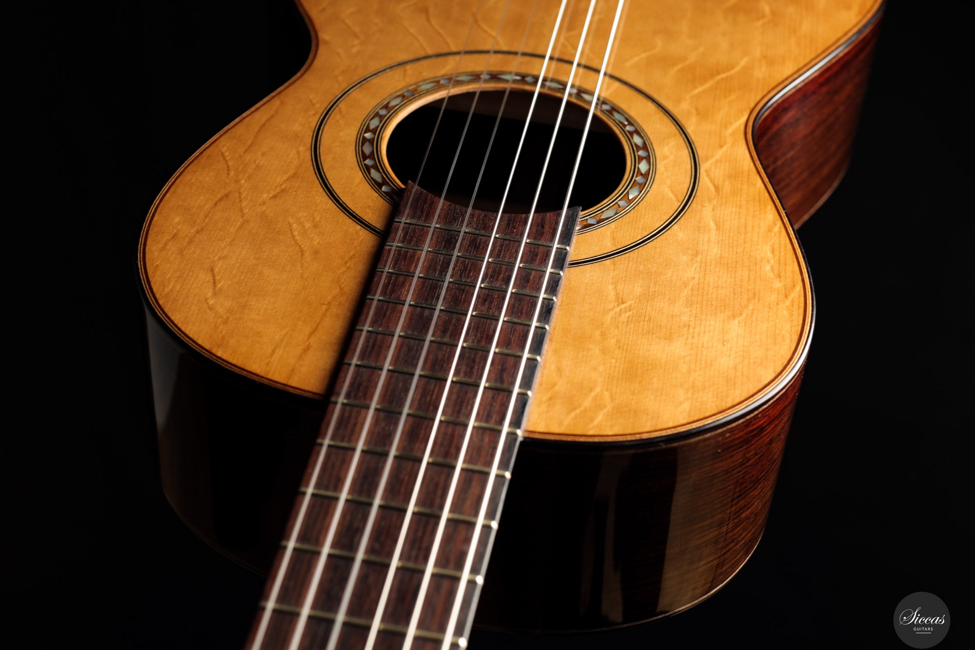 Dieses Instrument, fertiggestellt im Jahr 2025, ist Kresses Interpretation einer Gitarre von Louis Panormo aus dem Jahr 1843. Die Decke besteht aus Fichte, Boden und Zargen aus indischem Palisander, das Finish ist eine Schellackpolitur. Mit einer Mensur von 630 mm, einer Sattelbreite von 47 mm und einem sehr geringen Gewicht von 1190 Gramm bietet die Gitarre das Spielgefühl und die Wendigkeit romantischer Instrumente. Alessi Mechaniken runden die elegante und präzise Ausführung ab. Klanglich zeigt sich ein intimer, lyrischer Charakter mit dem typischen Fokus auf den Mitten, einer weichen, leicht boxigen Färbung und einem dezenten nasalen Ton, wie man ihn von originalen Panormo Gitarren kennt. Die ausgewogene Klarheit eignet sich hervorragend für klassische und romantische Literatur, während die neue Bauweise Stabilität und Zuverlässigkeit gewährleistet.Regelmäßige Pflege verlängert die Lebensdauer des Instruments