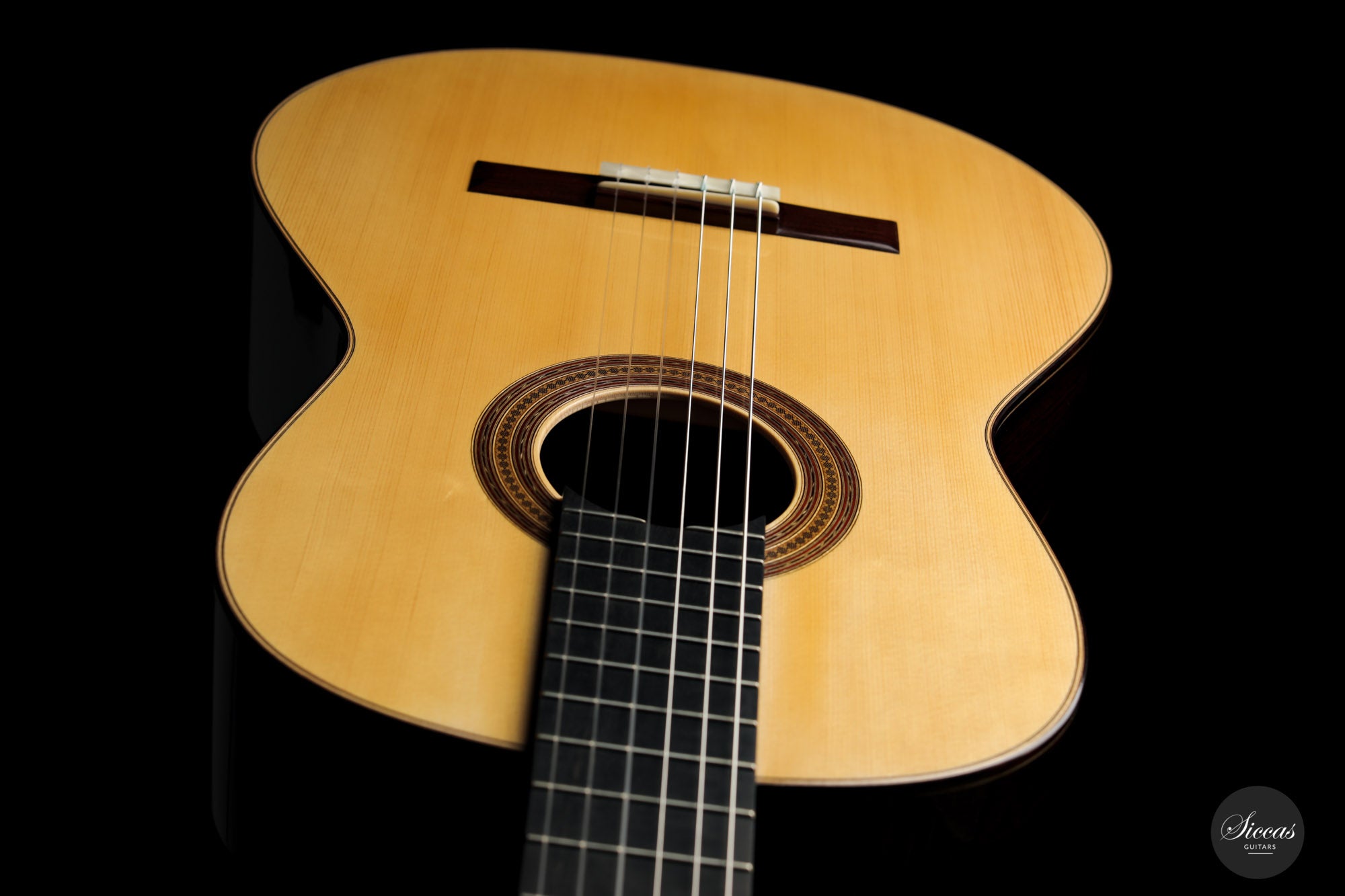 Die klassische Gitarre mit ihren weichen Nylonsaiten und ihrem charakteristischen Timbre ist zum Symbol der Kammermusik, der spanischen Tradition und des Konzertrepertoires geworden. Ihre moderne Form prägte Antonio de Torres im 19. Jahrhundert, indem er den Standard für Korpus, Fächerbeleistung und die 65-Zentimeter-Mensur setzte, die bis heute verwendet werden. Instrumente dieser Kategorie eröffnen eine reiche Palette von den feinen romantischen Miniaturen Tárregas bis zu den majestätischen Konzerten Rodrigos. Hier finden Sie Gitarren, die historische Kontinuität bewahren und zugleich zu neuen Interpretationen anregen.