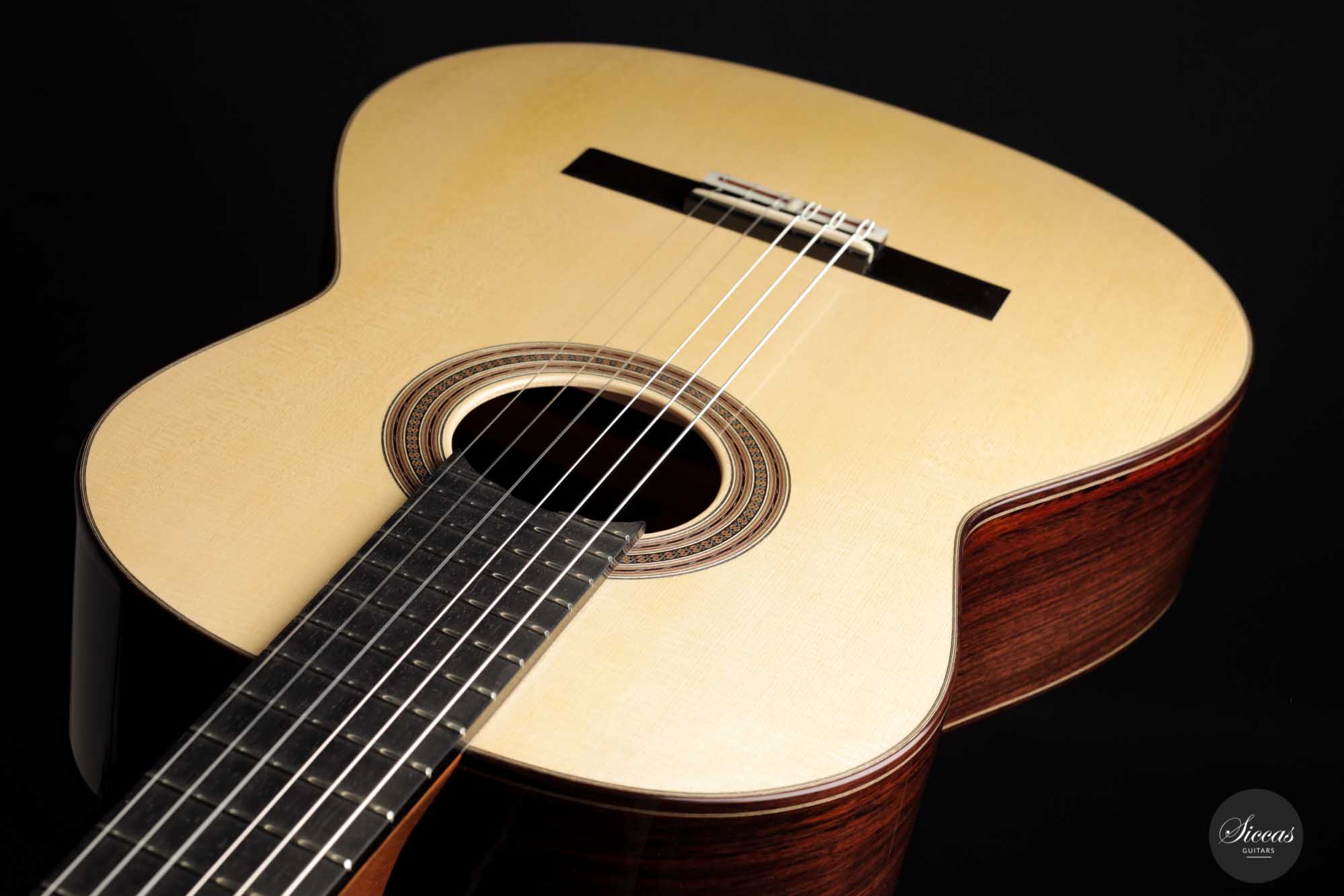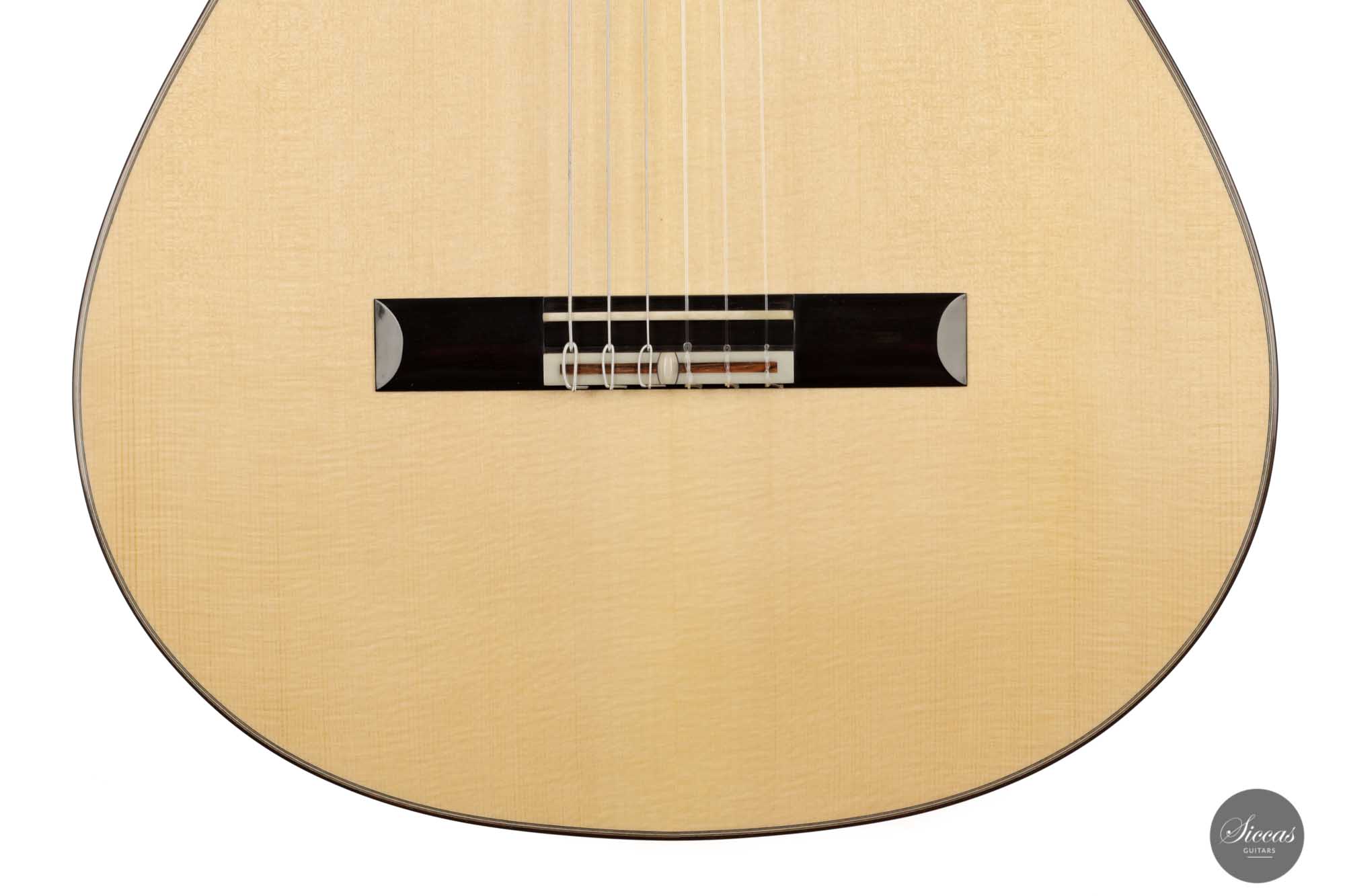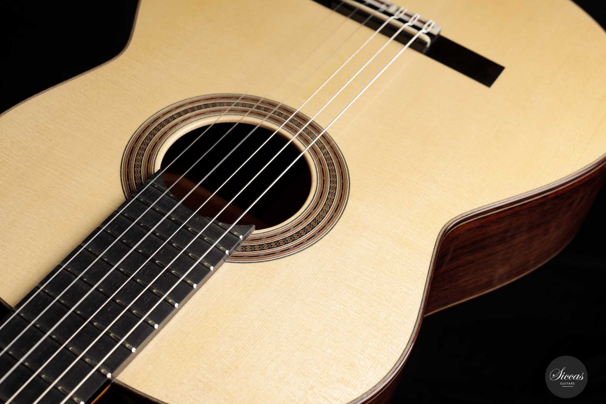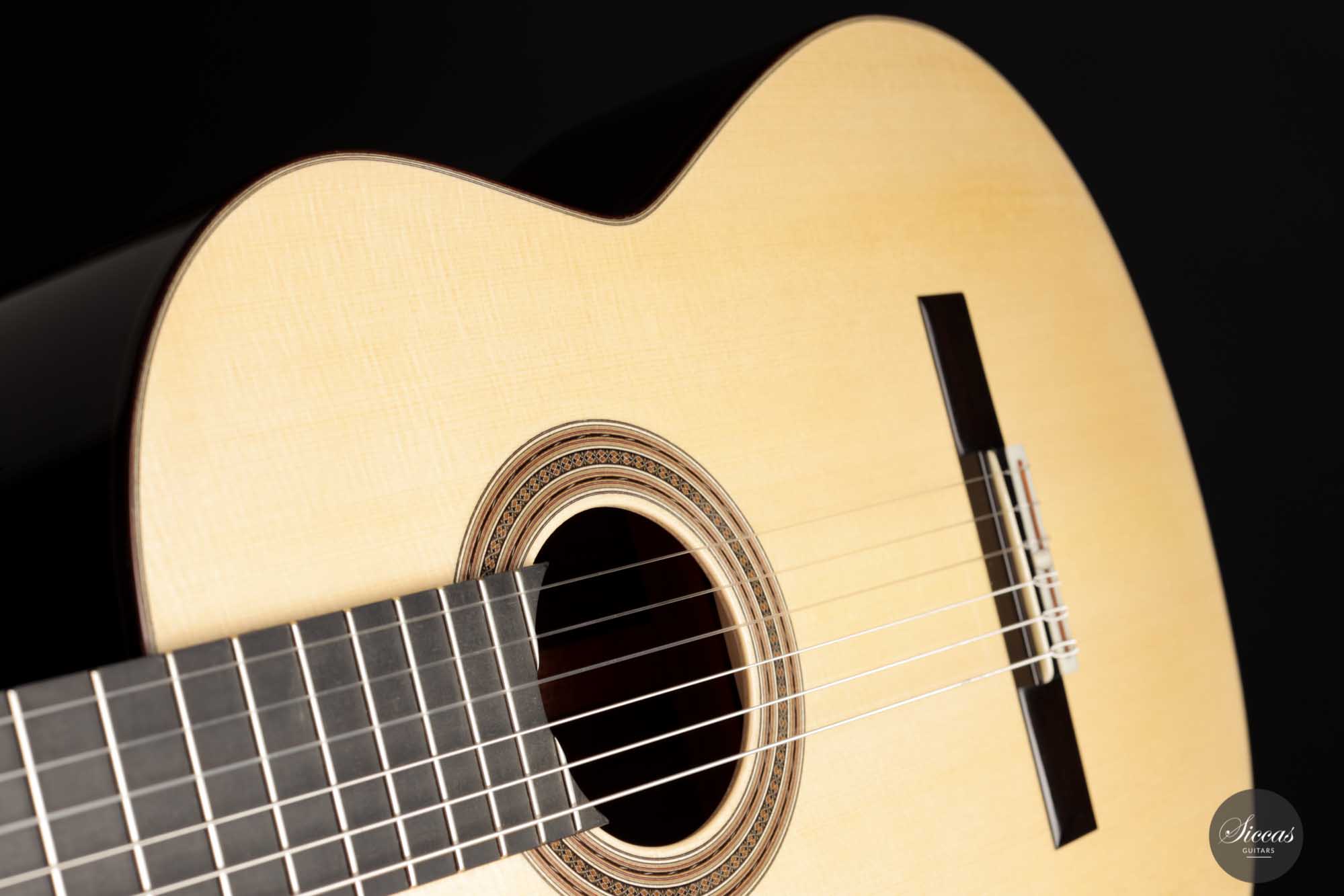 Klanglich steht diese Gitarre für Ausgewogenheit, Volumen und Eleganz. Das Sustain und die Gleichmäßigkeit eines jeden Tons sind beeindruckend. Darüber hinaus verleihen die umfangreiche Klangfarbenpalette und die Texturierungsmöglichkeiten dieser Gitarre einen multidimensionalen Klang, der dem Gitarristen echte Ausdrucksfreiheit bietet. Zudem sorgen die doppelten Zargen für einen sehr widerhallenden und steifen Korpus, der den Klang kraftvoll ausstrahlt. Die Lautstärke dieser Gitarre ist daher mehr als ausreichend, um einen Konzertsaal zu füllen. Chapeau.