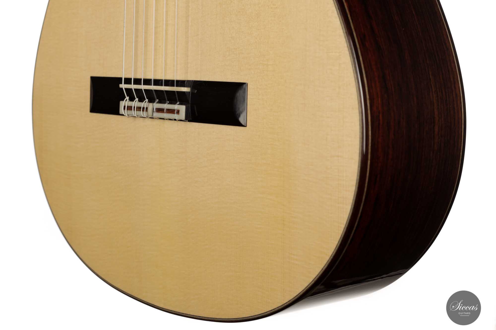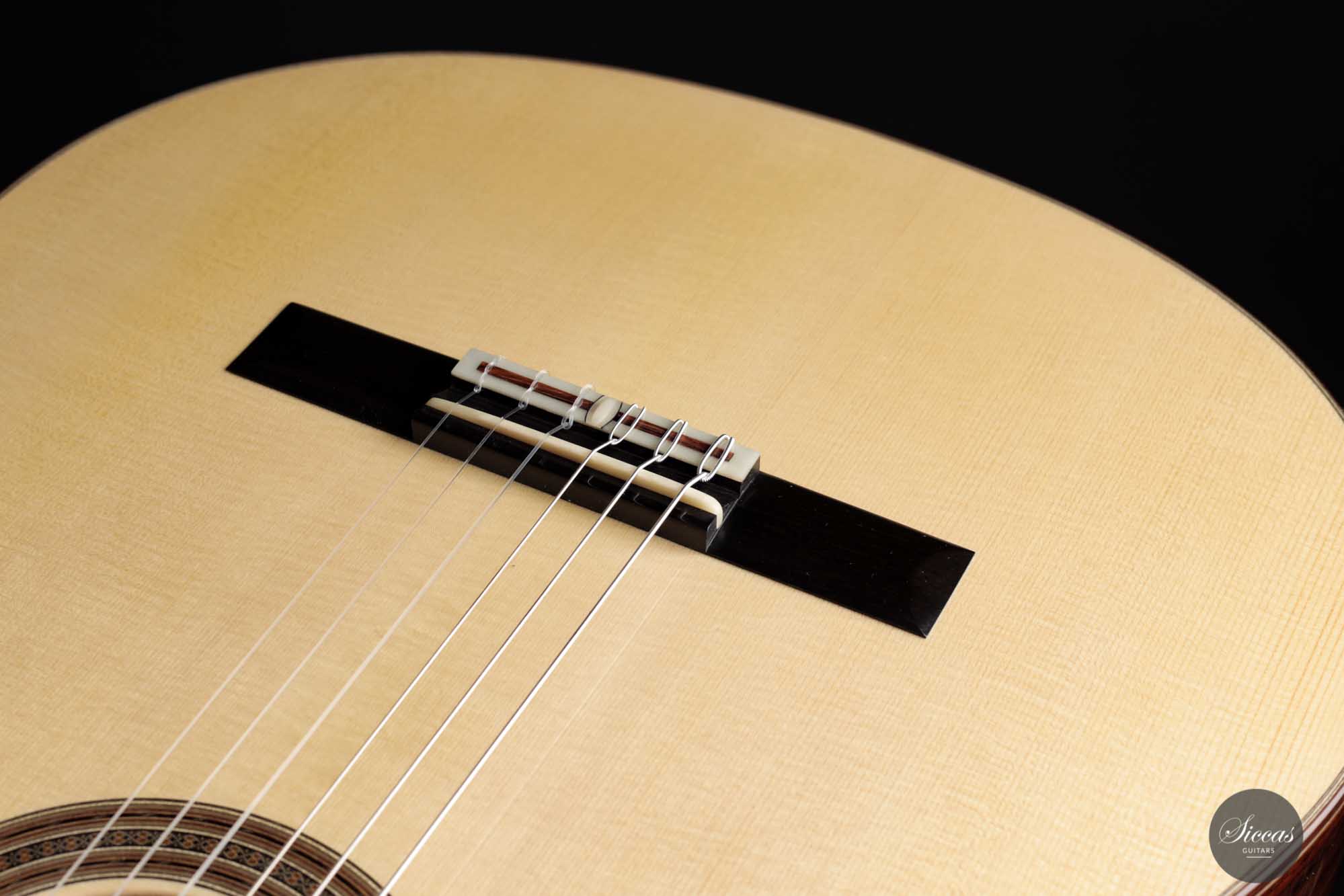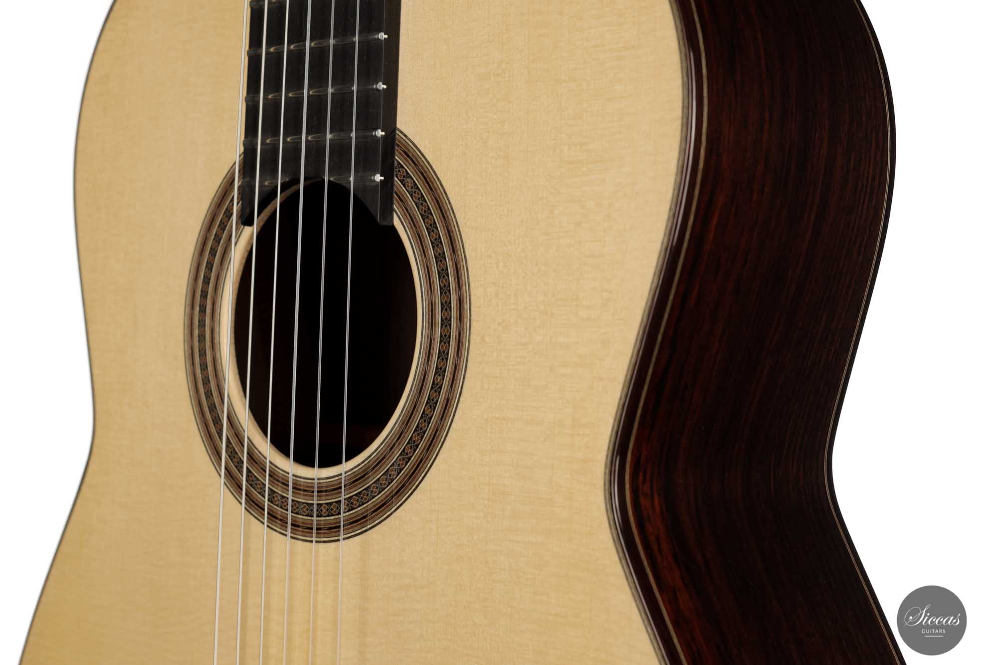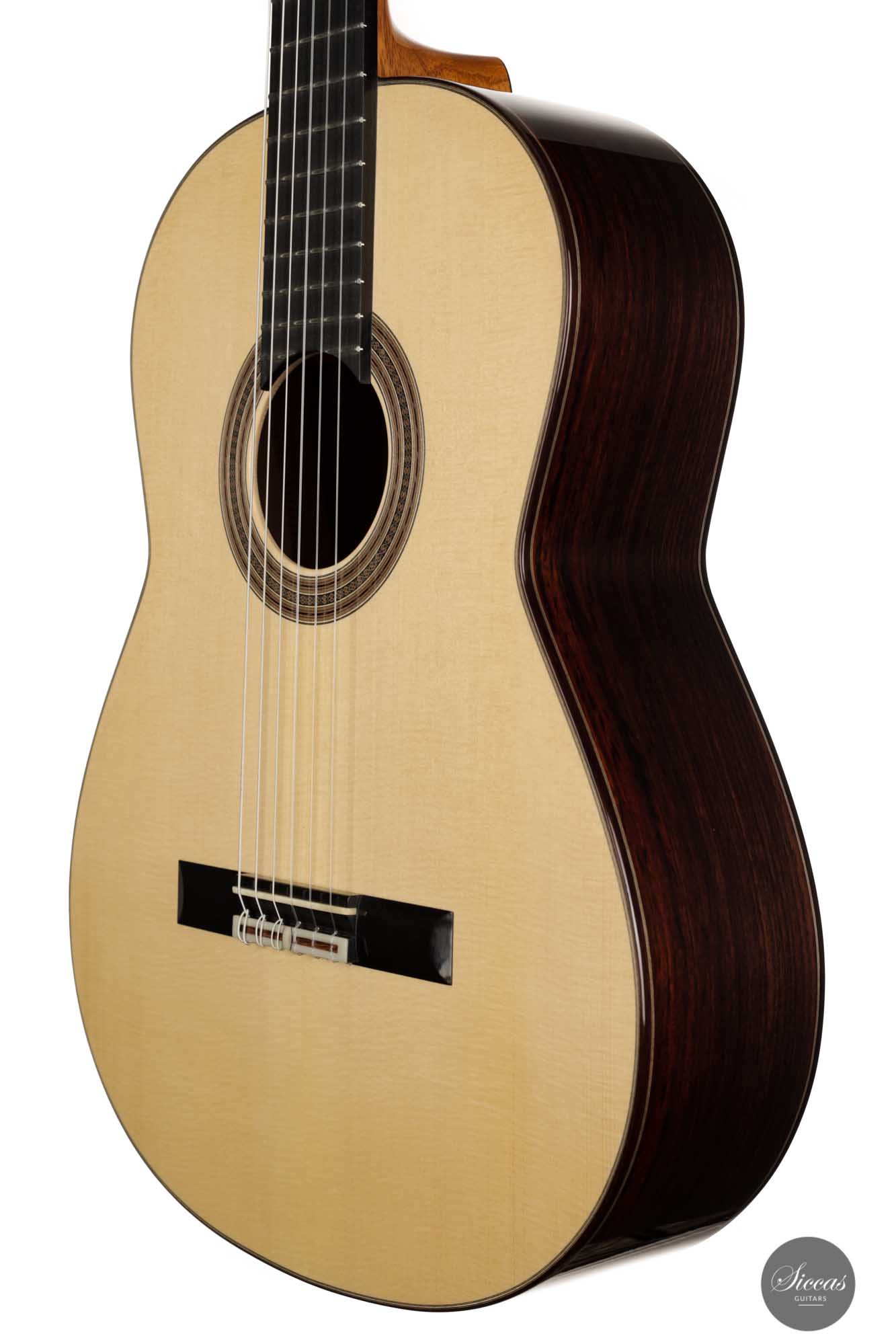 Klanglich steht diese Gitarre für Ausgewogenheit, Volumen und Eleganz. Das Sustain und die Gleichmäßigkeit eines jeden Tons sind beeindruckend. Darüber hinaus verleihen die umfangreiche Klangfarbenpalette und die Texturierungsmöglichkeiten dieser Gitarre einen multidimensionalen Klang, der dem Gitarristen echte Ausdrucksfreiheit bietet. Zudem sorgen die doppelten Zargen für einen sehr widerhallenden und steifen Korpus, der den Klang kraftvoll ausstrahlt. Die Lautstärke dieser Gitarre ist daher mehr als ausreichend, um einen Konzertsaal zu füllen. Chapeau.