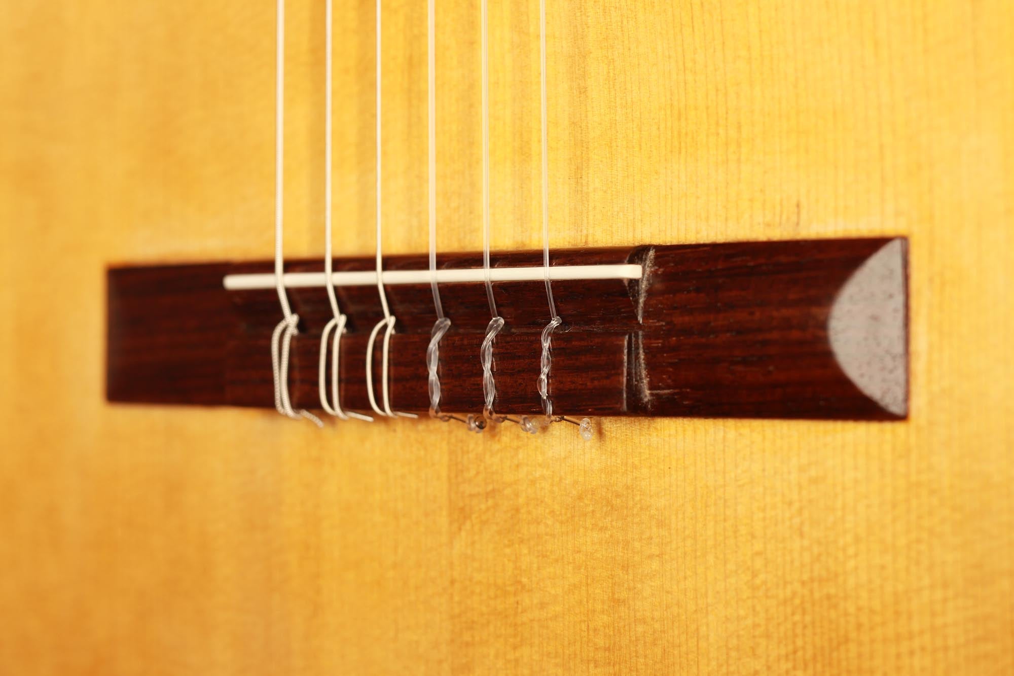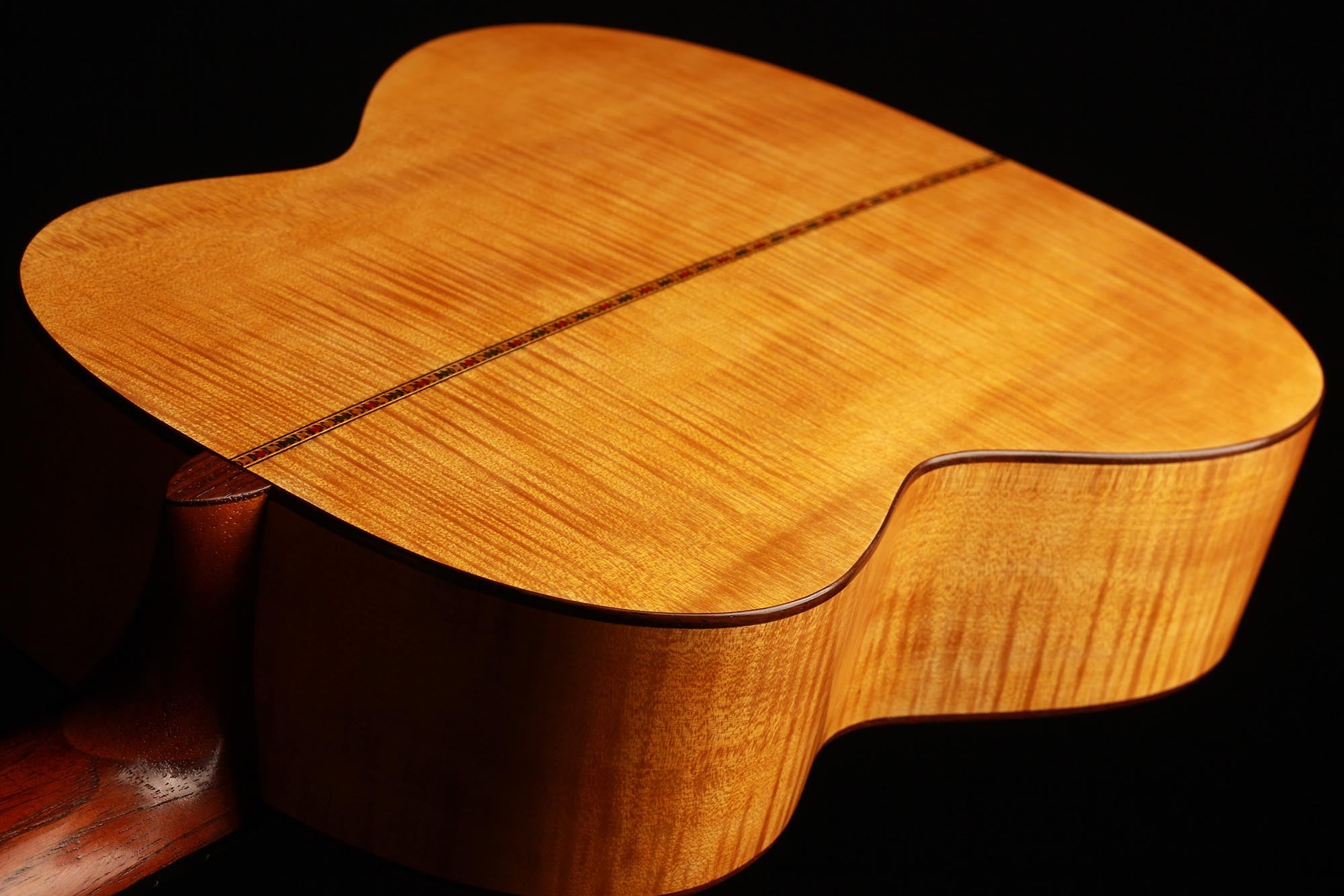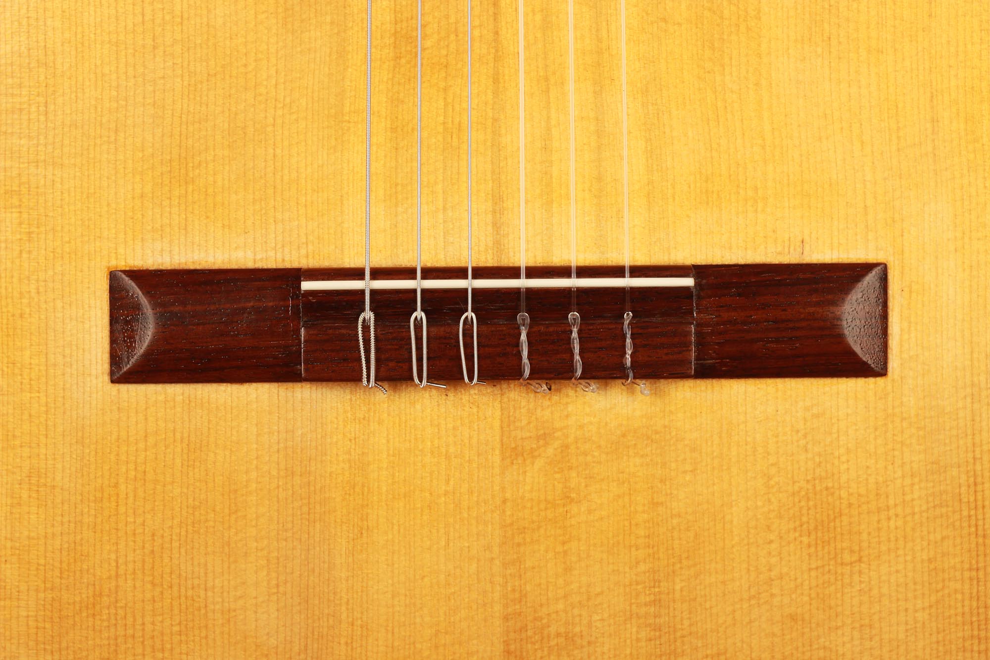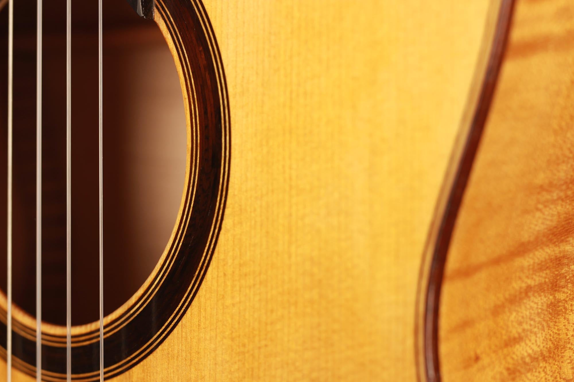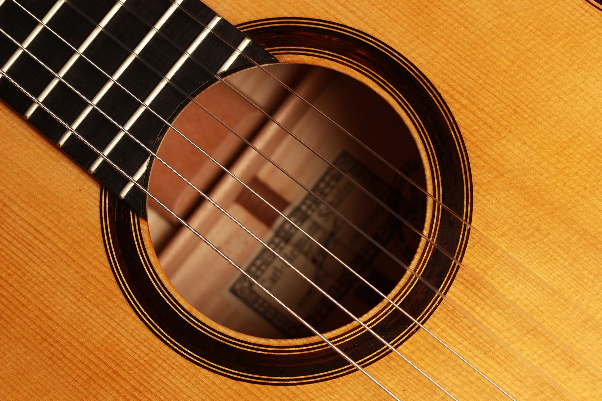 This guitar is a Santos Hernandez inspired model with a compact body size and short scale length. The label is a tribute to Santos Hernandez, with an adapted copy of the master's label. Its smaller size and lightweight remind of the “Señorita” models built in Spain during the 19th and beginning of the 20th century. This fine maple guitar has a huge sound, it is very spontaneous with great lyrical charm in the trebles and deep basses. It is the perfect guitar for a player looking for a short scale instrument, which not only meets high demands but also offers a great comfort.