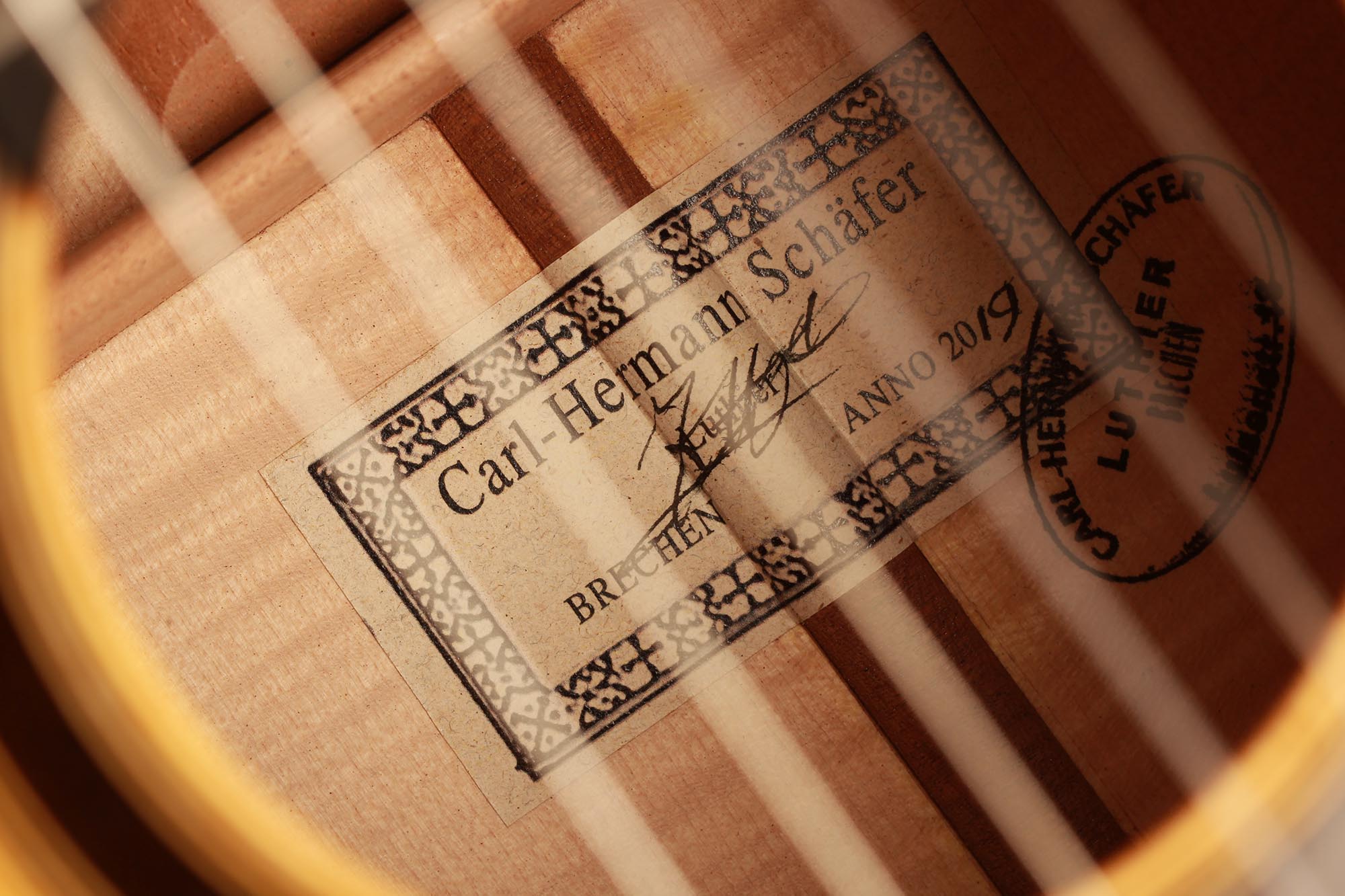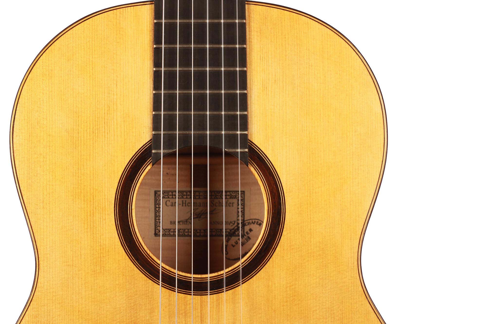 Carl Hermann Schäfer started making guitars in 1966. He did his apprenticeship under the guidance of master guitar maker Ernest Köröskeny and later studied under master guitar maker Dieter Hopf. After having worked in Hopf’s workshop from 1971 to 1994, he opened his own in Oberneisen and moved to Niederbrechen, Germany, five years later.