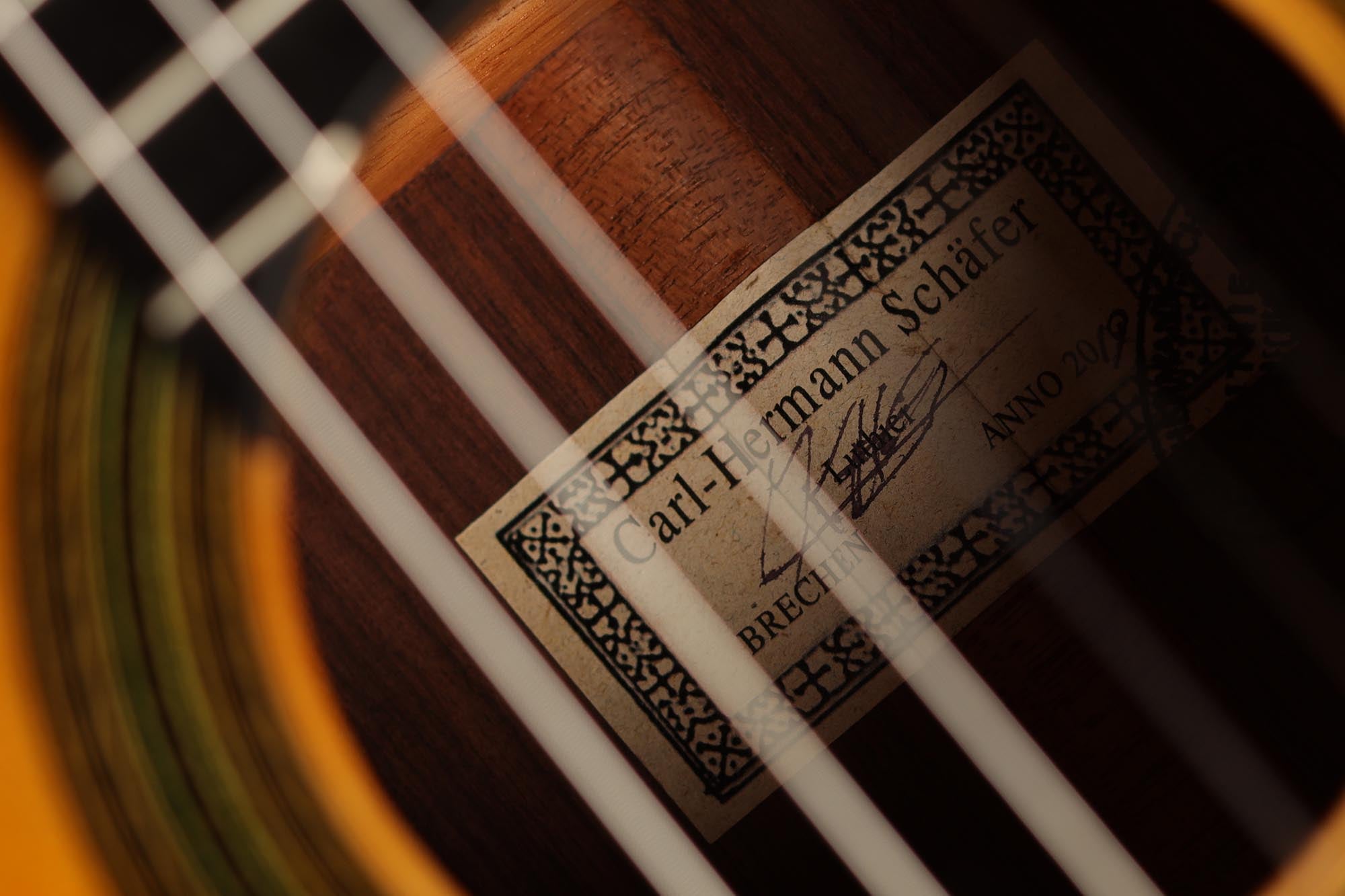 Carl Hermann Schäfer begann 1966 mit dem Gitarrenbau. Er absolvierte seine Lehre unter der Leitung von Gitarrenbaumeister Ernest Köröskeny und studierte später bei Gitarrenbaumeister Dieter Hopf. Nachdem er von 1971 bis 1994 in Hopf's Werkstatt gearbeitet hatte, eröffnete er seine eigene in Oberneisen und zog fünf Jahre später nach Niederbrechen, Deutschland.