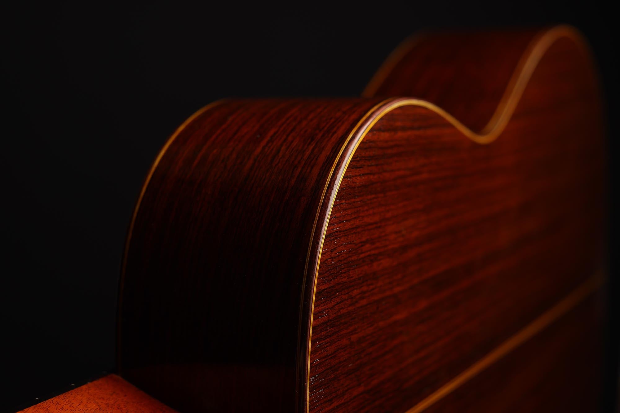 Die Feinheit des Klanges dieser Gitarre ist faszinierend. Dieses Instrument hat eine perfekte Balance und Intonation. Es ist beeindruckend, die Genauigkeit und Länge der Noten entlang des gesamten Griffbretts und bis in die höchsten Lagen zu hören. Die hohen Noten erzeugen eine Menge schöner Obertöne, die dieser Gitarre eine einzigartige Persönlichkeit und Präsenz verleihen. Die Lautstärke des Tons ist umso beeindruckender, da diese Gitarre sich mühelos spielen lässt. Die Präzision und Klarheit jedes einzelnen Tons, sowie die Geschmeidigkeit und der Klangreichtum dieser Gitarre werden jeden wahren Liebhaber der traditionellen klassischen Gitarre begeistern.