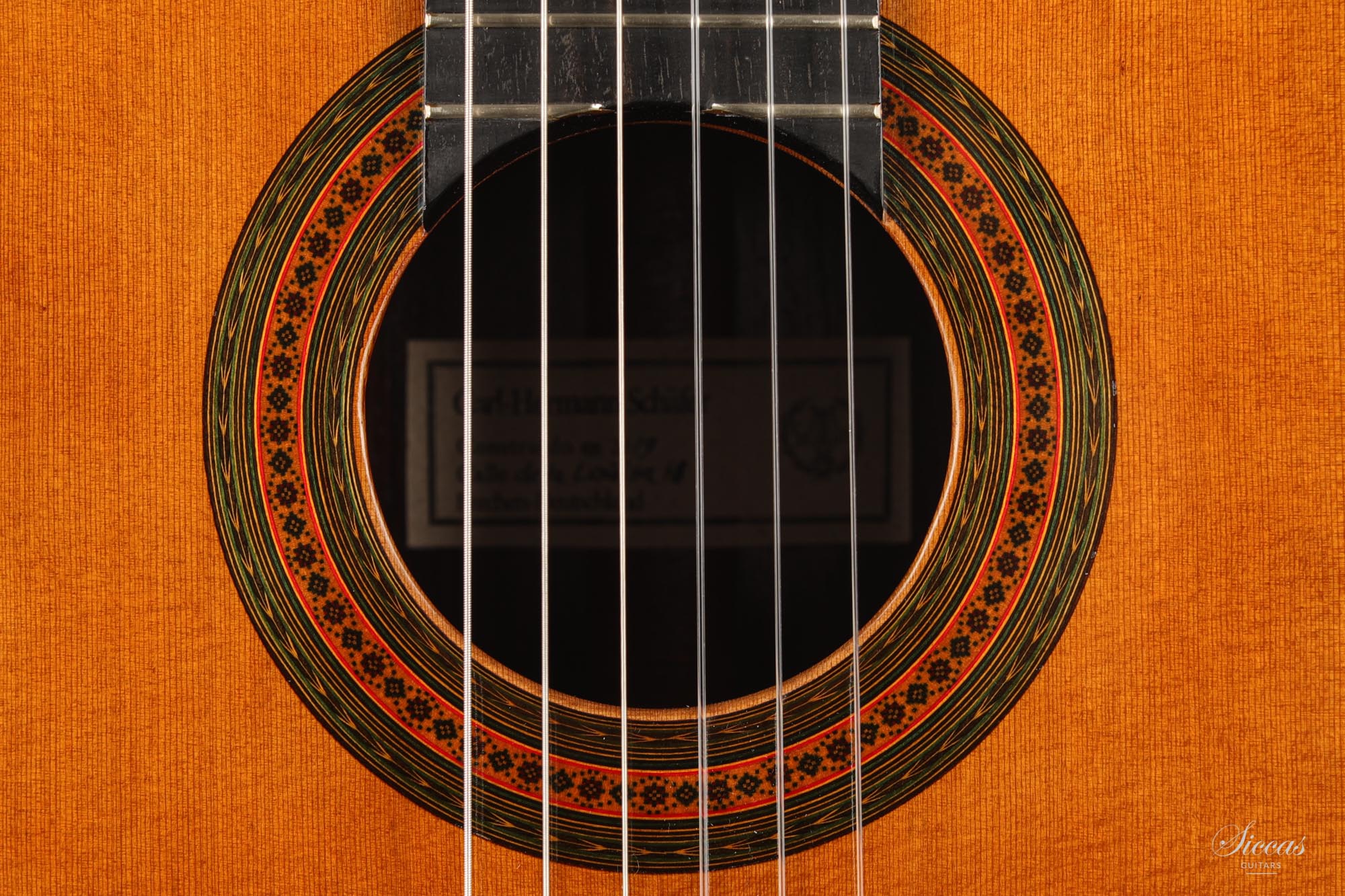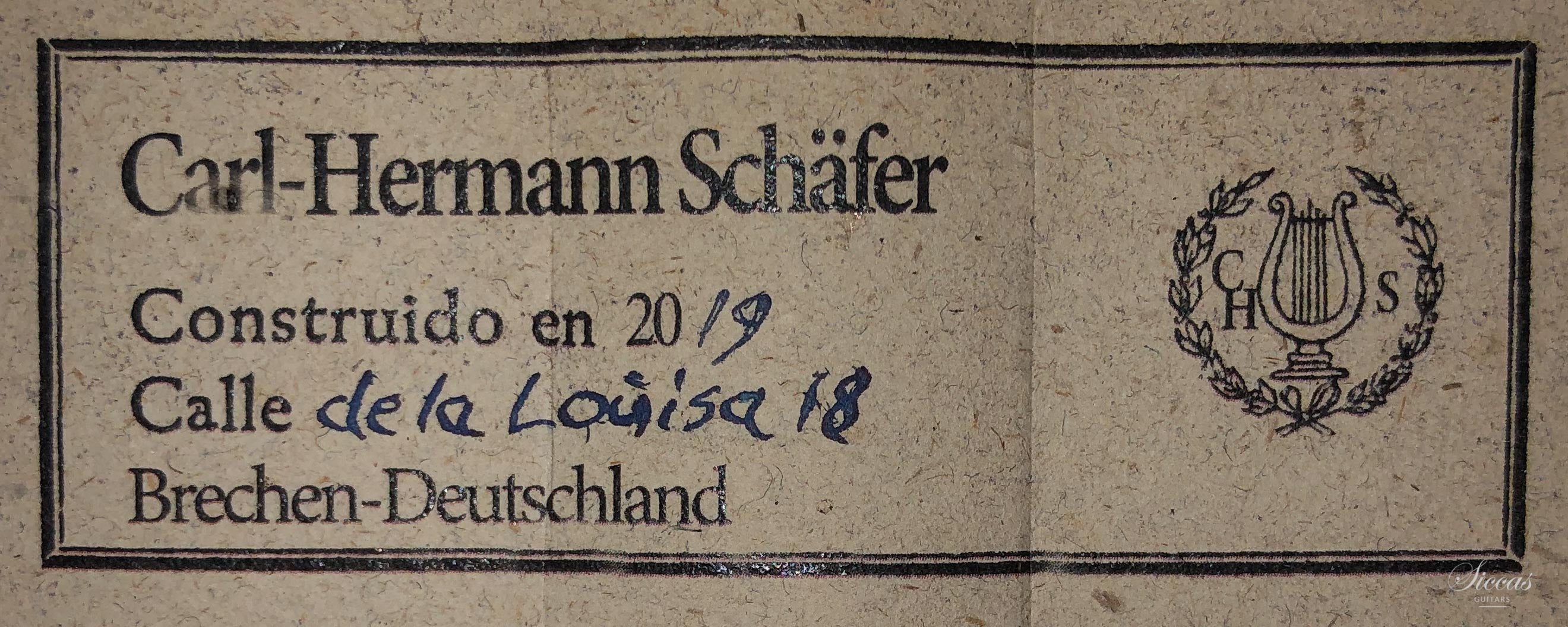Carl Hermann Schäfer begann 1966 mit dem Gitarrenbau. Er absolvierte seine Lehre unter der Leitung von Gitarrenbaumeister Ernest Köröskeny und studierte später bei Gitarrenbaumeister Dieter Hopf. Nachdem er von 1971 bis 1994 in Hopf's Werkstatt gearbeitet hatte, eröffnete er seine eigene in Oberneisen und zog fünf Jahre später nach Niederbrechen, Deutschland. Er hat sich auf das Handwerk der Herstellung der wunderbarsten Repliken konzentriert, die man sich nur wünschen kann. Die Instrumente sind nicht nur extrem gut gebaut, sie bieten auch den echten Klang von Meisterinstrumenten aus der Vergangenheit.