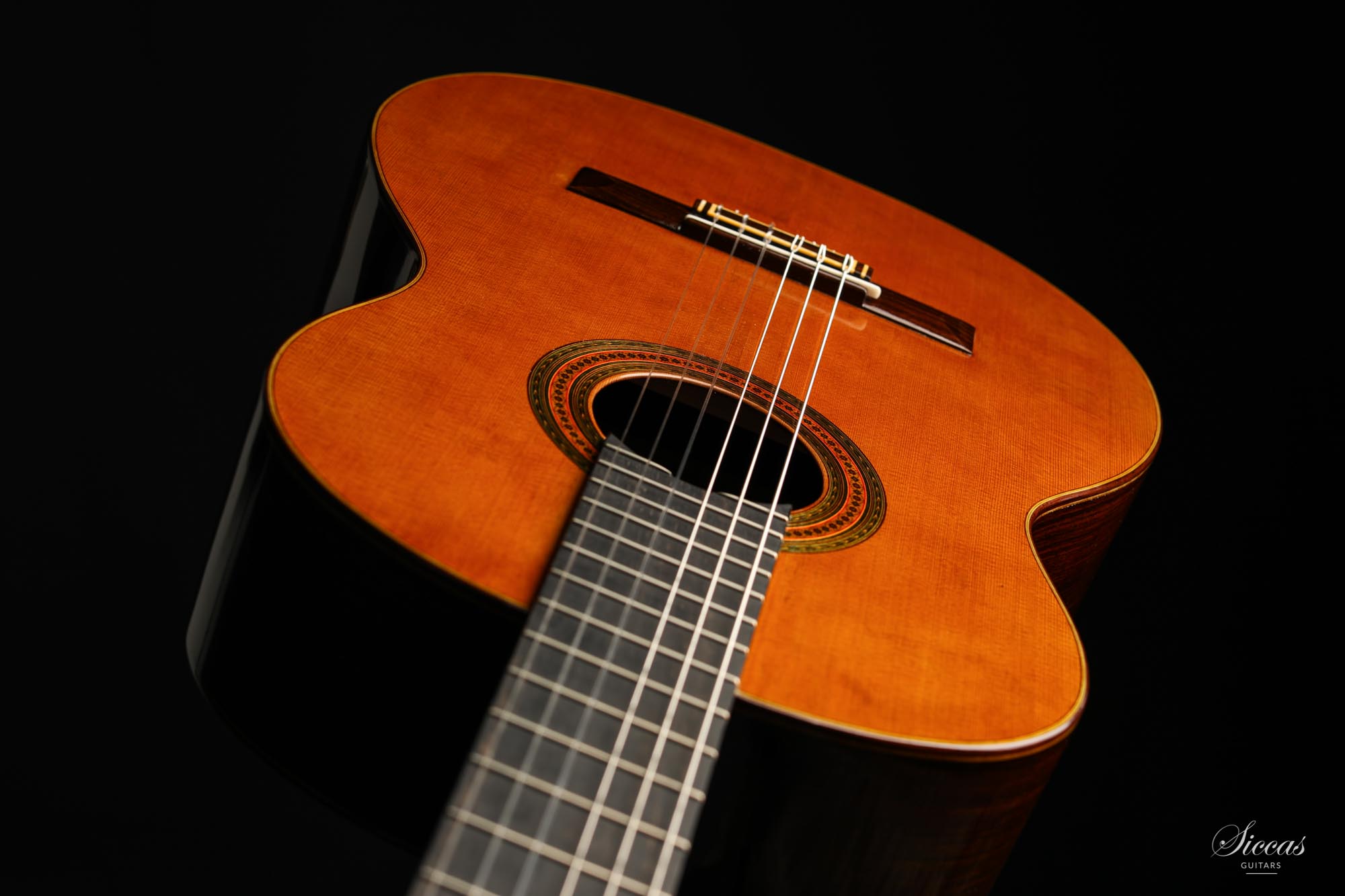 Das Besondere an diesem Instrument ist die Tatsache, dass Carl Hermann Schäfer im Besitz des berühmten Originalinstruments Nr. 500 von Ignacio Fleta aus dem Jahre 1969 war, das Andrés Segovia gehörte und von ihm gespielt wurde. Es ist originalgetreu gebaut in der denkbar prächtigsten Art und Weise, mit herrlichen Details und nur erstklassigen Hölzern. Kraftvolle, satte und solide Bässe gepaart mit einem fast engelsgleichen Diskant ergeben eine inspirierende Gitarre. Die Stimmen sind perfekt ausbalanciert und die Harmonien klingen wie in einer großen Kathedrale.