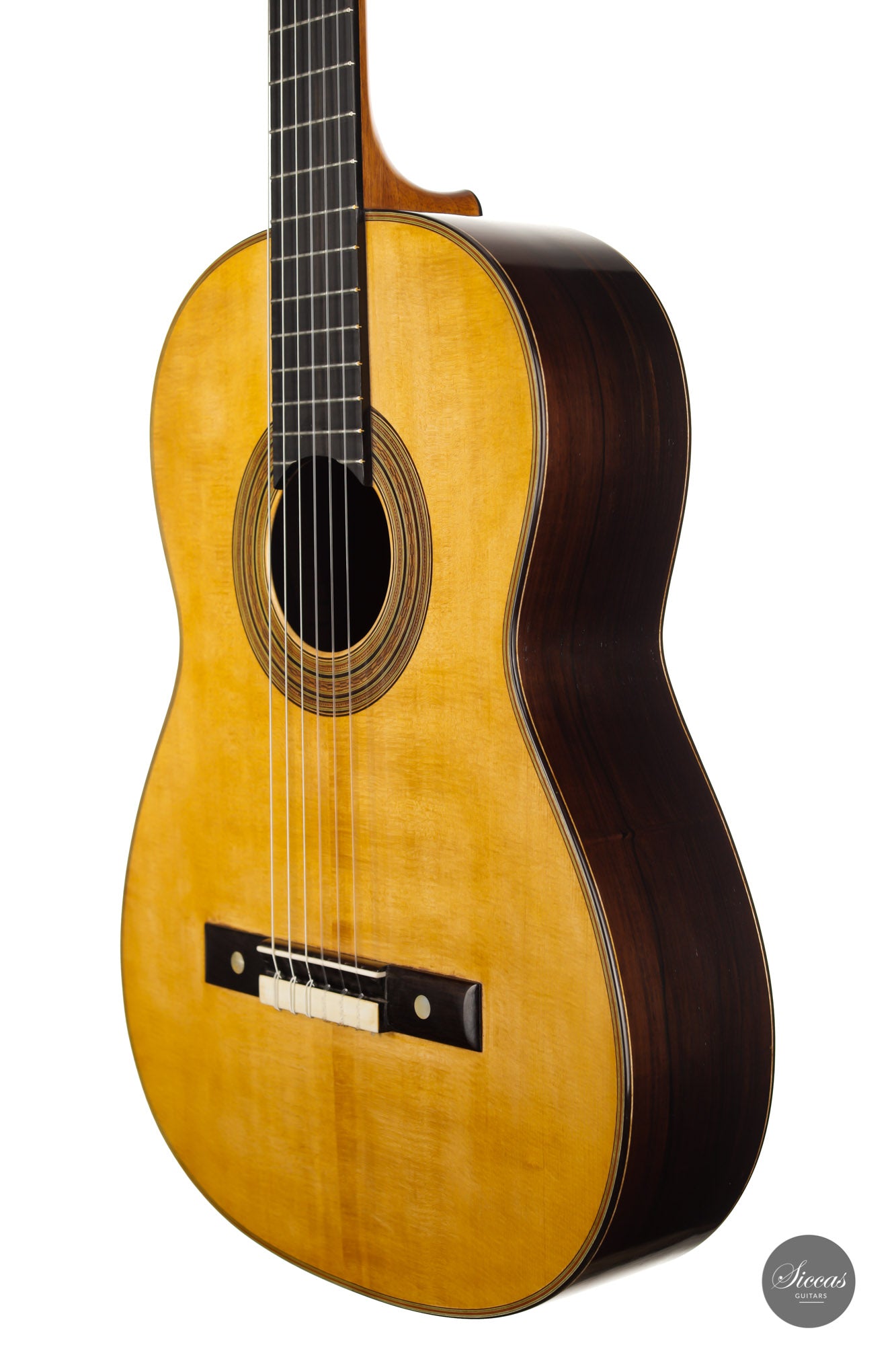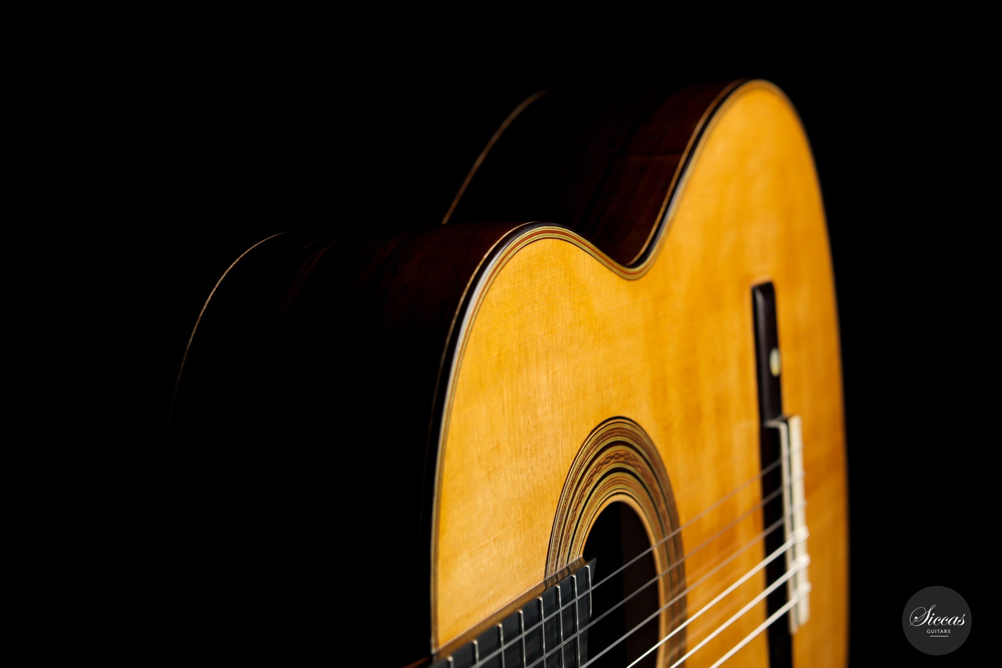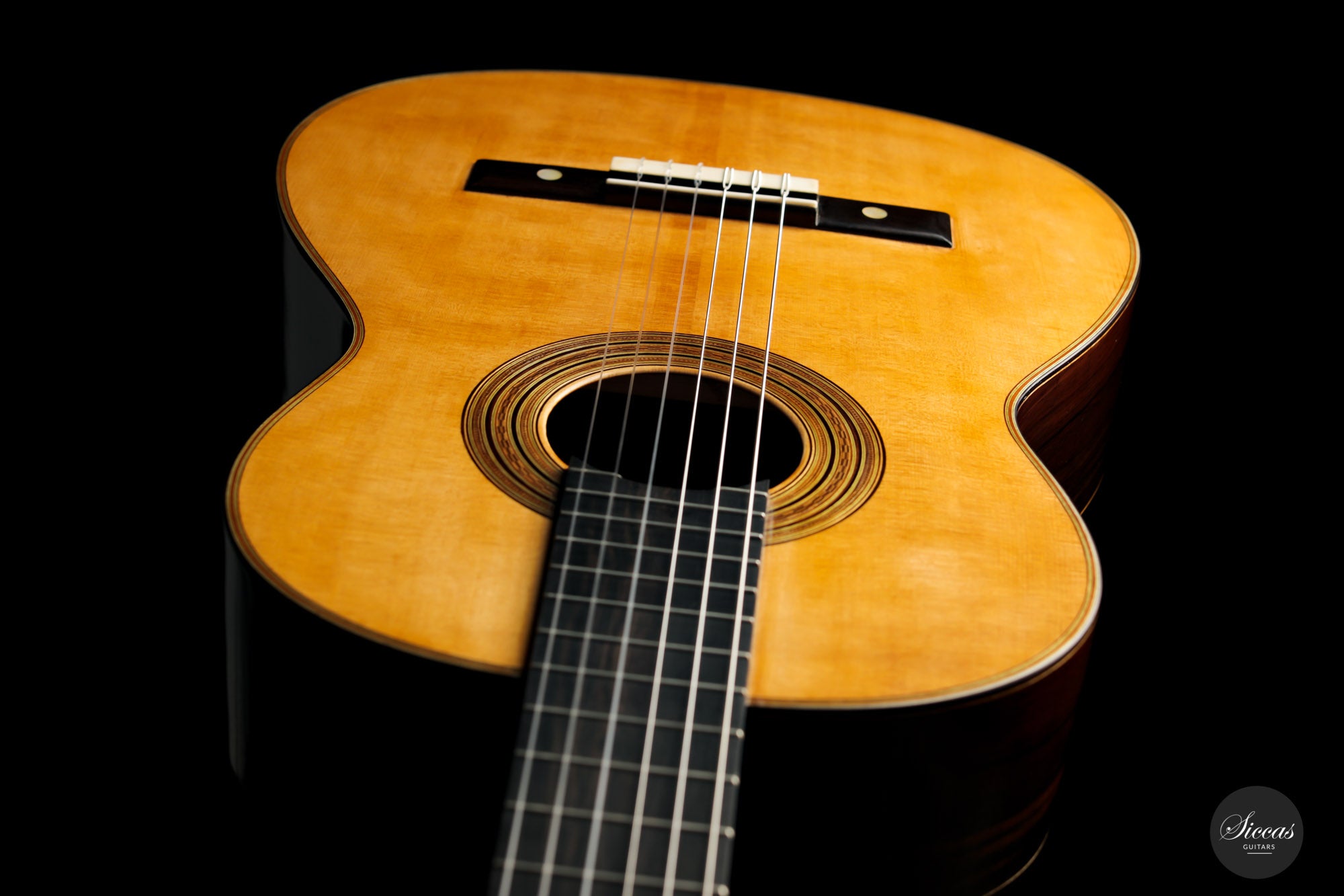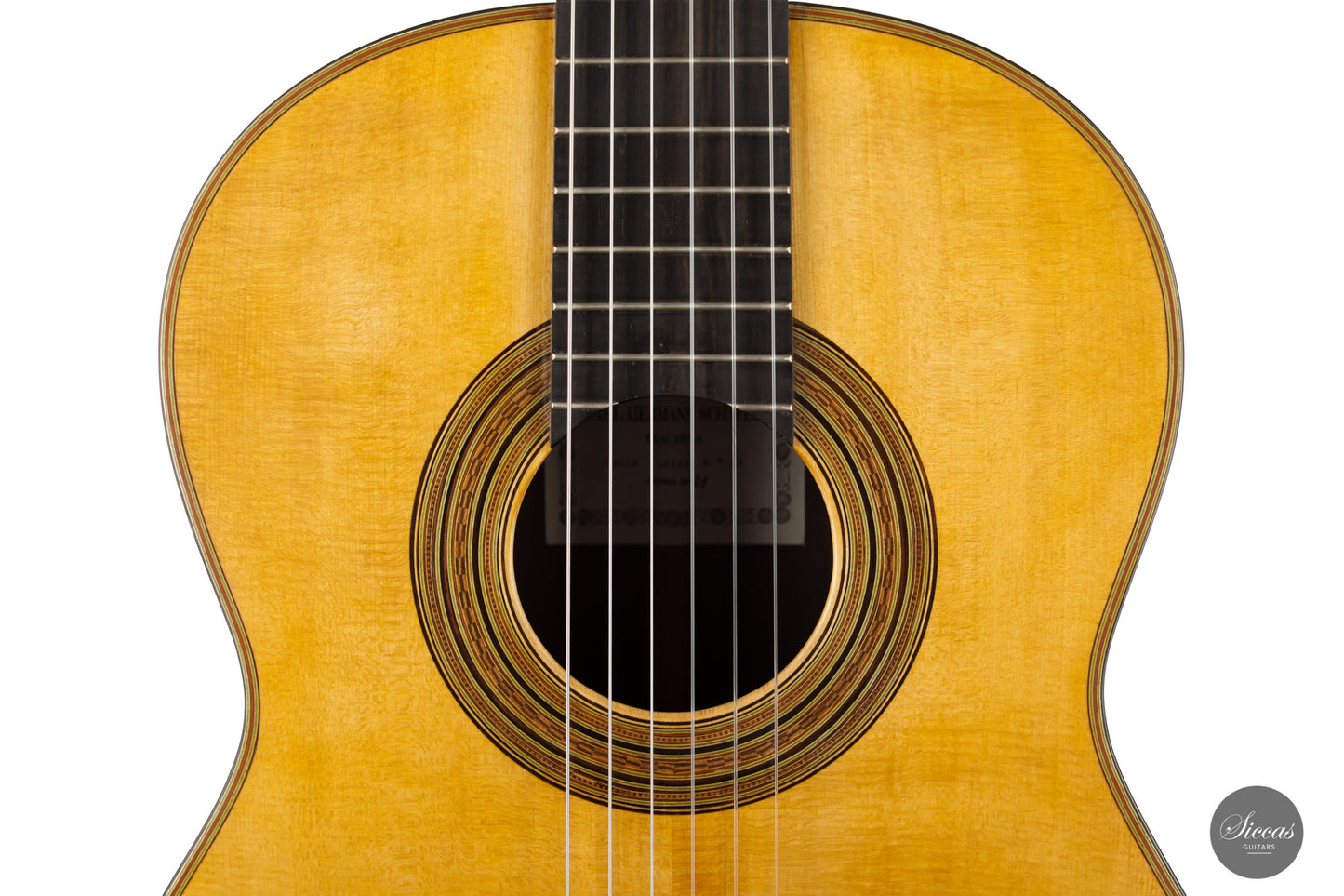What a rich, sweet, and inspiring tone. This guitar has one of the warmer, darker, and rounder sounds that one can expect from a spruce top classical guitar. With its intimate warmth and easy to play set up, it really shows how close one can get to an original 19th-century Spanish guitar. Chapeau.