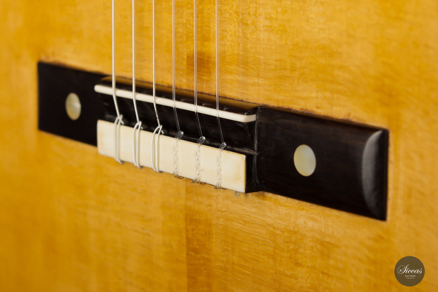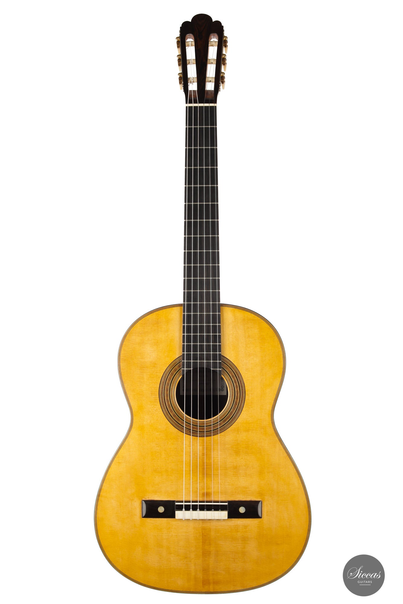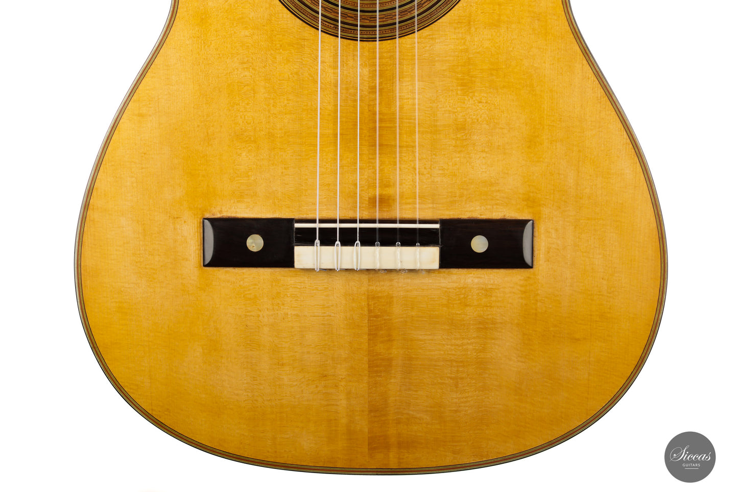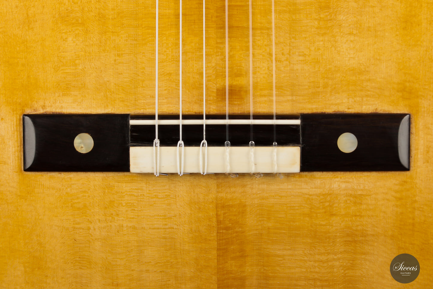 What a rich, sweet, and inspiring tone. This guitar has one of the warmer, darker, and rounder sounds that one can expect from a spruce top classical guitar. With its intimate warmth and easy to play set up, it really shows how close one can get to an original 19th-century Spanish guitar. Chapeau.
