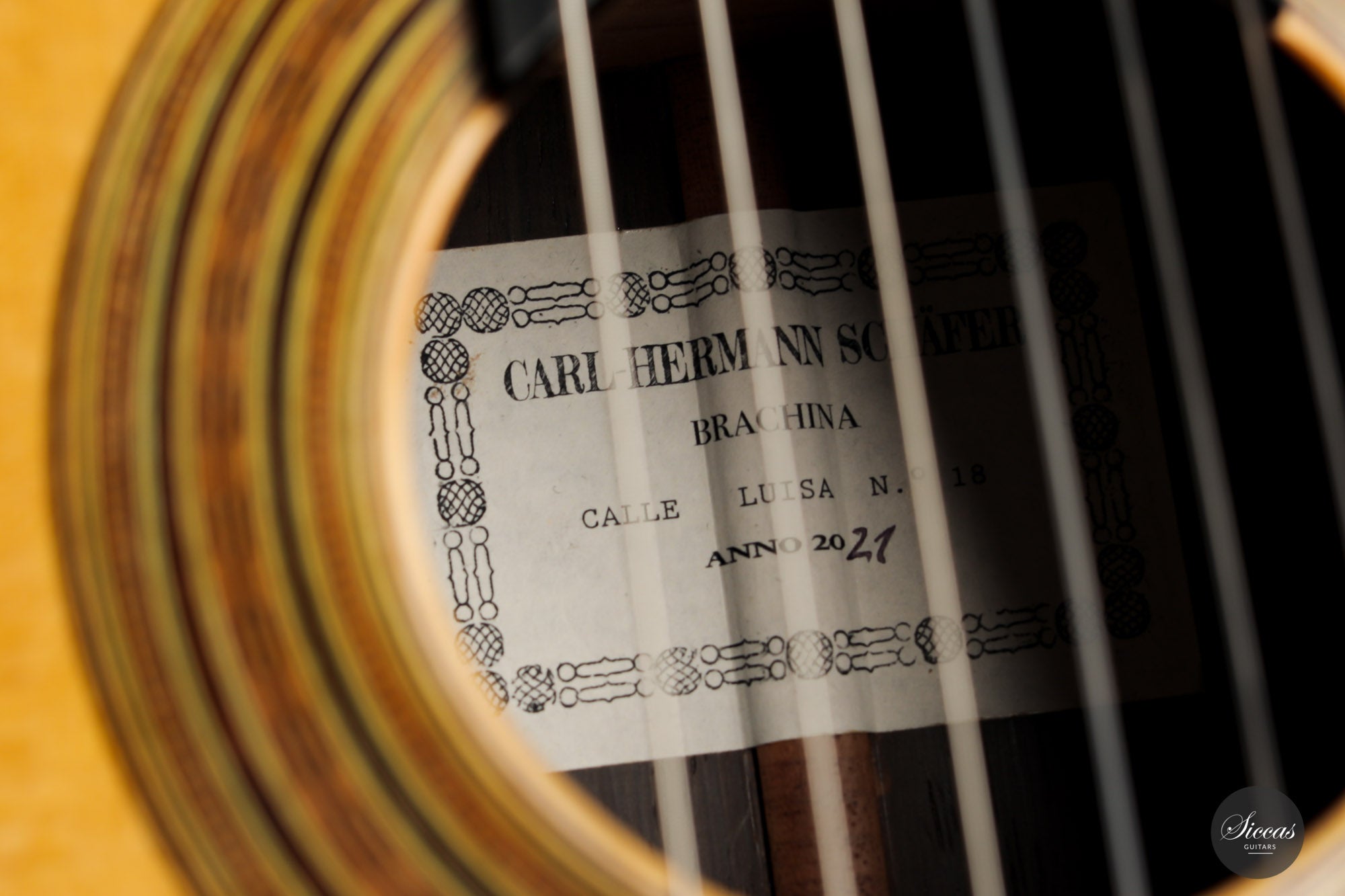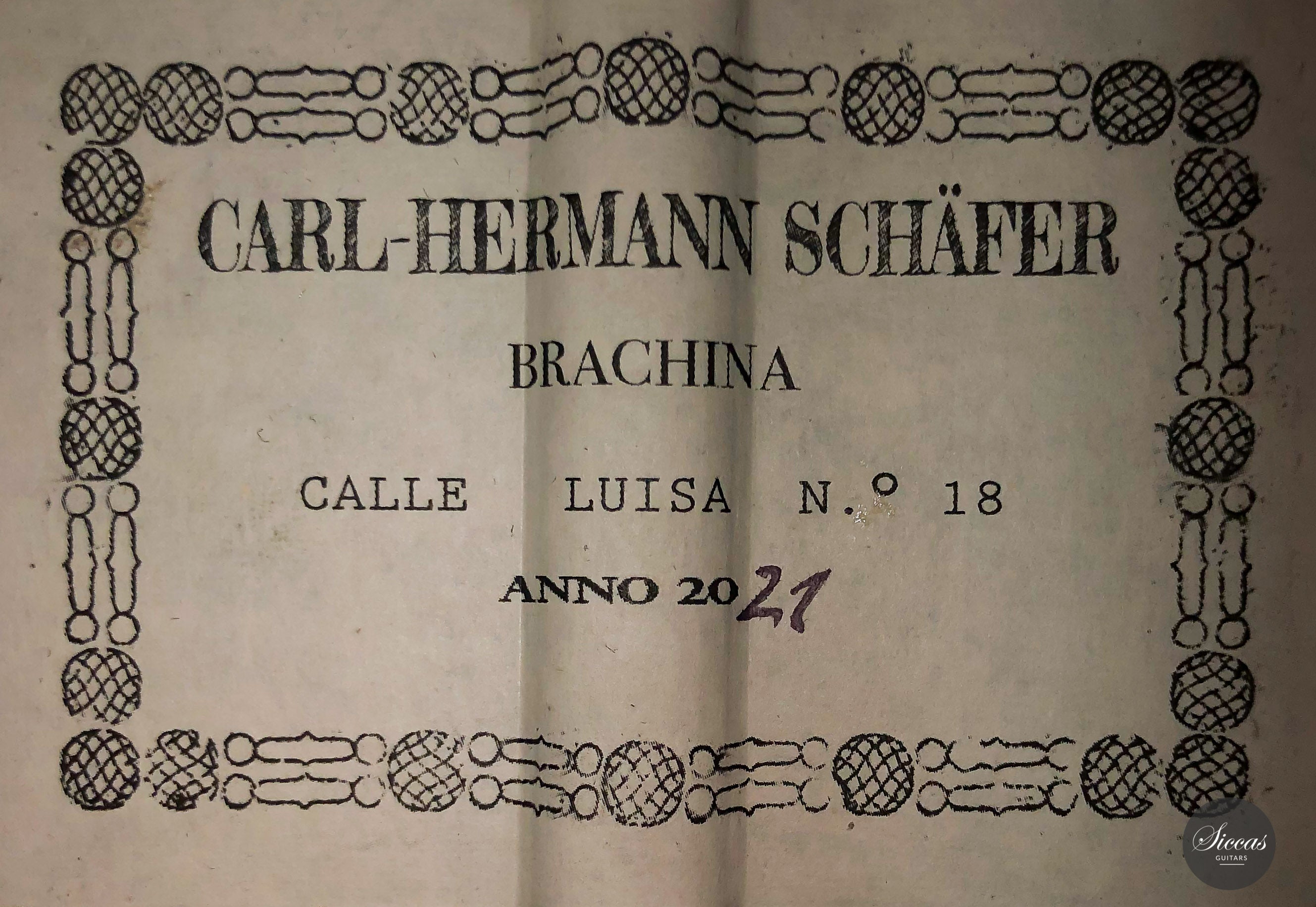 Carl-Hermann Schäfer started making guitars in 1966. He did his apprenticeship under the guidance of master guitar maker Ernest Köröskeny and later studied under master guitar maker Dieter Hopf. After having worked in Hopf’s workshop from 1971 to 1994, he opened his own in Oberneisen and moved to Niederbrechen, Germany, five years later.