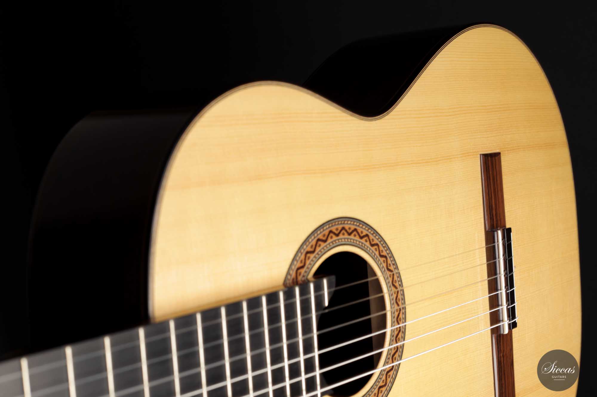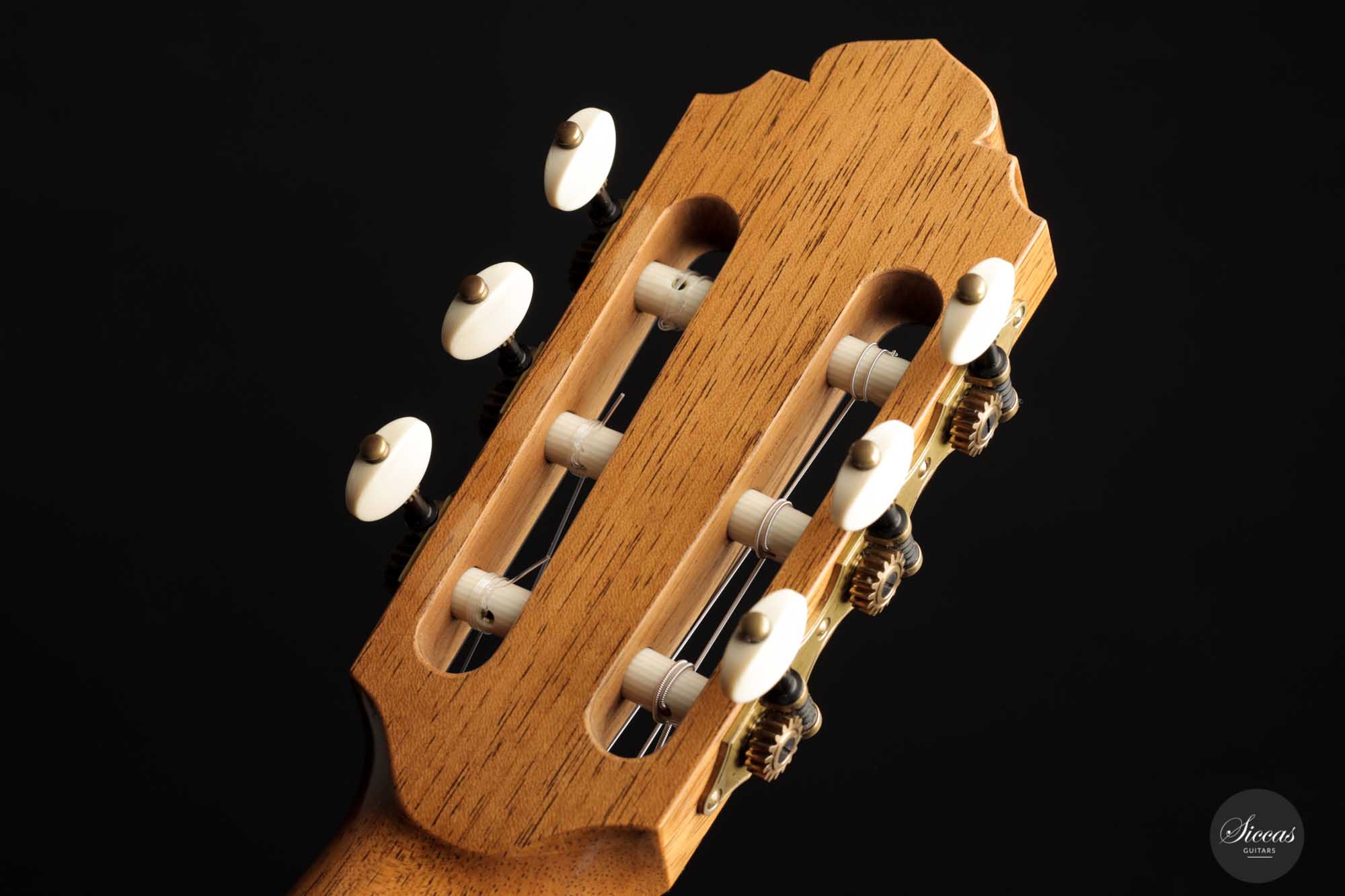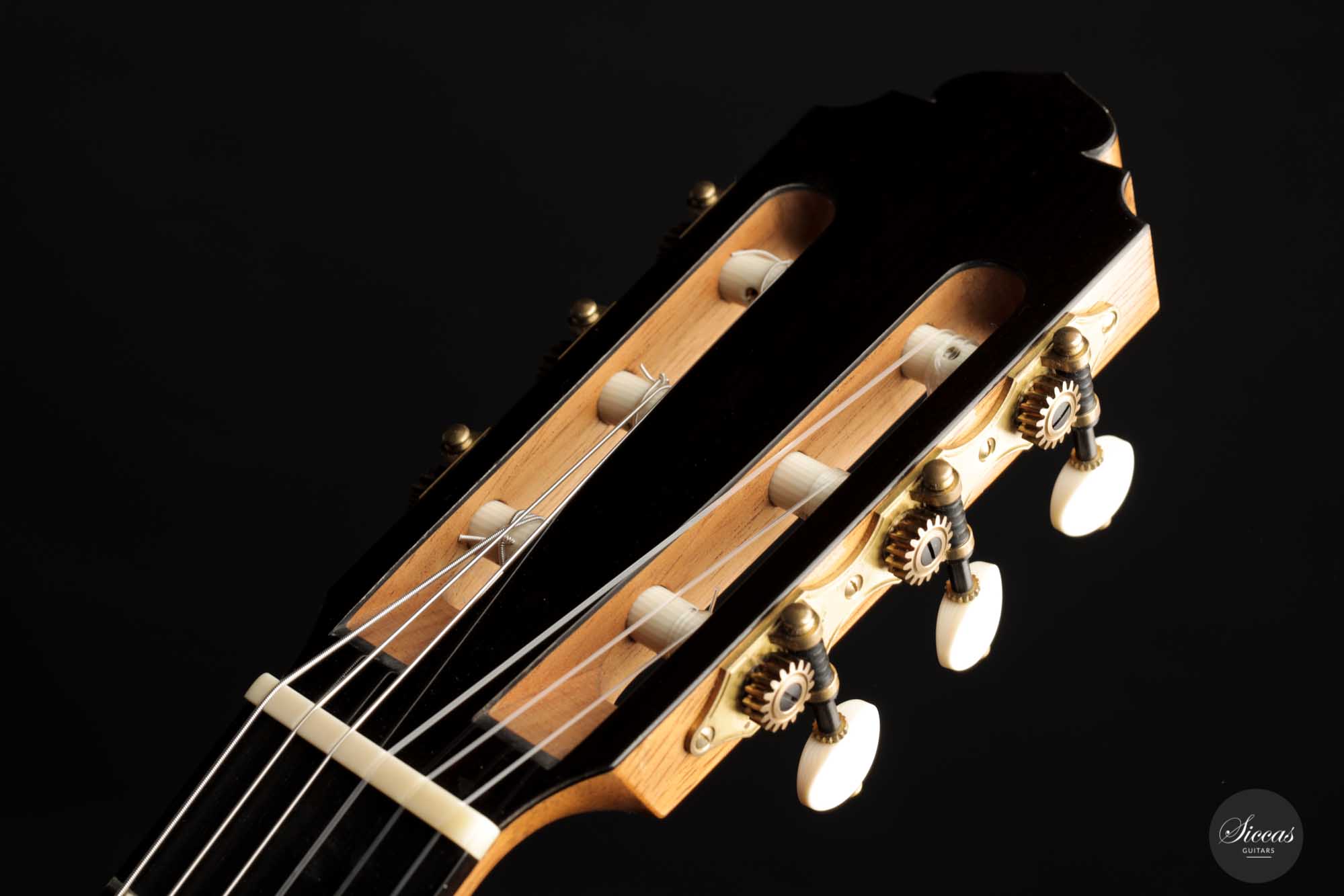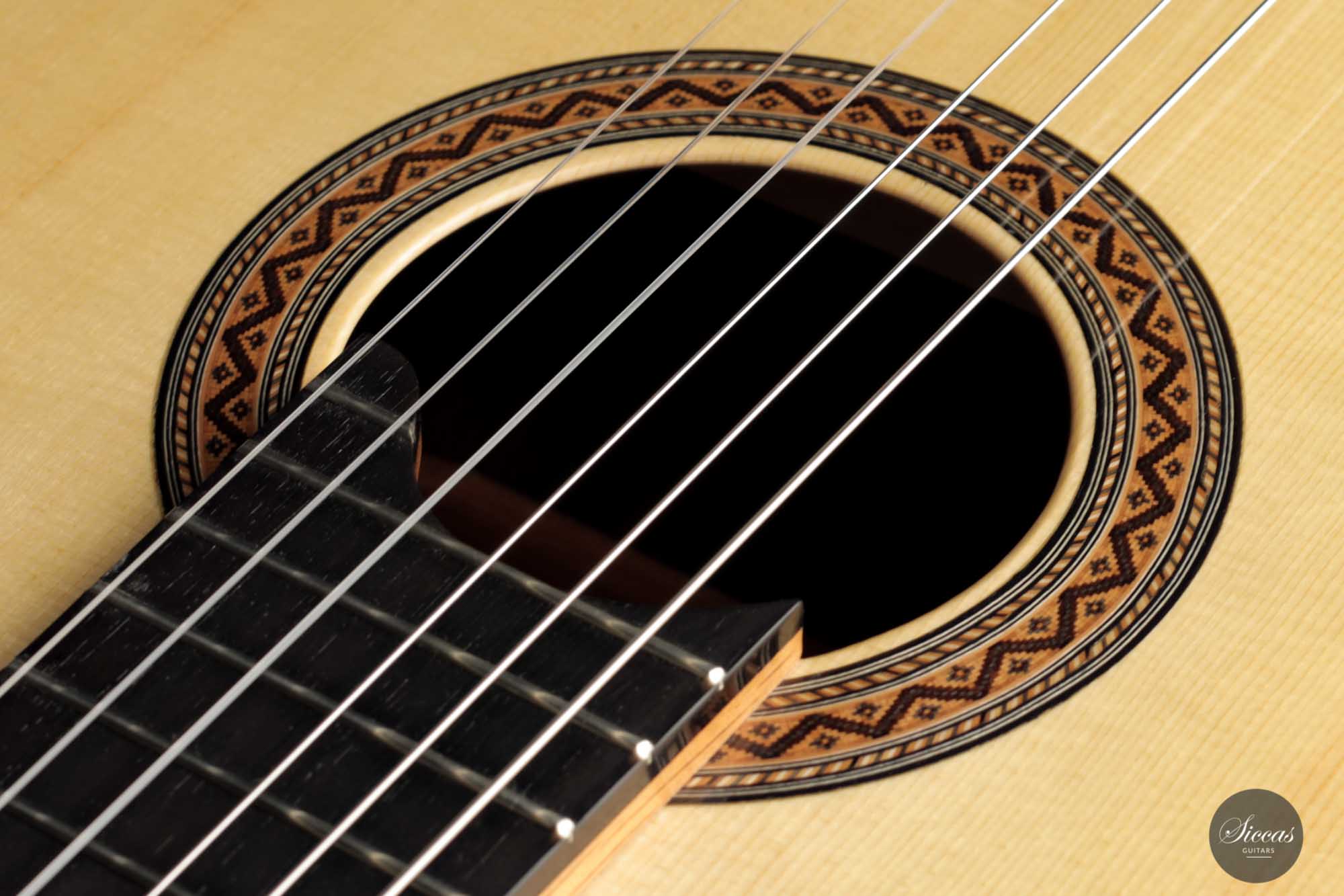 Die Gitarre ist etwas ganz Besonderes, denn die Decke besteht Außen aus Fichte, im Inneren aus Zedernholz und besitzt eine traditionelle Fächerbeleistung. Dadurch entwickelt sie einen einzigartigen Klang, der sowohl präzise als auch warm, kraftvoll, facettenreich und gehaltvoll ausfällt. Darüber hinaus ist die Bespielbarkeit ideal, und die hochwertigen Scheller-Mechaniken unterstreichen den Wert dieser inspirierenden Gitarre.