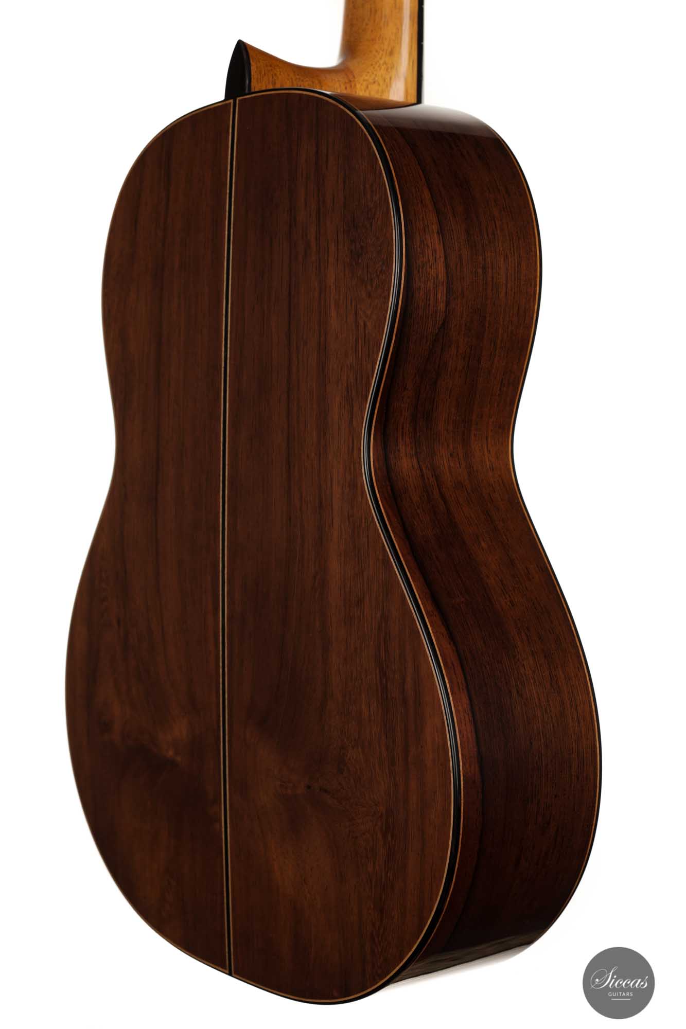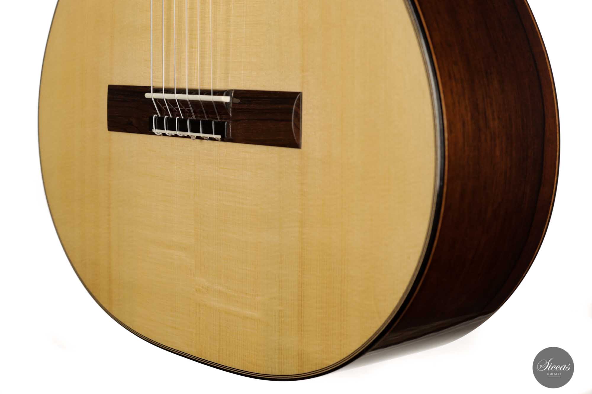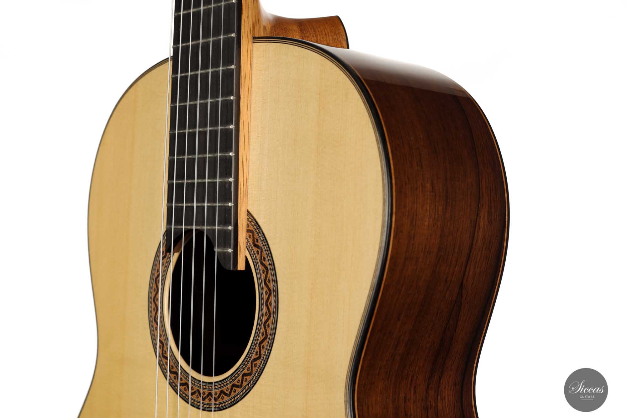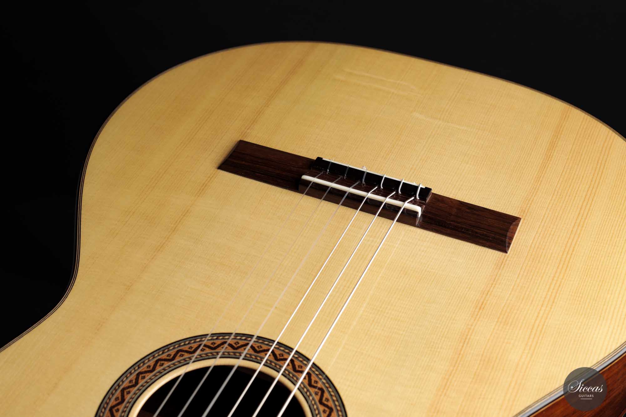 Die Gitarre ist etwas ganz Besonderes, denn die Decke besteht Außen aus Fichte, im Inneren aus Zedernholz und besitzt eine traditionelle Fächerbeleistung. Dadurch entwickelt sie einen einzigartigen Klang, der sowohl präzise als auch warm, kraftvoll, facettenreich und gehaltvoll ausfällt. Darüber hinaus ist die Bespielbarkeit ideal, und die hochwertigen Scheller-Mechaniken unterstreichen den Wert dieser inspirierenden Gitarre.