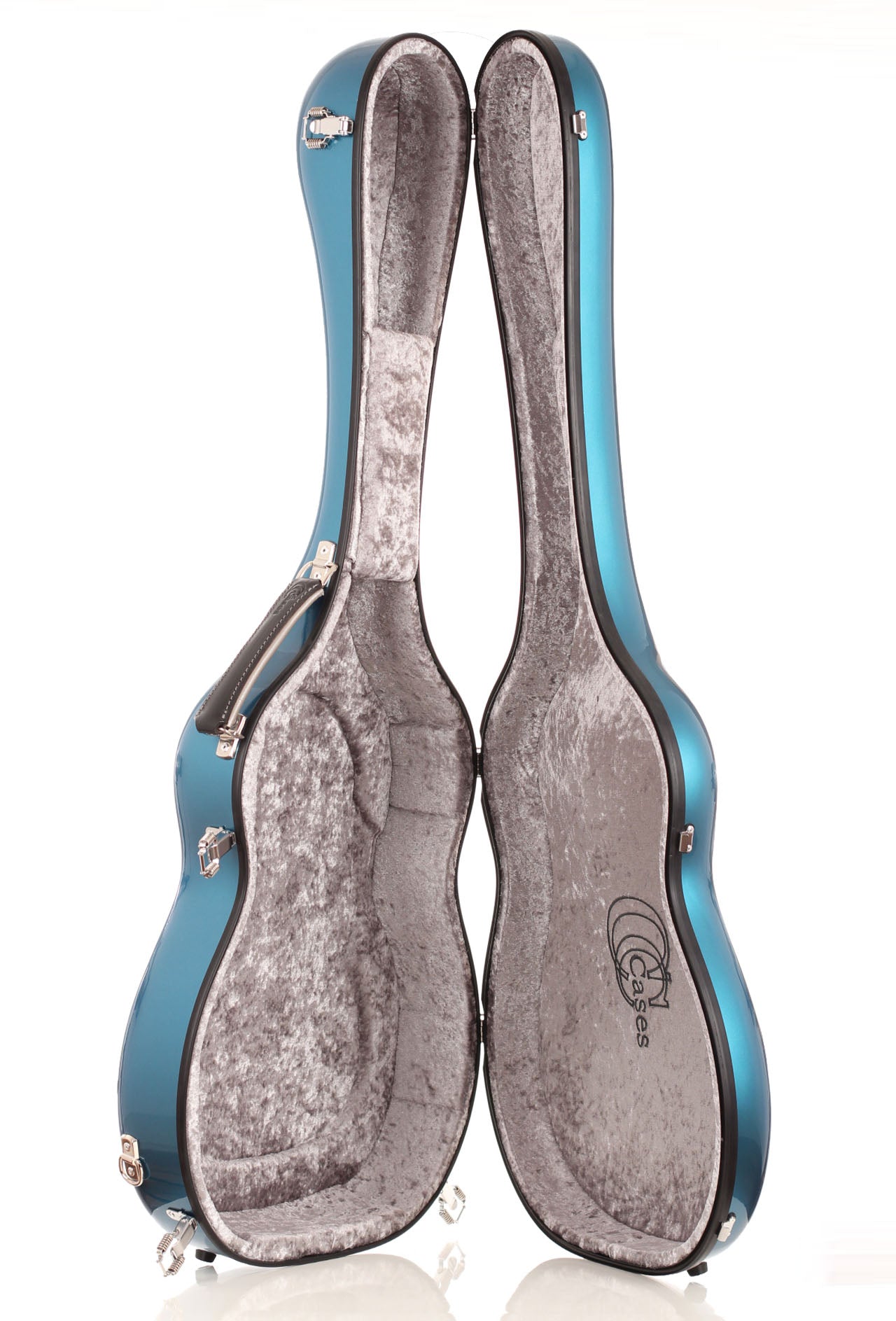 Carbon fiber case with gloss finish, Genuine leather hand-made handle, comfortable shoulder straps, High quality interior velvet padding, Interior Storage/string box, Certificate of authenticity.