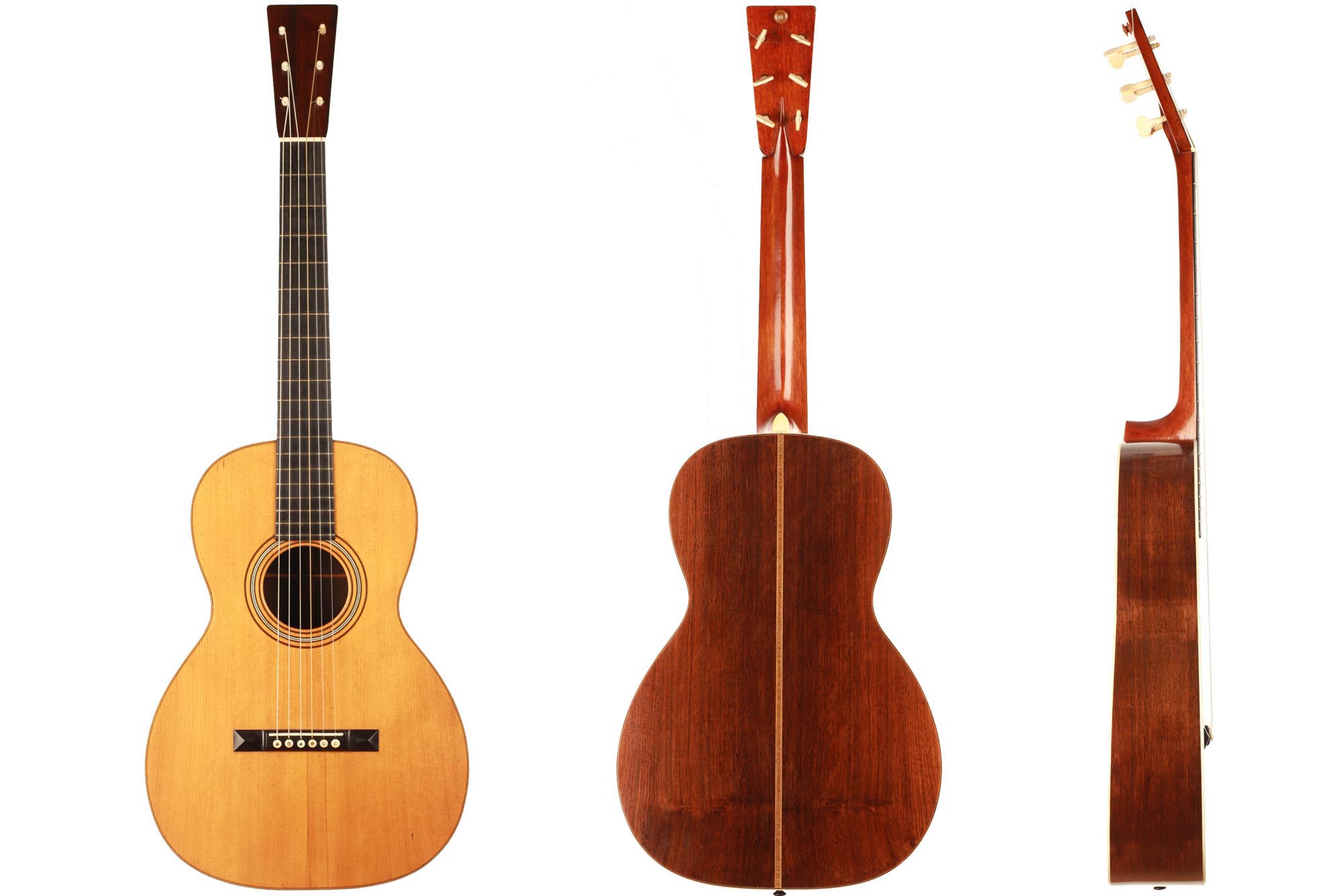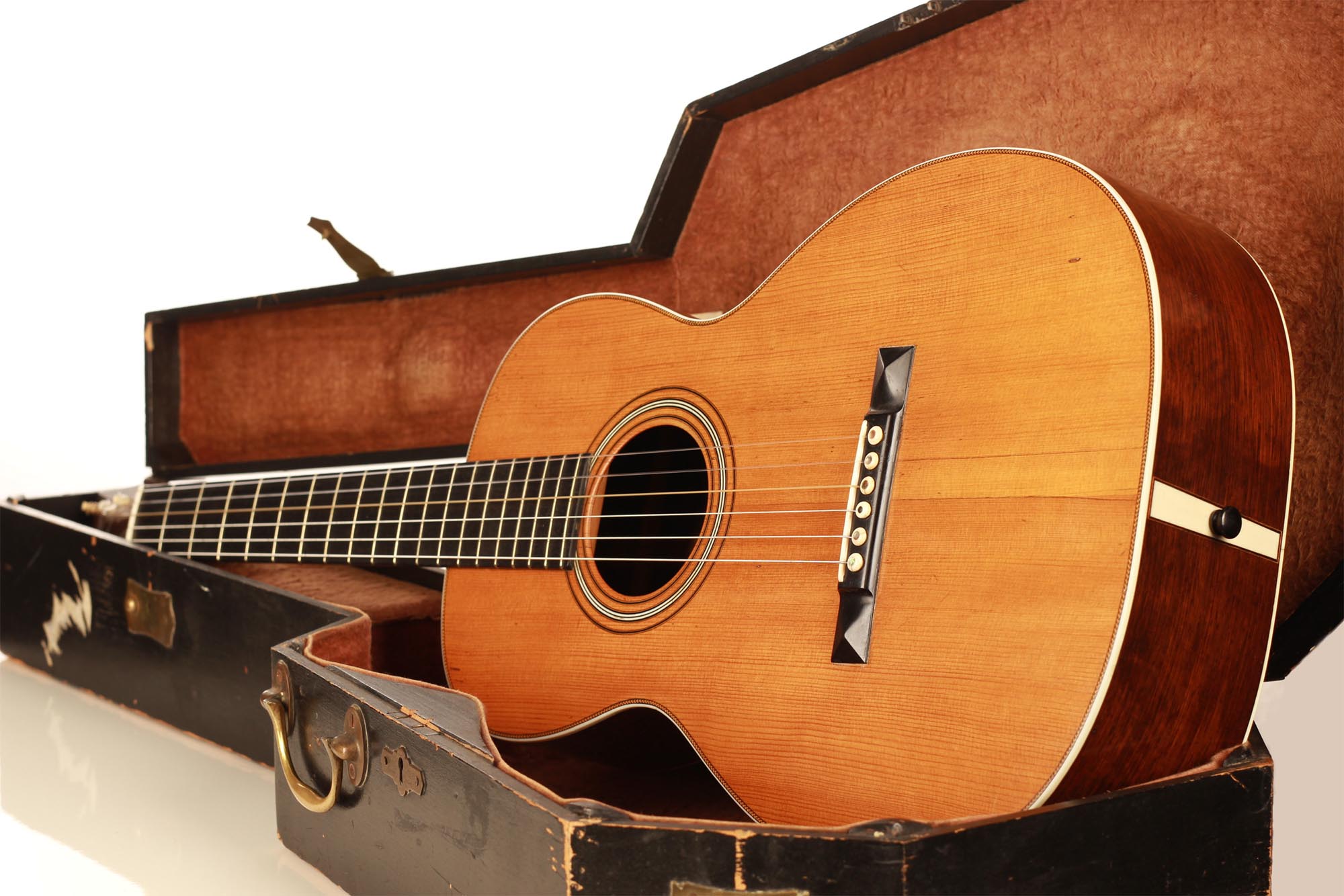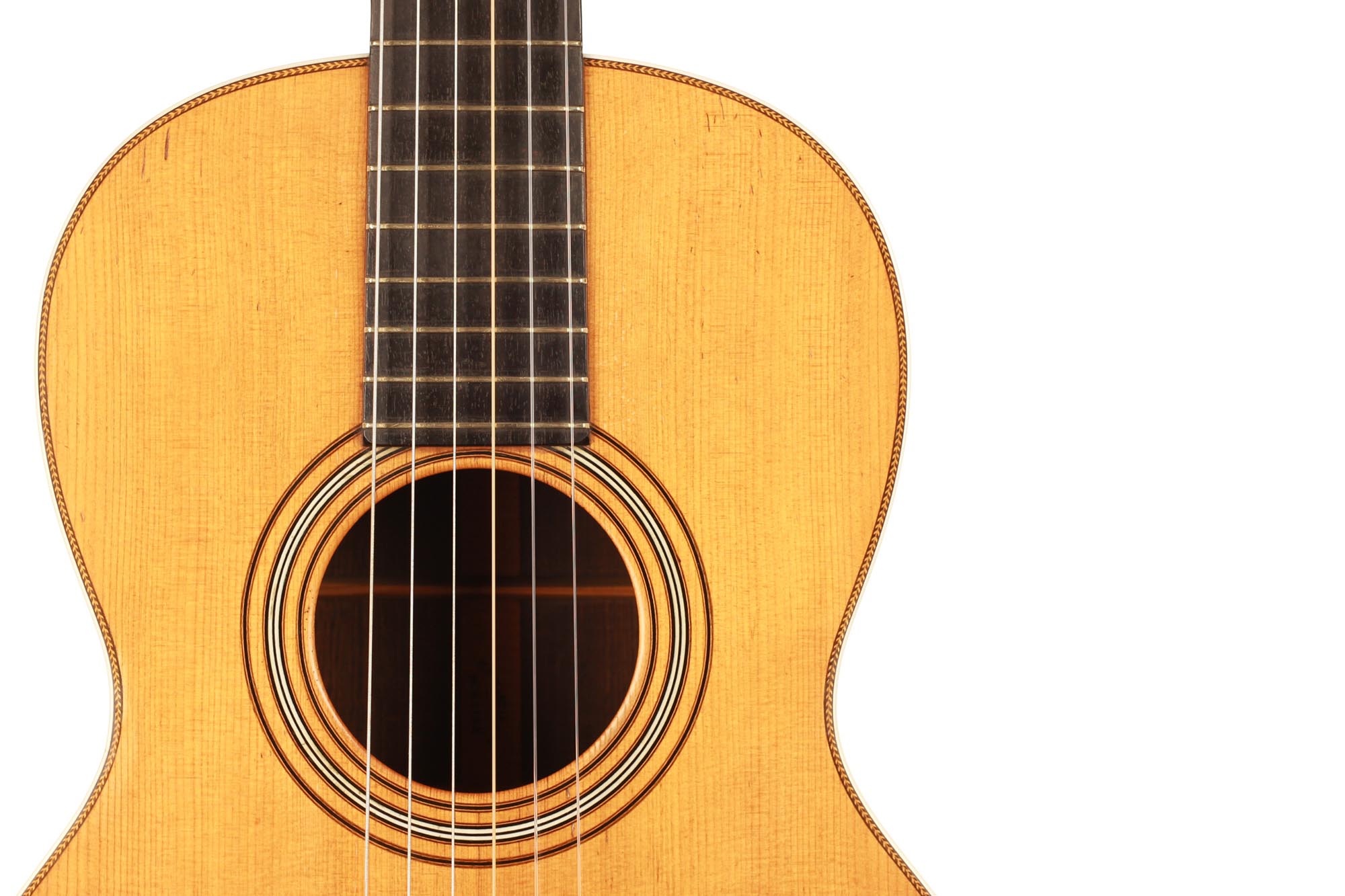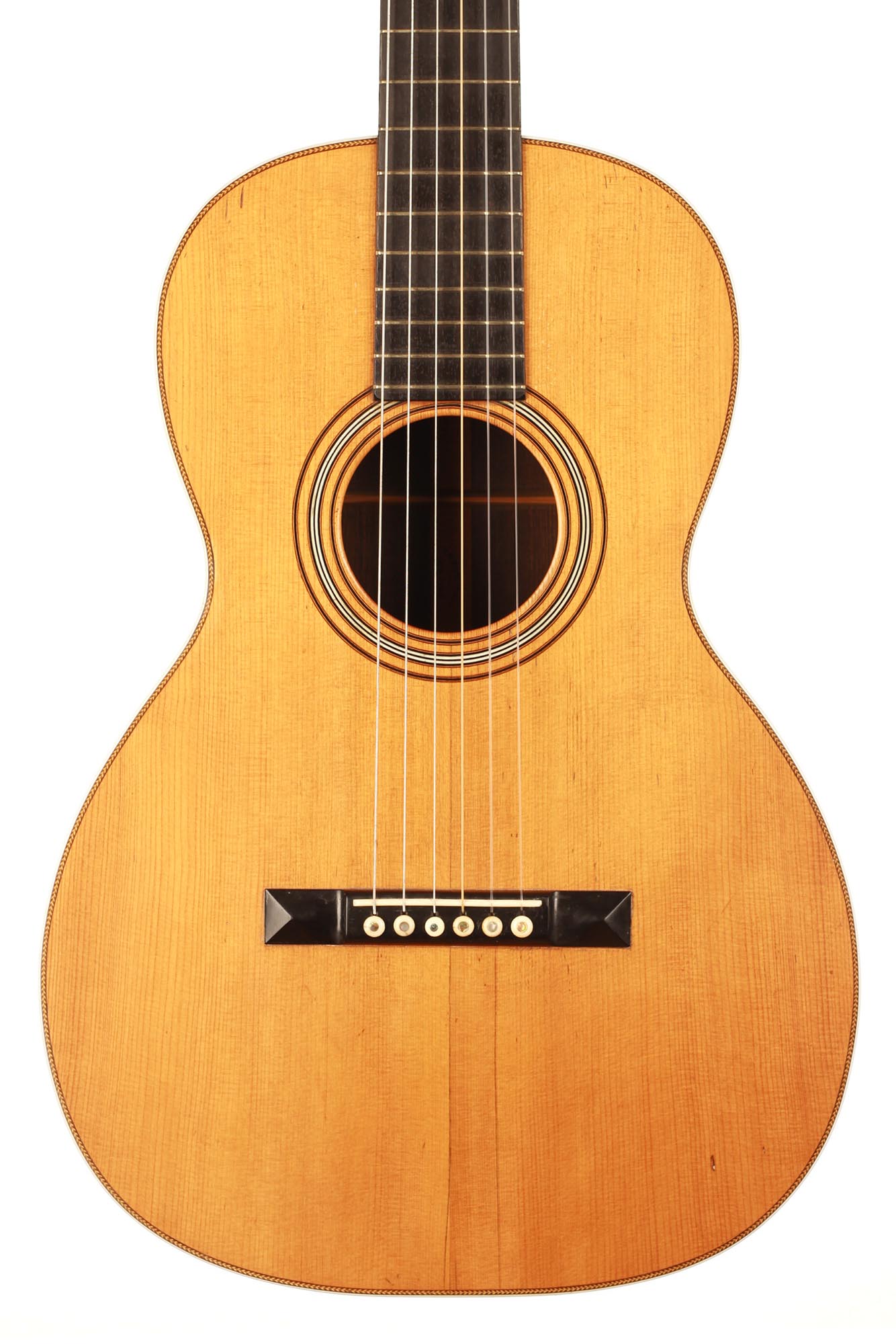 Diese fantastische C.F. Martin Gitarre von ca. 1880 - 1890 ist ein wunderschönes Beispiel für die Gitarren des späten 19. Jahrhunderts. Obwohl C.F. Martin Gitarren in der Regel nicht in unserem Interessengebiet liegen, ist uns diese Gitarre sofort ins Auge gefallen. Neben dem beeindruckenden Zustand und der Sorgfalt, die bei der Herstellung und Konservierung aufgewendet wurde, hat diese Gitarre einen atemberaubenden Klang. Der Reichtum des Klangs und die Klarheit jeder Note sind für uns eine Offenbarung und eine Entdeckung der Gitarren des späten 19. Jahrhunderts dieser prestigeträchtigen Marke.