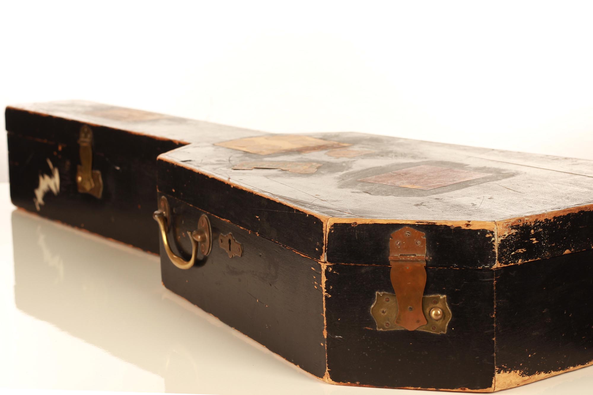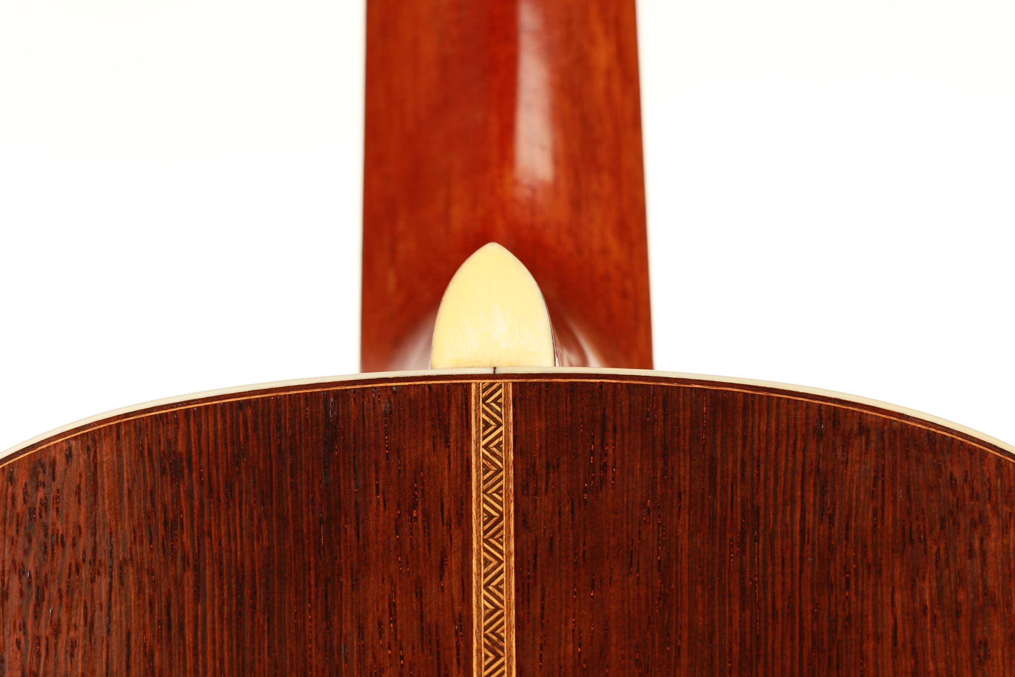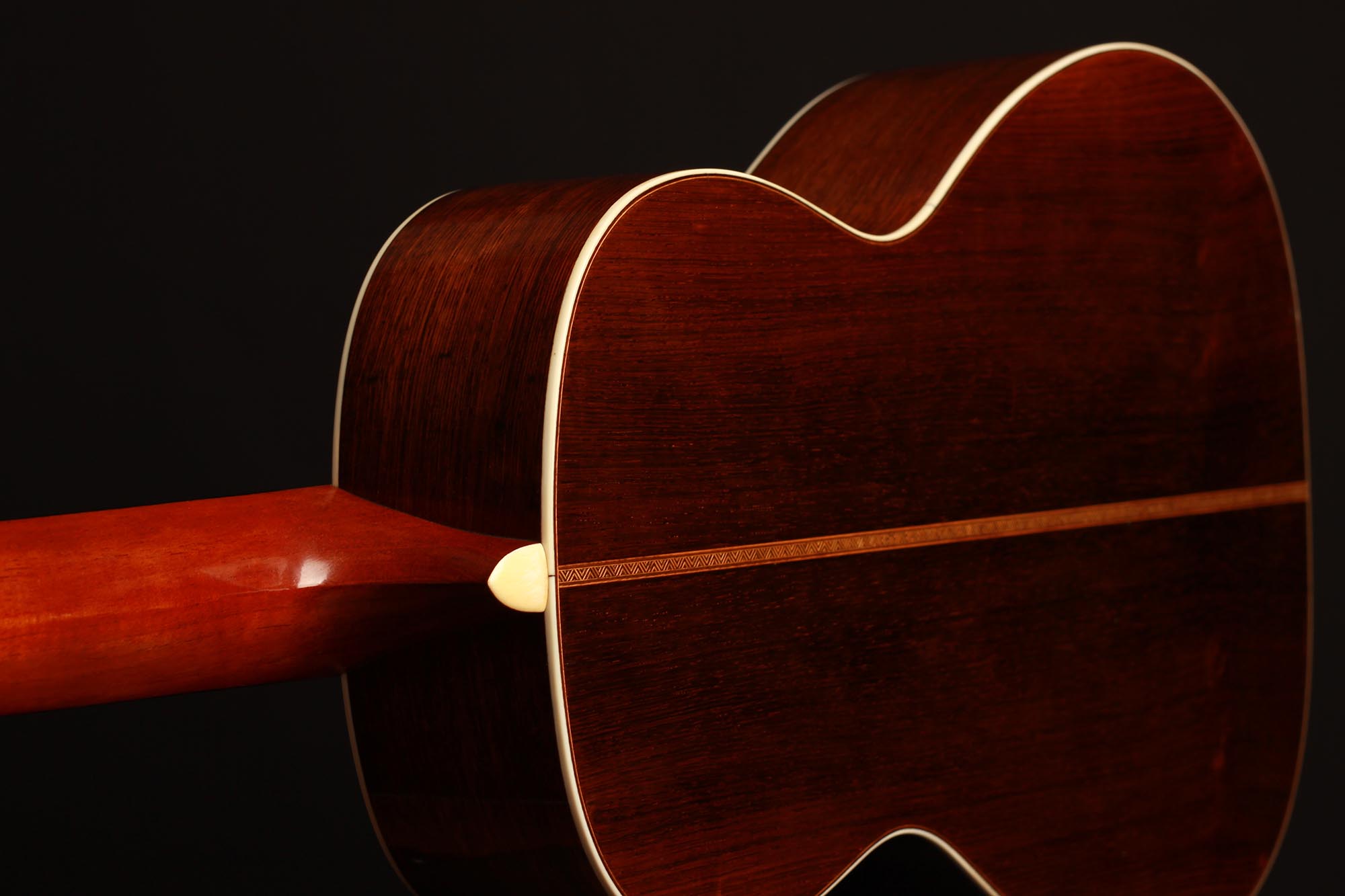 Dieses Instrument befindet sich in einem ausgezeichneten Zustand. Es hat zwei reparierte Risse unter dem Steg und einen sehr dünnen Riss auf der Rückseite. Die Qualität der verwendeten Materialien ist bemerkenswert. Die Wirbel sind original und aus Elfenbein gefertigt, wie viele andere Elemente des Instruments. Der Boden und die Zargen sind aus einem atemberaubenden südamerikanischen Palisander mit einer sehr engen und geraden Maserung gefertigt. Diese Gitarre ist ein außergewöhnliches Musikinstrument und ein sehr seltenes Sammlerstück.