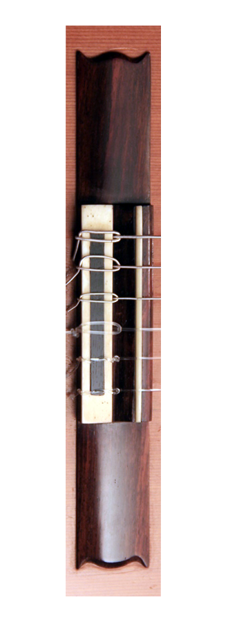 Das Modell Konzert von Thomas Ochs ist seine Interpretation der aus der Bautradition der spanischen Konzertgitarre entstandenen, modernen Konzertgitarre. Beeinflusst von den Instrumenten von José Romanillos, Daniel Friederich und Richard Jakob Weissgerber überzeugen die Instrumente von Thomas Ochs mit einer eigenständigen Klangästhetik und außergewöhnlich guter Bespielbarkeit. Die Konstruktion der Fichtendecke mit sieben symmetrisch angeordneten Fächerleisten und einer durchbrochenen Querleiste unterhalb des Schallochs befördert die Tragfähigkeit der Tonabstrahlung und das Volumen der Bässe. Eine Versteifung der Decke oberhalb des Schalllochs unterstützt die Klangdauer im Diskant. Sowohl die Decke als auch der aus Afrikanischem Palisander gefertigte Boden sind mit einer Kuppelwölbung versehen. Vier Querbalken versteifen den Boden und sorgen zusammen mit den versteiften (Doppel-)Zargen dafür, dass die Decke, ähnlich einer fest eingespannten Membran, schwingen kann. Diese Konstruktionsmerkmale steigern die Projektion des Instruments. Der mit Carbonstäben versteifte Hals aus Cedro mit angeschäfteter Kopfplatte ist in spanischer Bauweise mit dem Korpus verbunden. Der Obersattel aus Knochen sitzt nicht am Griffbrettende, sondern wird in das Griffbrett eingesetzt. So erreicht Thomas Ochs eine zusätzliche Versteifung des Hals-Kopf-Übergangs. Die Verzierung des Instruments ist klassisch elegant und schlicht gehalten. Das Schallloch wird von einer handgearbeiteten Schallochintarsie umrandet, der Korpus wird von zur Schallochintarsie passenden Zierspänen und Rändern aus Edelhölzern eingefasst. Die Decke des Instruments ist durch eine exklusive Schellack-Handpolitur veredelt. Das Korpusholz wird von einer dünnen Lackschicht auf Nitrozellulose-Basis viele Jahre geschützt. Der geölte und gewachste Hals vermittelt Ihnen unmittelbar die unvergleichliche Haptik des Werkstoffes Holz und wird nicht klebrig. Besonderen Wert legt Thomas Ochs auf eine optimale Bespielbarkeit des Instruments. Eine dezente Querwölbung des von der Decke abgehobenen Griffbretts aus Ebenholz (elevated fingerboard) verbessert spürbar die Bespielbarkeit, insbesondere bei Barré-Griffen und die Erreichbarkeit der hohen Lagen. Eine Armauflage (armrest) aus Ebenholz vermindert das Einschneiden der Korpuskante spürbar und sorgt dafür, dass die Decke des Instruments frei schwingen kann und nicht vom aufliegenden Unterarm des Spielers gedämpft wird. Eine Stimmmechanik von Klaus Scheller mit Griffen aus Ebenholz und Wellen aus dunklem Horn ermöglicht präzises Stimmen und gewährleistet eine hohe Stimmstabilität.