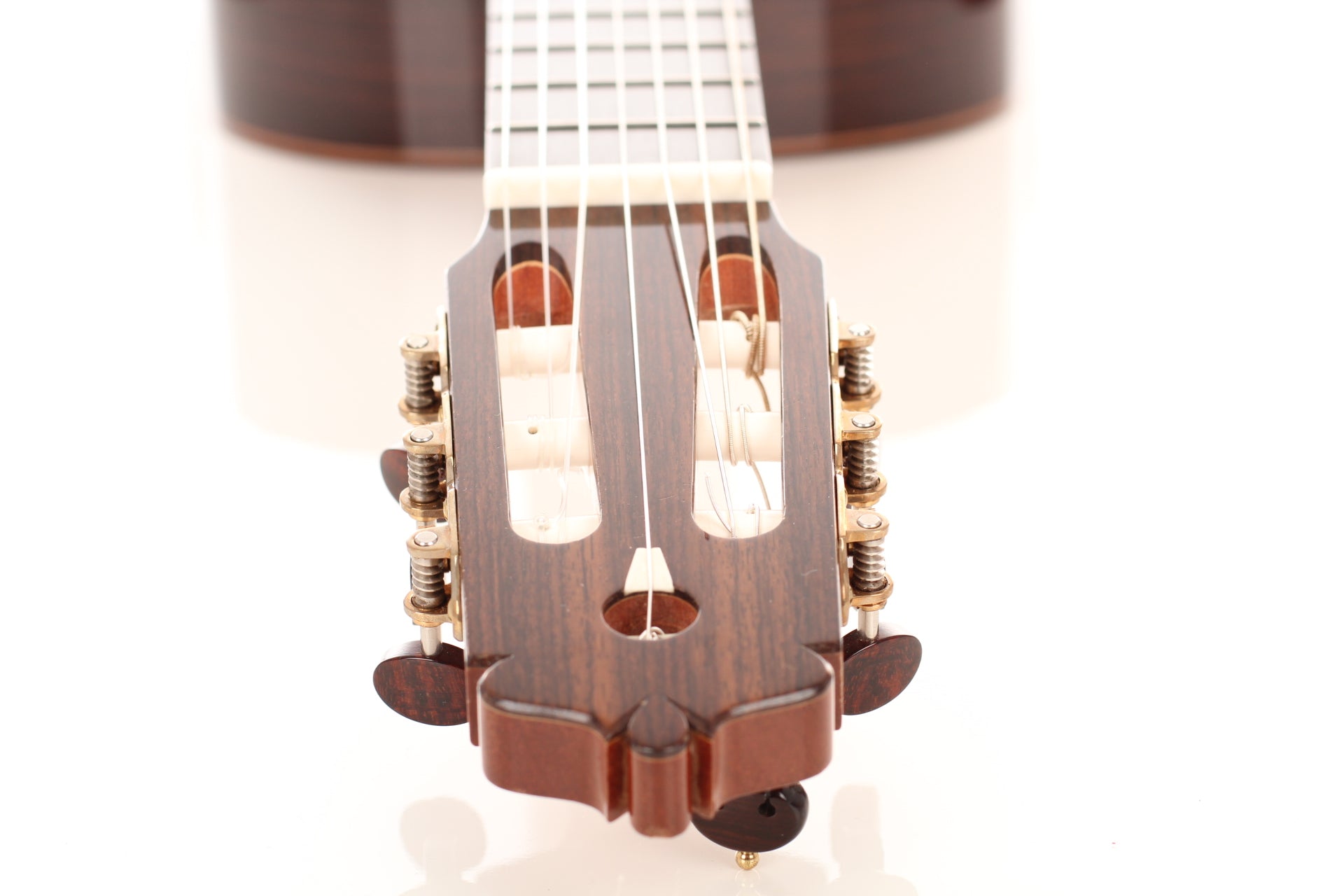 Gitarrenbauer: José Luis RomanillosBaujahr: 1979Decke: SpruceBoden und Zargen: Indian rosewoodDeckenoberfläche: French polishKorpusoberfläche: French polishLuftresonanz: G / G sharpGewicht (g): 1410Mechaniken: RodgersZustand: Excellent