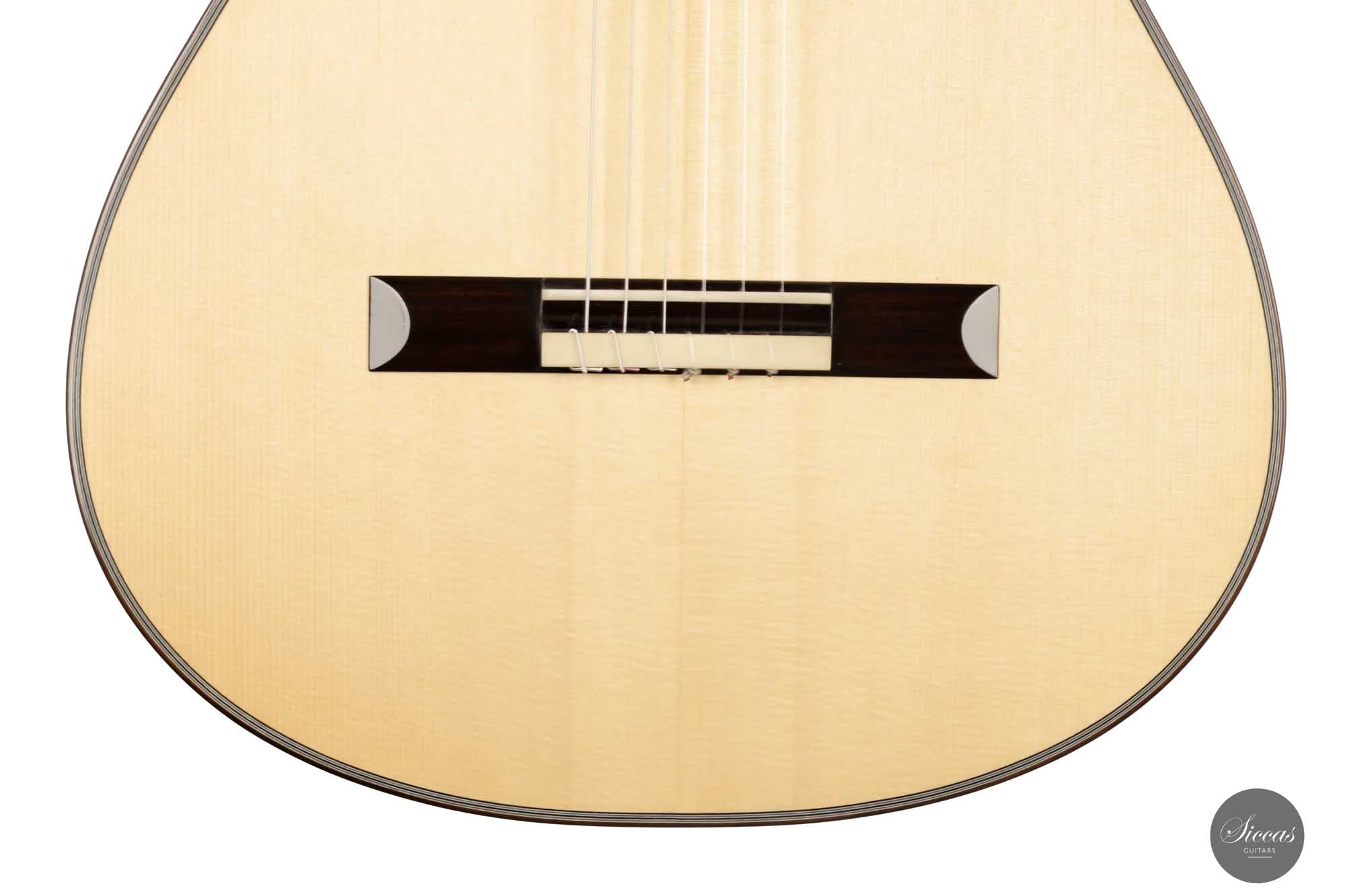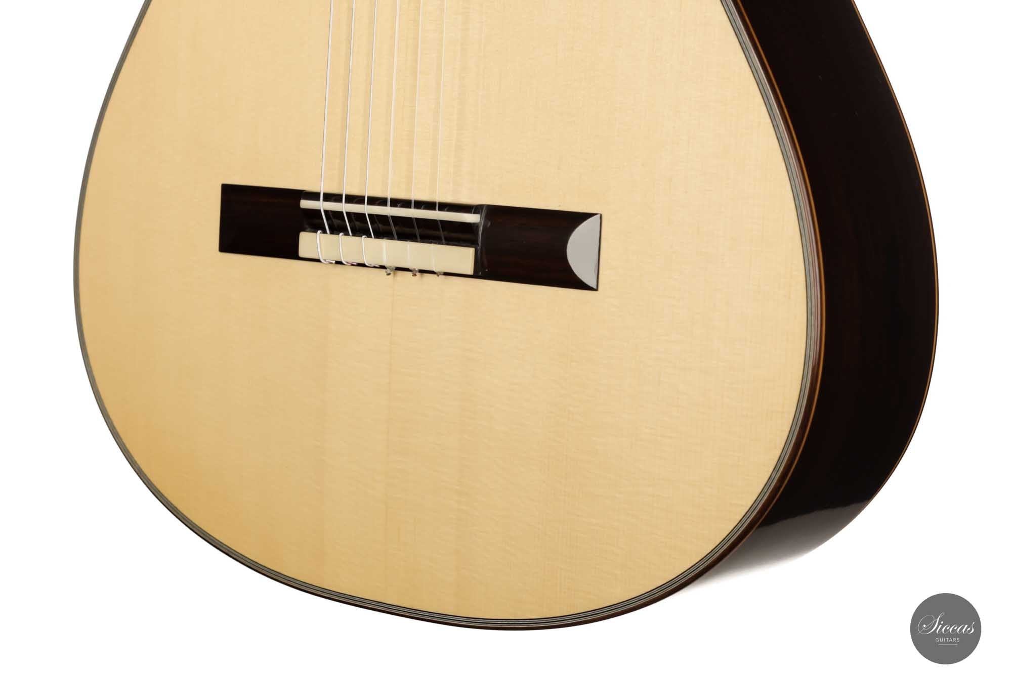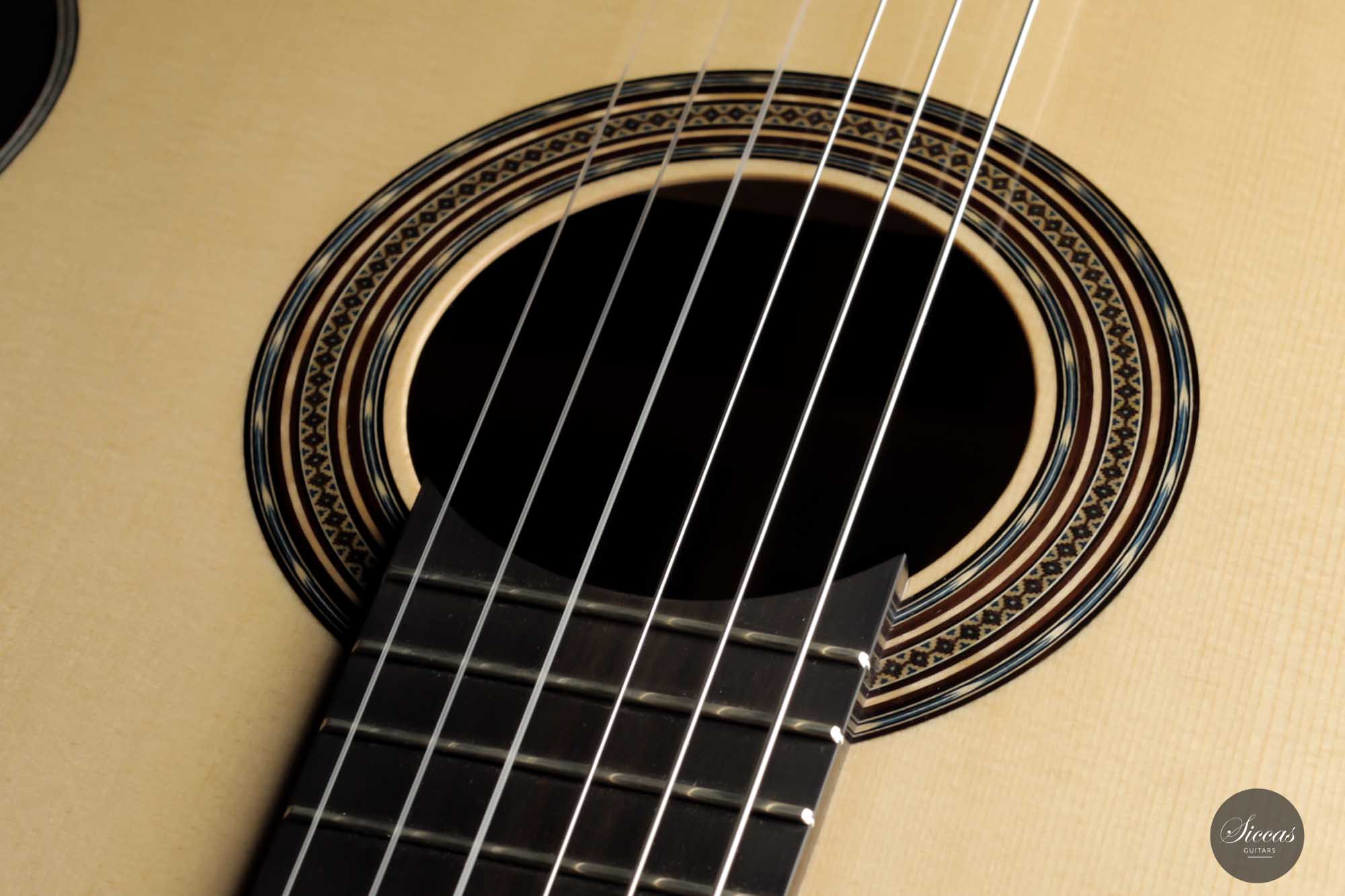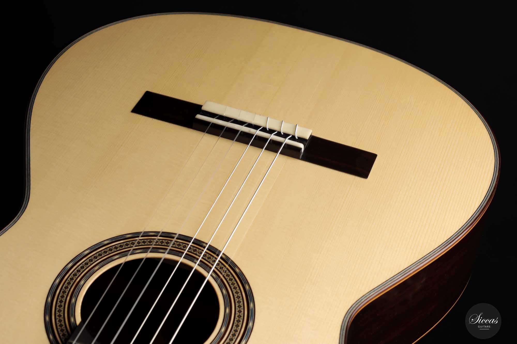 Dieses brandneue Instrument mit der Nummer 508 ist in jeder Hinsicht eine reizvolle Gitarre. Ihr vielseitiger Charakter bietet dem Gitarristen endlose Möglichkeiten für jeden Musikstil. Als Ergebnis von Christophs Liebe zum Detail wurde jedes Element dieser Gitarre perfekt ausgeführt. Darüber hinaus sind die Fichtendecke und der Boden und die Zargen aus indischem Palisander von bester Qualität, und die Schellackpolitur ist meisterlich. Dank ihrer reichhaltigen Klangeigenschaften erlaubt diese feine Gitarre dem Spieler, unendliche klangliche Ausdrucksmöglichkeiten mit voller Unterstützung durch das Instrument zu erkunden. Christopher versteht es eindeutig, eine Gitarre mit hervorragender Spielbarkeit zu bauen, von der bequemen Halsform bis hin zum großartigen Gesamtgefühl" dieser Gitarre, das durch ein ideales Maß an Spannung in der Gitarre erreicht wird. Ein gut klingendes Instrument mit einem riesigen Volumen, das in jeder Spielsituation eingesetzt werden kann.