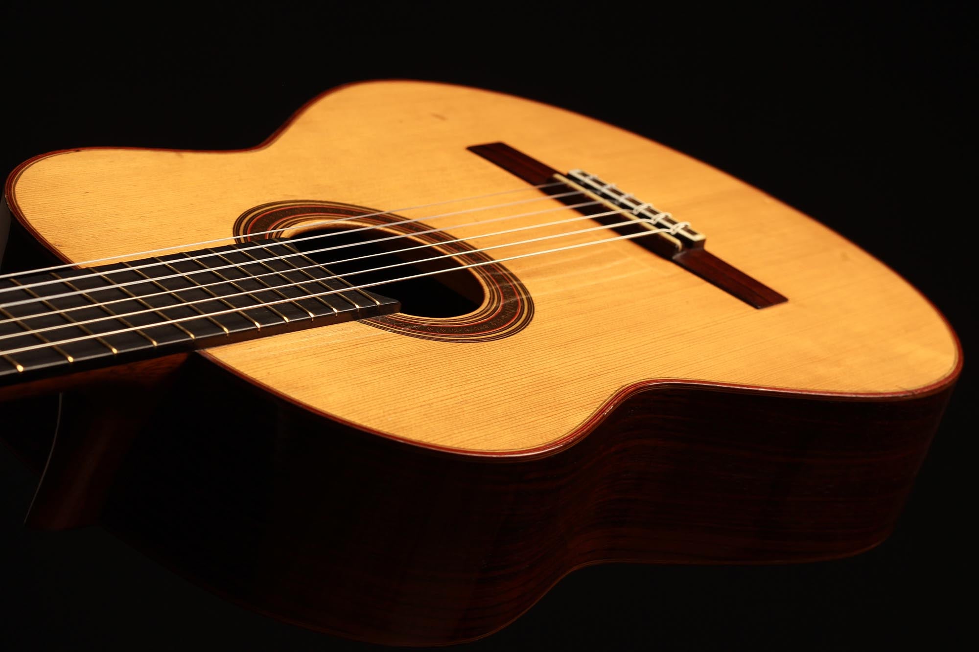 Diese Gitarre hat einen exquisiten Klang. Der Ton ist weich und elegant, mit einer außergewöhnlichen Ausstrahlung. Es ist ein Modell der Subtilität und Simplizität, in seiner besten Bedeutung. Diese Gitarre ist perfekt spielbar und es macht Spaß sie zu hören. Es ist ein frühes Konzertmodell mit dem ganzen Charme und Schönheit von Daniel Friederichs feinsten Fichtengitarren.