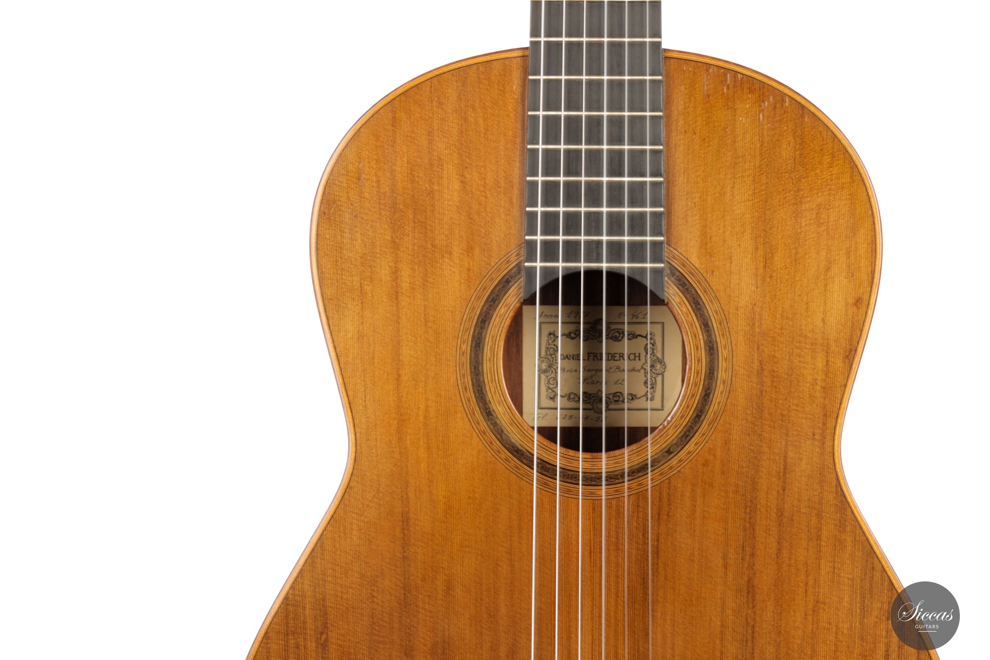 Daniel Friederich wurde am 16. Januar 1932 geboren und ist im Jahr 2020 verstorben. Obwohl er den festen Wunsch hatte, Gitarre zu spielen, mangelte es ihm an Geld, um sich ein Instrument zu kaufen. Im Alter von 23 Jahren fand er jedoch eine Lösung, indem er seine erste Gitarre selbst baute, eine Kopie einer Simplicio-Gitarre. Hierbei war ihm sein Gitarrenlehrer und renommierter Gitarrenbauer, Christian Aubin, eine große Stütze. Nachdem Friederich selbst Werkzeuge hergestellt und Erfahrung im Gitarrenbau gesammelt hatte, zeigte er seine fünfzehnte Gitarre Robert Bouchet, der fortan seine Arbeit beeinflusste. Während seiner Karriere integrierte und modifizierte Friederich auch einige von Bouchets Ideen.