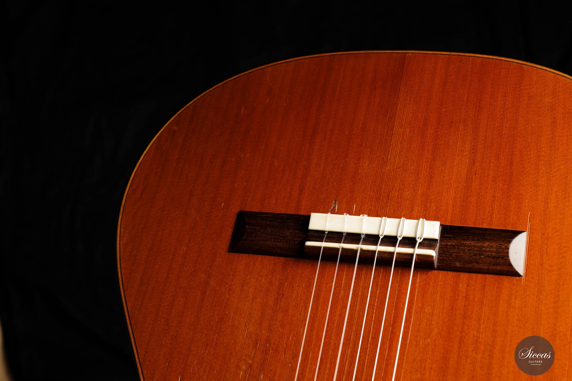 Während der 1970er und 1980er Jahre wagte sich Daniel Friederich, der angesehene französische Meistergitarrenbauer, über seine traditionelle Arbeit hinaus, um mit innovativen Designs zu experimentieren, die die Klangqualität steigern sollten. Diese "guitare expérimentale" sind seltene Juwelen; zwischen 1970 und 1986 wurden nur etwa ein Dutzend Stück gefertigt. Jede Gitarre ist einzigartig: Einige tragen die konsistente DF-Nummerierung zusammen mit dem Jahr, gelegentlich verziert mit handschriftlichen Notizen, während andere lediglich das Erstellungsjahr anzeigen.