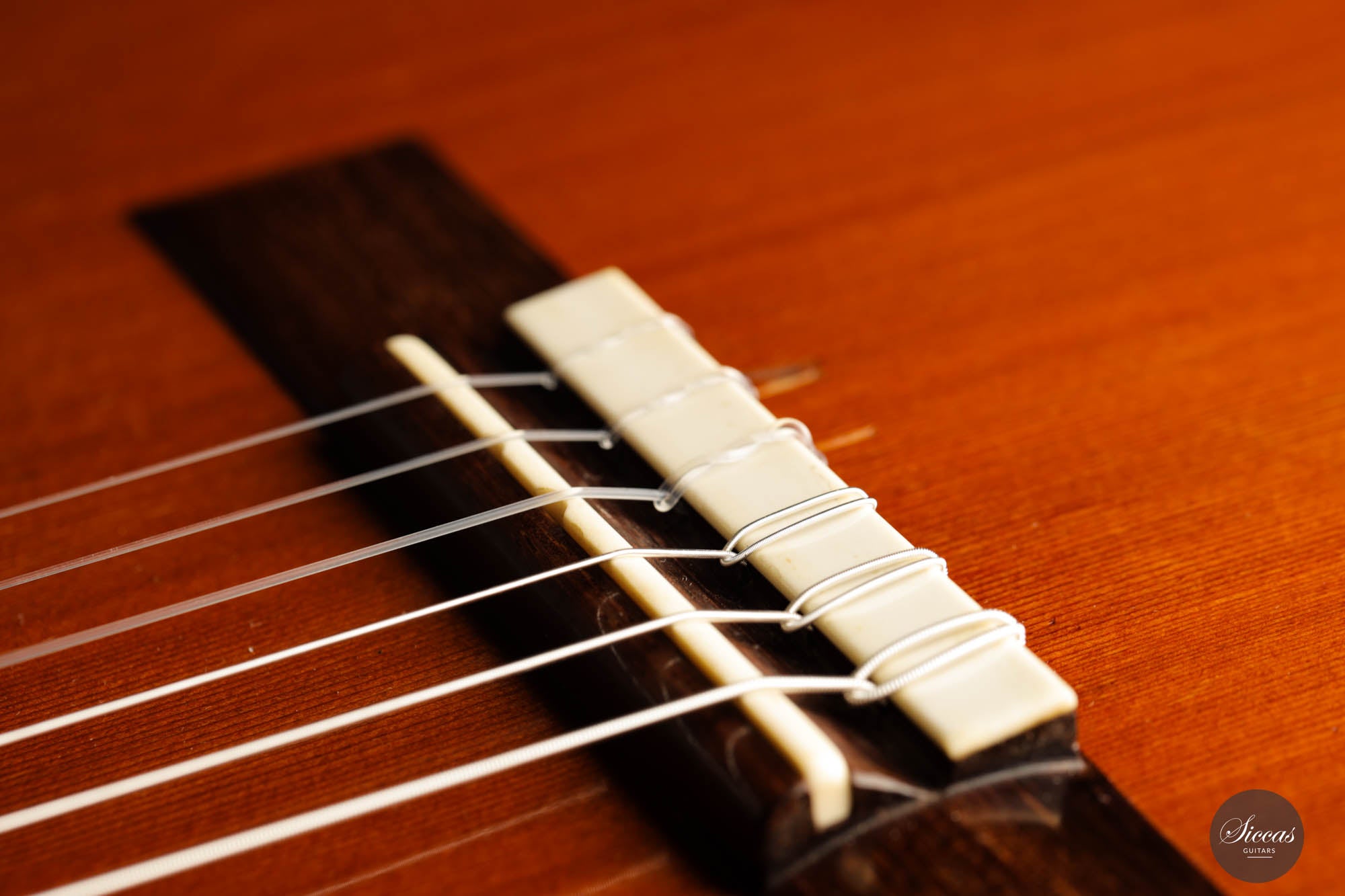 Besonders erwähnenswert ist die doppelseitige Konstruktion der Gitarre, die eine zusätzliche Mahagonischicht auf der Innenseite enthält. Dies erhöht die Haltbarkeit und verstärkt ihre akustischen Eigenschaften, eine charakteristische Eigenschaft des renommierten "Concert" -Modells von Friederich.