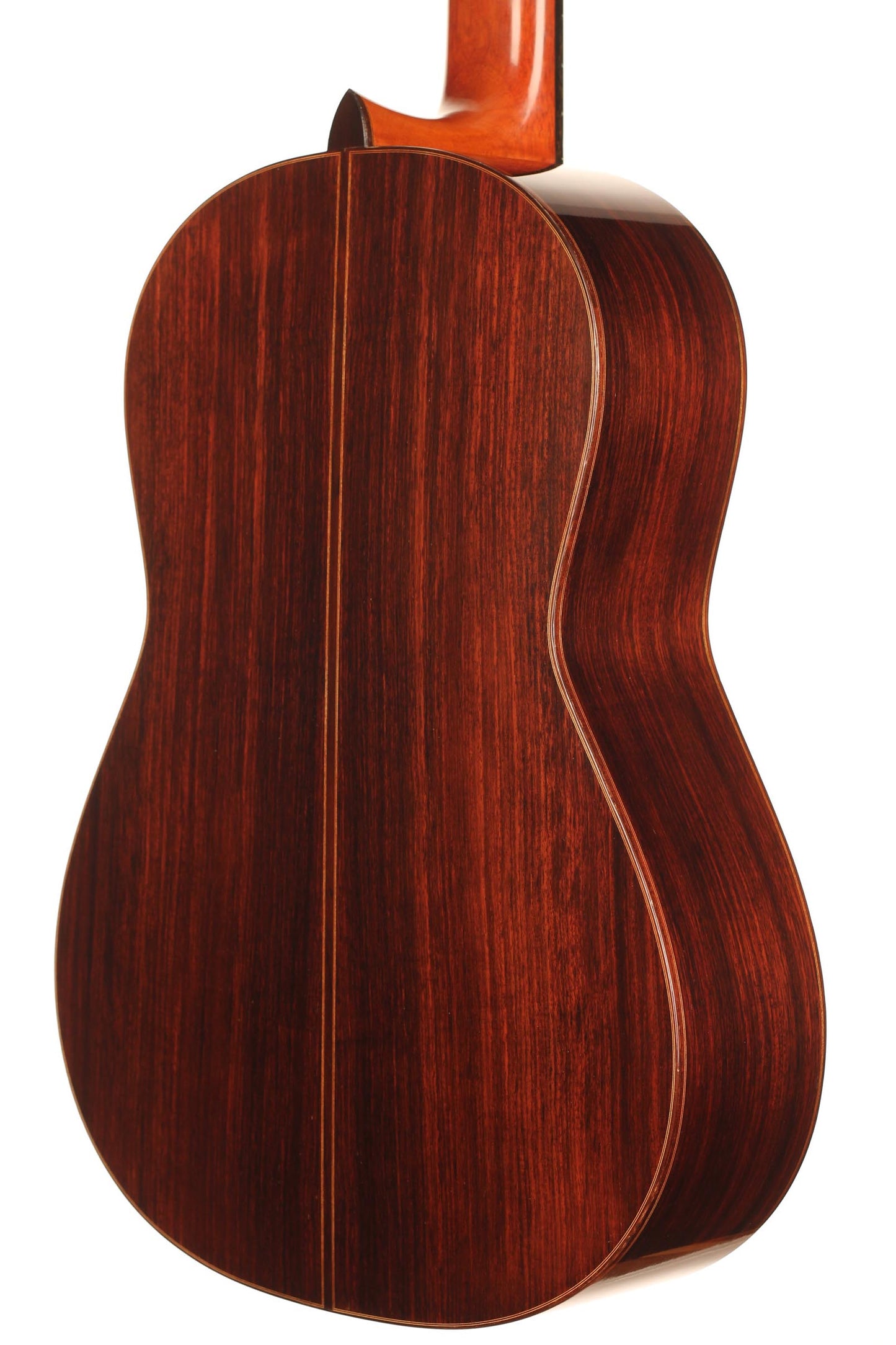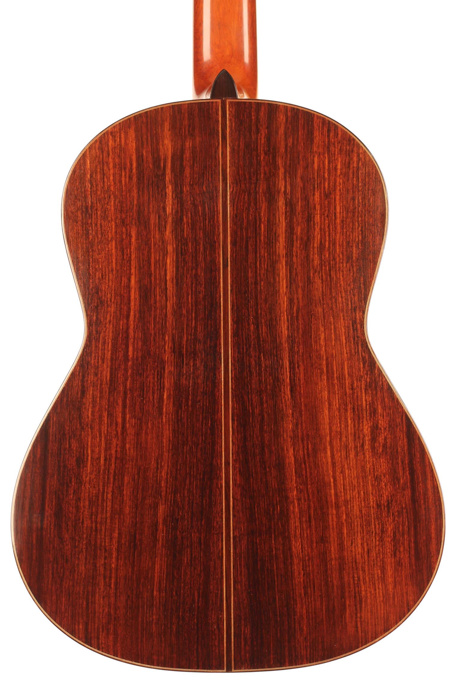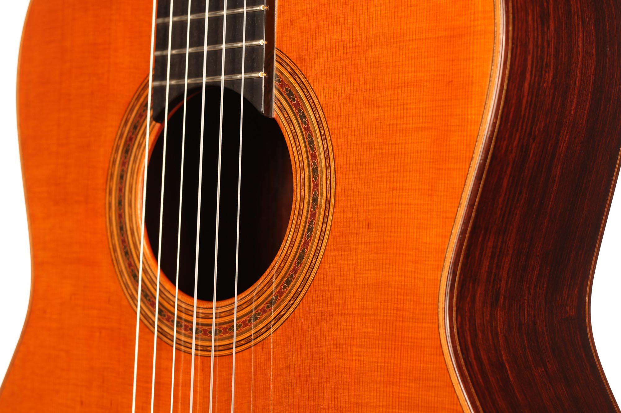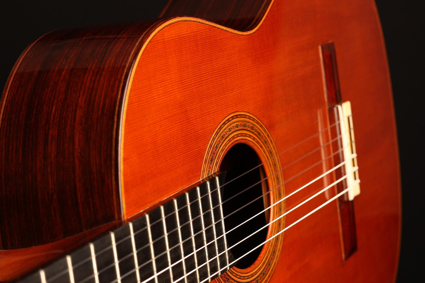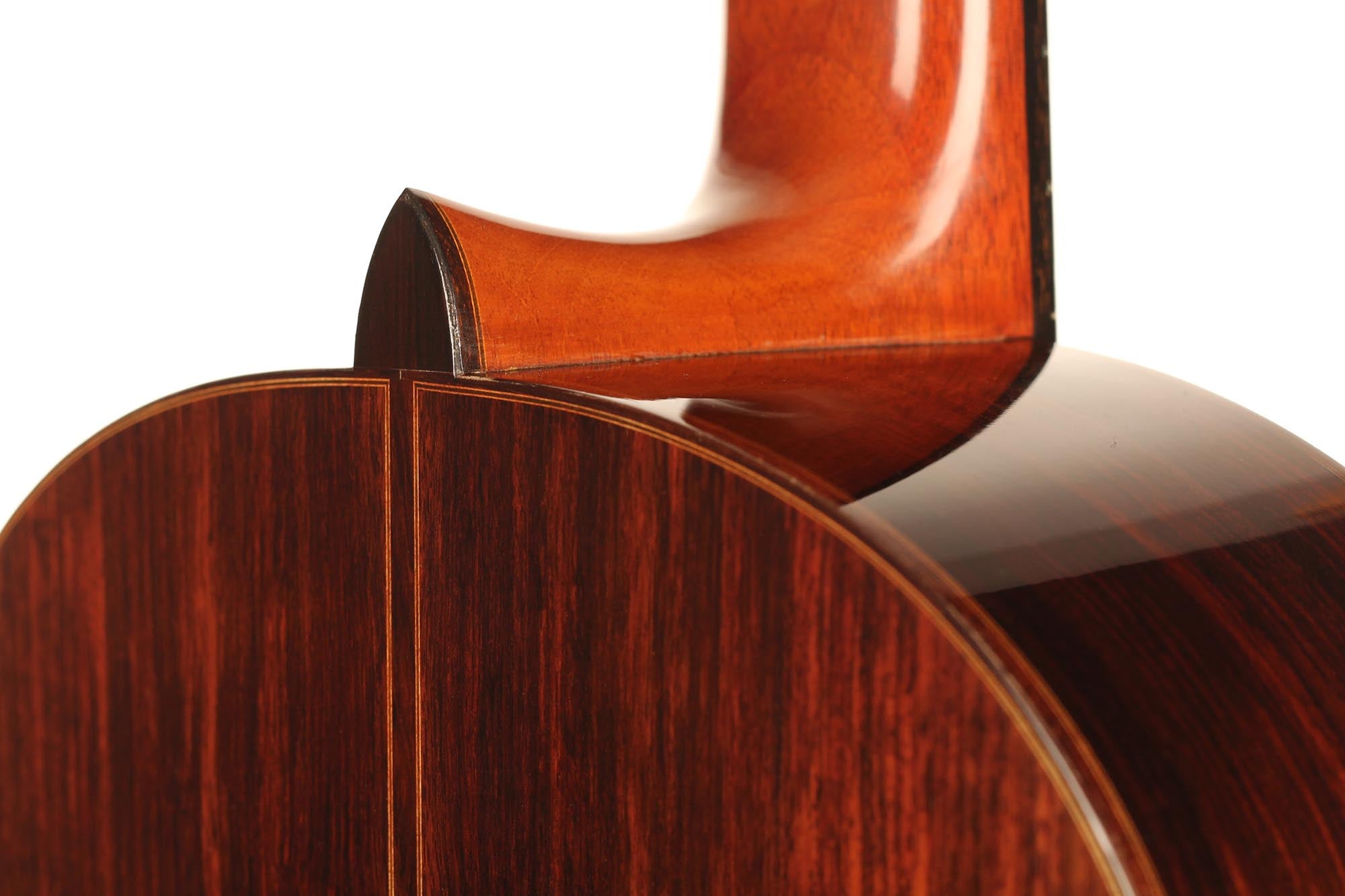 Diese Gitarre stammt aus der populärsten Schaffenszeit Friederichs. Außerdem ist dieses Instrument völlig frei von Rissen. Vor allem aber ist es ein absolut fantastisches Konzertinstrument. Daniel Friederich hatte in dieser späten Phase seiner Karriere ein sehr hohes Maß an Eleganz und Raffinesse in der Klangfarbe, den Farben, der Ausgewogenheit erreicht. Das Spielerlebnis ist absolut fesselnd. Gesamtvolumen und Projektion dieser Gitarre sind immens und die satten, strukturierten Bässe verbinden sich perfekt mit den graziösen, facettenreichen Höhen. Das Sustain ist bis zum neunzehnten Bund hervorragend und die Obertöne vervollständigen das große Klangspektrum.
