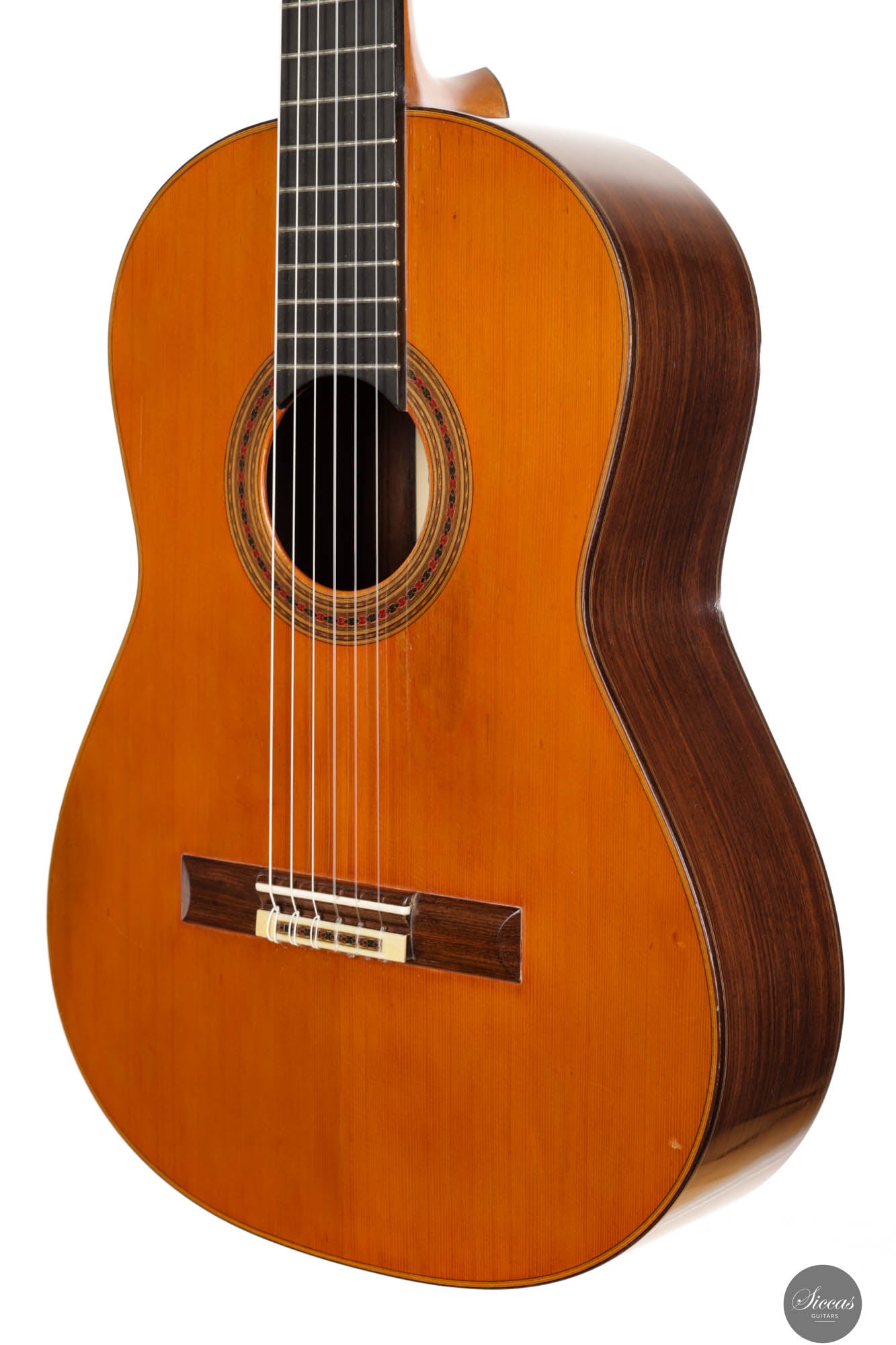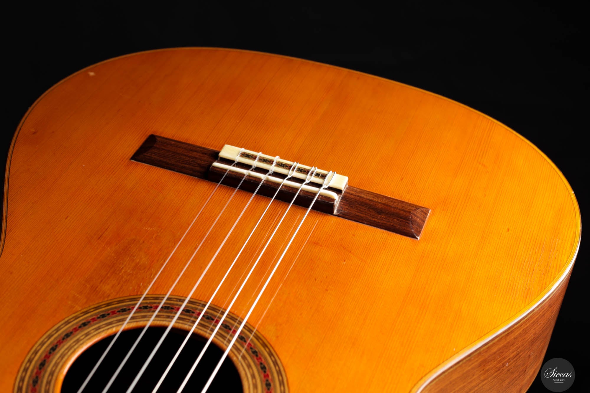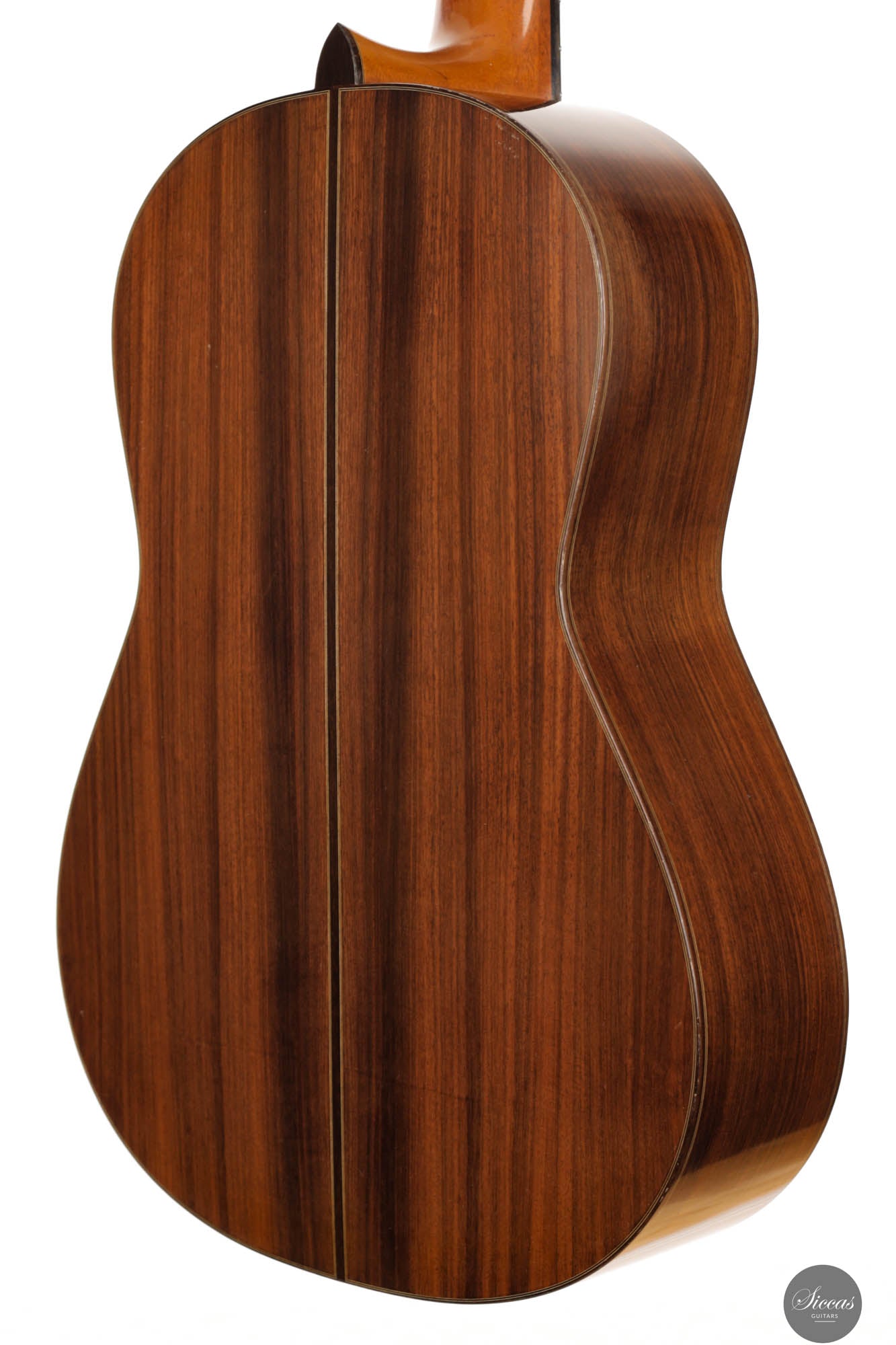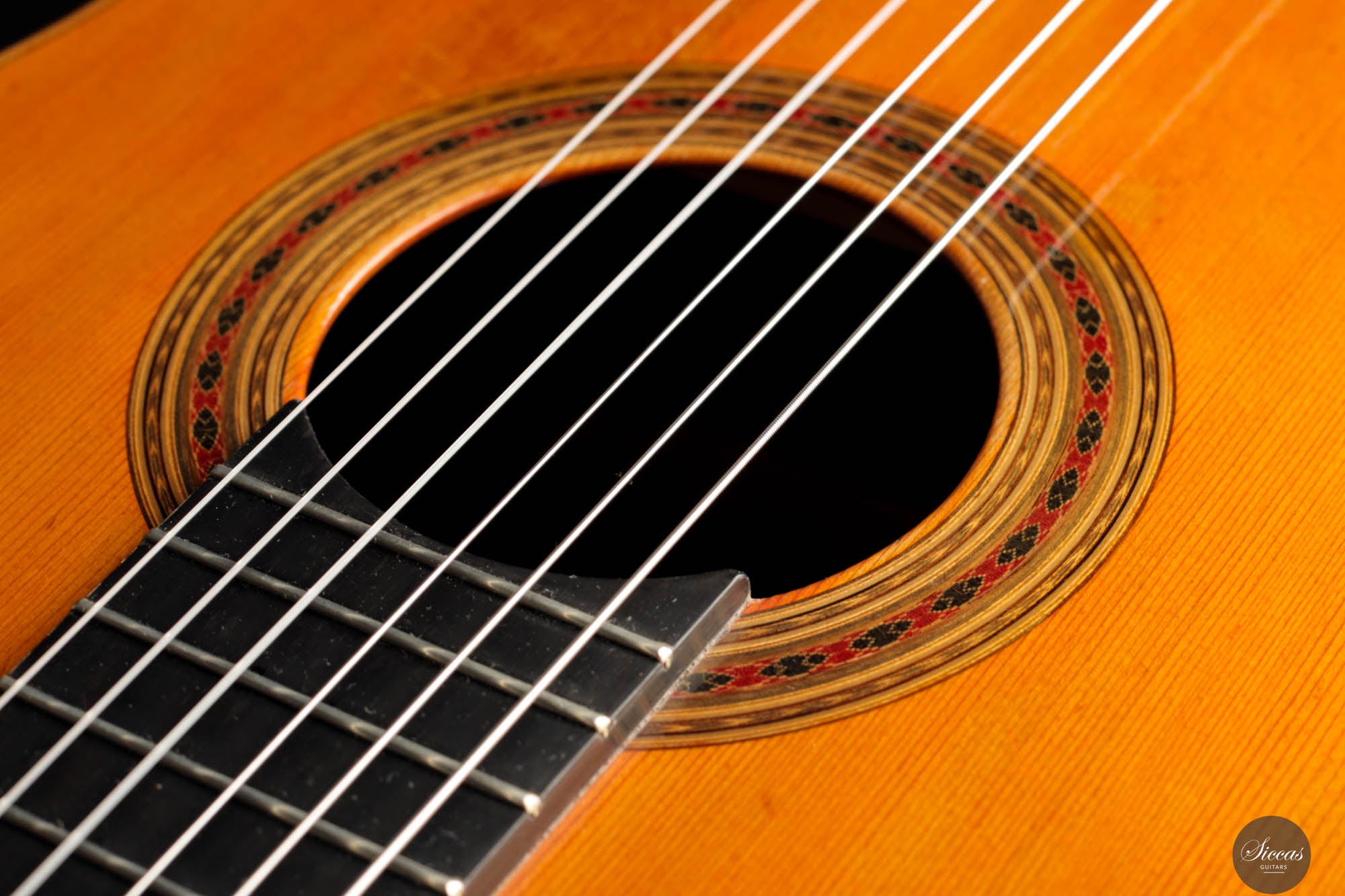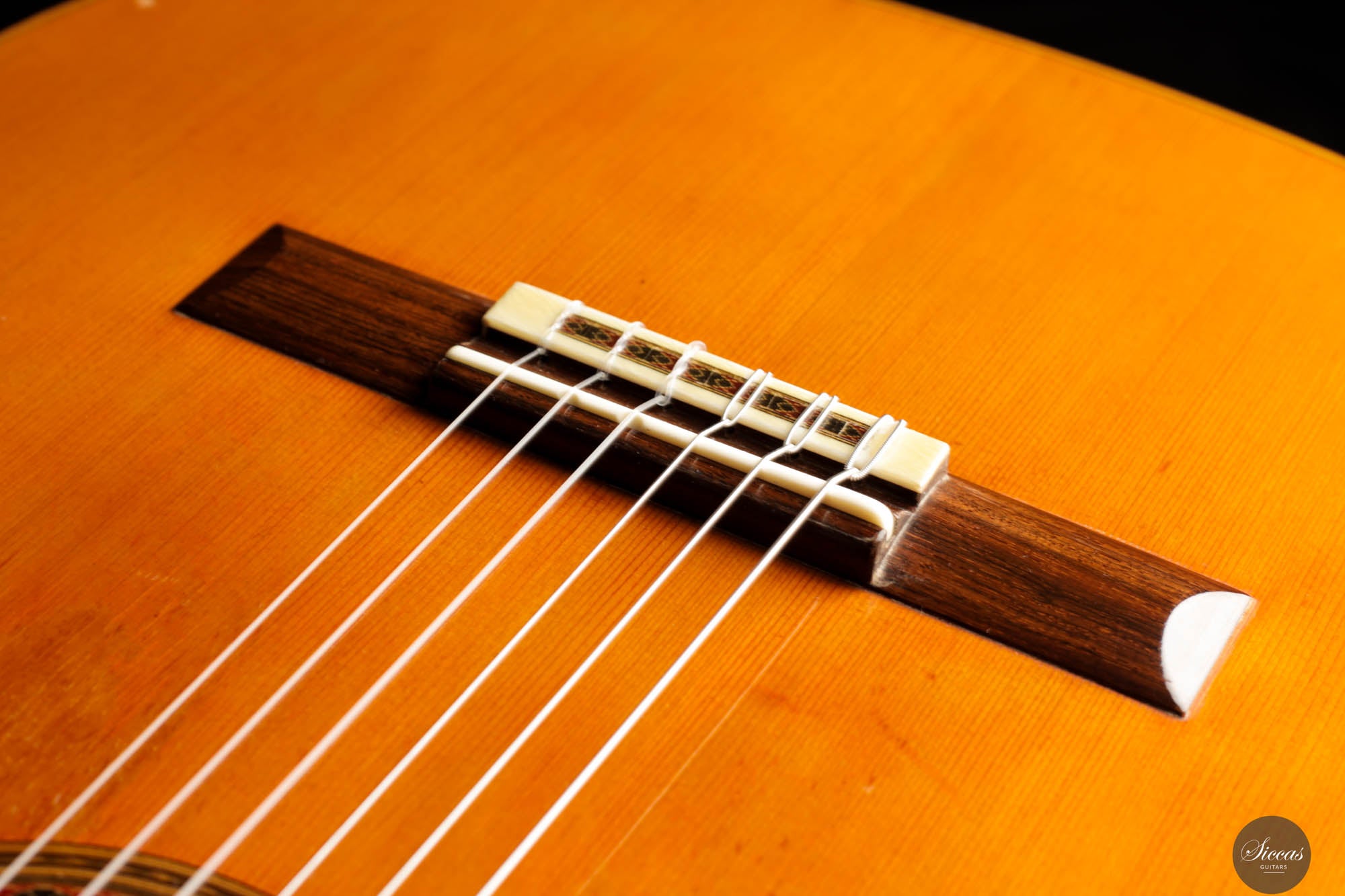 Die ästhetische und akustische Schönheit dieser Gitarre wird durch den indischen Palisander ihres Rückens weiter erhöht, ein Material, das für seine visuelle und klangliche Reichhaltigkeit bekannt ist. Die Seiten, verdoppelt mit Mahagoni, verbessern die Klangprojektion und Resonanz der Gitarre und tragen zu ihrem vollmundigen Charakter bei. Der Zustand dieser Gitarre ist vorbildlich, ihre ursprüngliche Integrität ist bewahrt, abgesehen von einigen Oberflächen-Nachbesserungen. Sie ist frei von Rissen oder Reparaturen. Das Besitzen des 1994er Daniel Friederich "Konzertmodells" Nr. 725 bedeutet nicht nur, eine hochwertige Gitarre zu besitzen; es bedeutet, ein Stück Geschichte von einem der am meisten verehrten Gitarrenbauer unserer Zeit zu umarmen. Dieses Instrument ist nicht nur ein Objekt der Schönheit und des Klangs; es ist ein Erbe, ein Schatz für jeden Musiker oder Sammler, der die Kunstfertigkeit und Geschichte schätzt, die in der Welt der klassischen Gitarren verwurzelt sind.