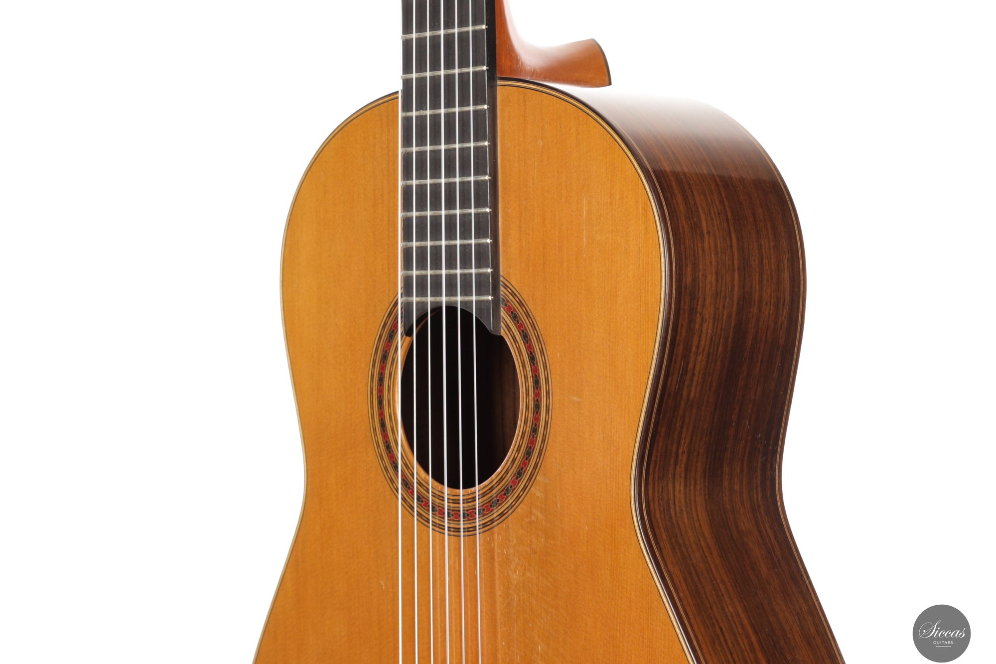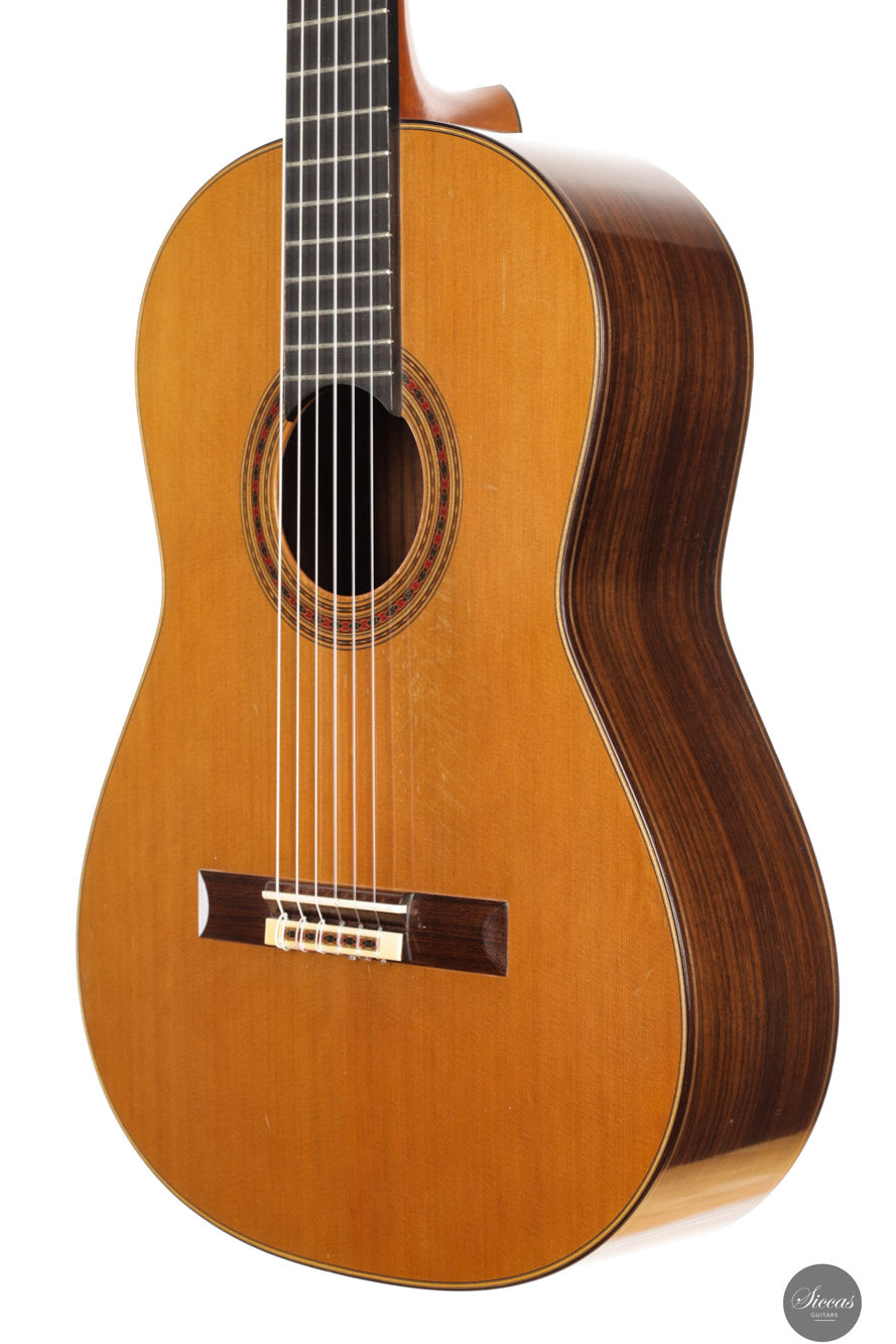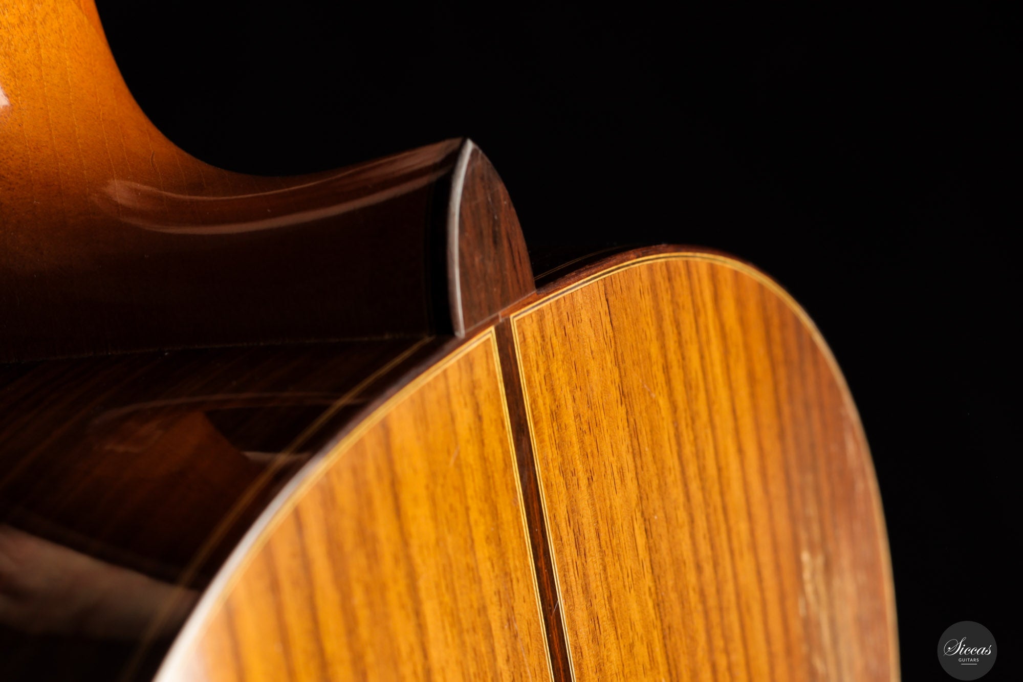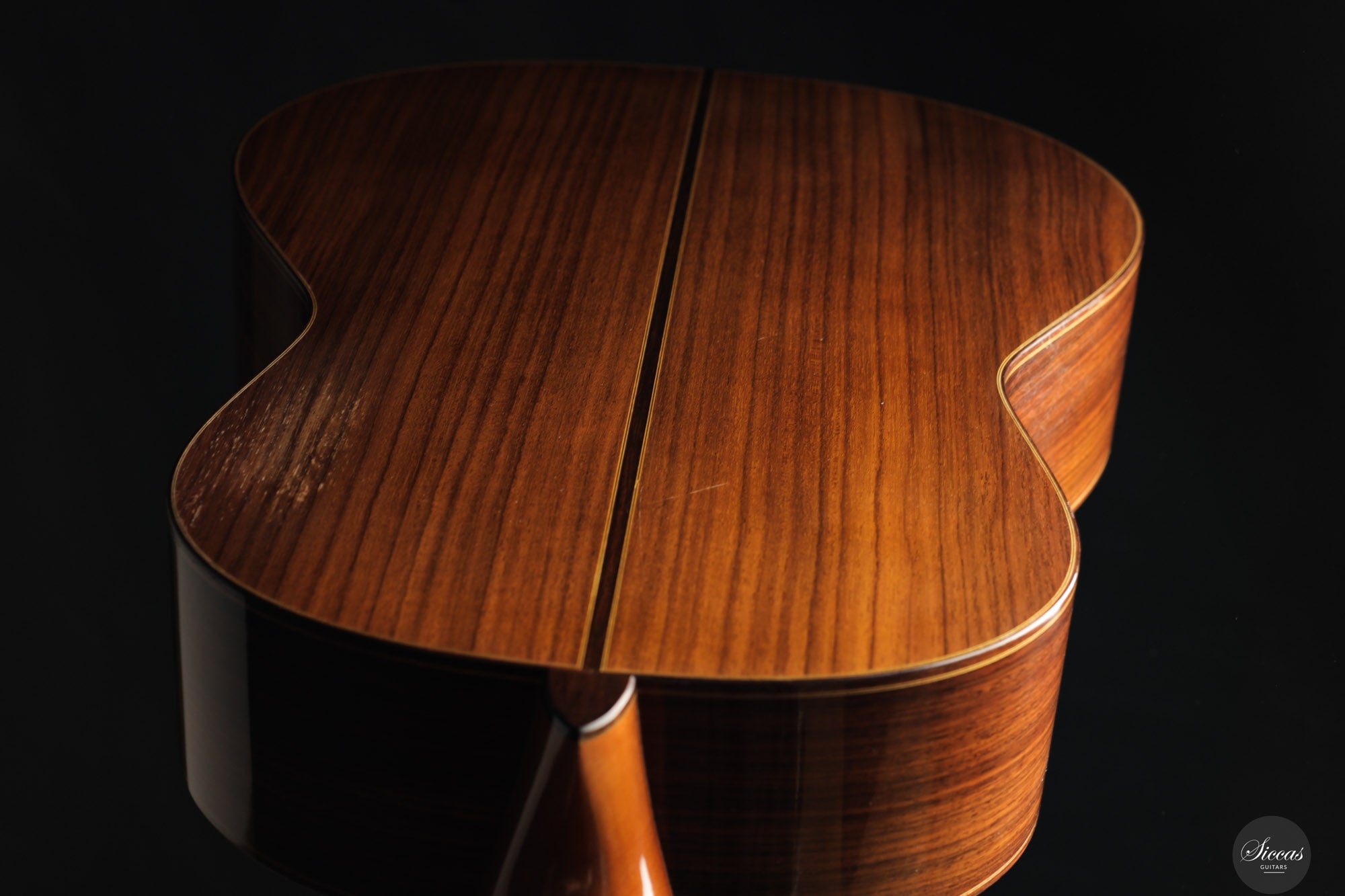 Diese außergewöhnliche Gitarre, Daniel Friederich Nr. 776 aus dem Jahr 2001, ist ein herausragendes Beispiel für das berühmte Konzertmodell des Pariser Meisters. Sie wurde speziell für die renommierte französische Gitarristin Gaëlle Solal gebaut und befand sich seither ausschließlich in ihrem Besitz. Die Decke besteht aus Zeder, Boden und Zargen aus ostindischem Palisander, das Finish ist eine Schellackpolitur, und als Mechaniken wurden hochwertige Rodgers-Tuner verwendet. Der Klang vereint die charakteristischen Merkmale eines Friederich-Instruments: ein runder, warmer Ton mit außergewöhnlichem Sustain, reiche Obertöne und perfekte Ausgewogenheit über alle Register hinweg. All dies wird ergänzt durch eine bemerkenswerte Projektion und einen großen Dynamikumfang – eine Seltenheit bei traditionell gebauten Instrumenten. Die Ansprache ist äußerst direkt und gleichmäßig, wodurch der Spieler zu einer nuancenreichen Ausdrucksweise eingeladen wird. Diese Gitarre unterstützt den Musiker in jeder Hinsicht und überzeugt mit Klarheit, Wärme und Präsenz. Auch handwerklich ist sie bis ins kleinste Detail ausgeführt und entspricht dem hohen Niveau, das man von Friederichs gefragtesten Instrumenten erwartet.Zustand