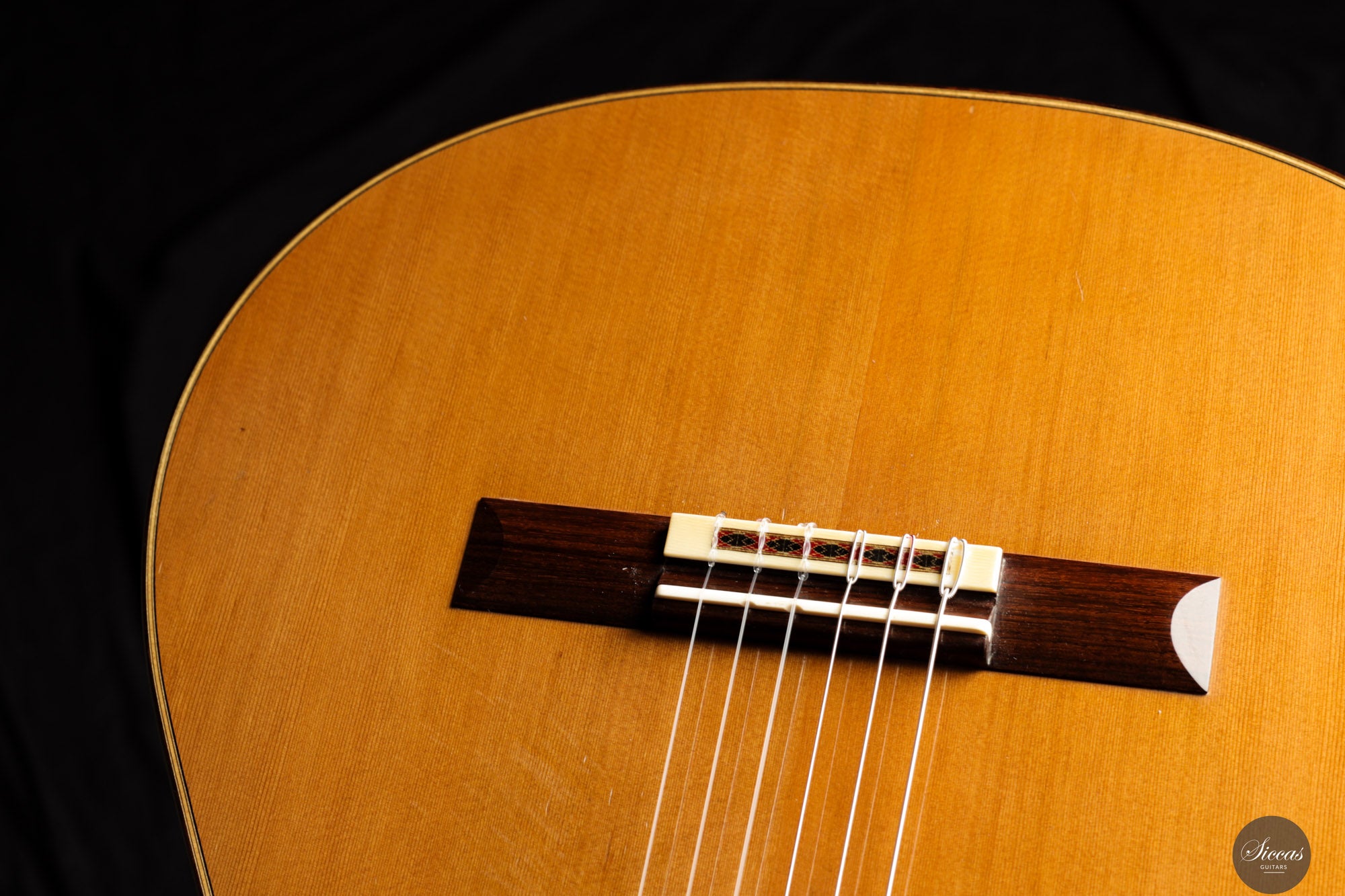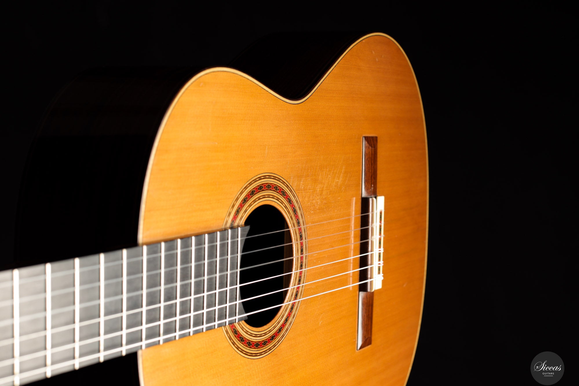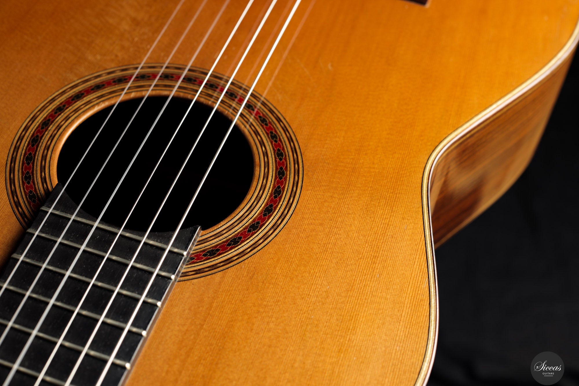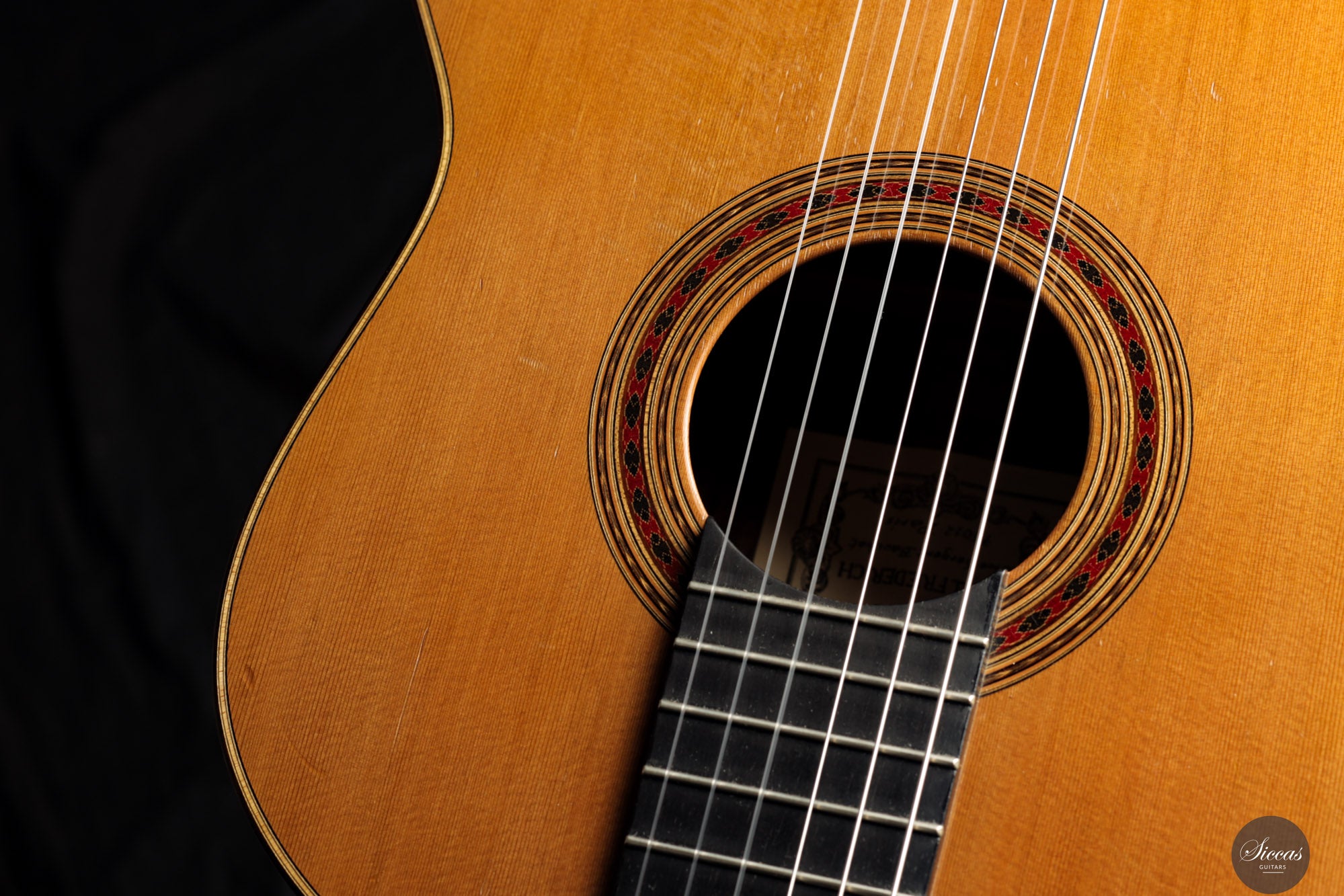 Diese Gitarre befindet sich in ausgezeichnetem Zustand und wurde von ihrer Erstbesitzerin stets professionell gepflegt. Sie weist normale Spielspuren aus professionellem Einsatz auf. Drei äußerst feine Haarrisse unterhalb der Stegeinlage wurden fachgerecht verleimt, ohne dass Verstärkungen erforderlich waren. Sie sind nahezu unsichtbar und vollständig stabil. Das Instrument wird in einem maßgefertigten, hochwertigen Accord-Koffer geliefert.Regelmäßige Pflege verlängert die Lebensdauer des Instruments