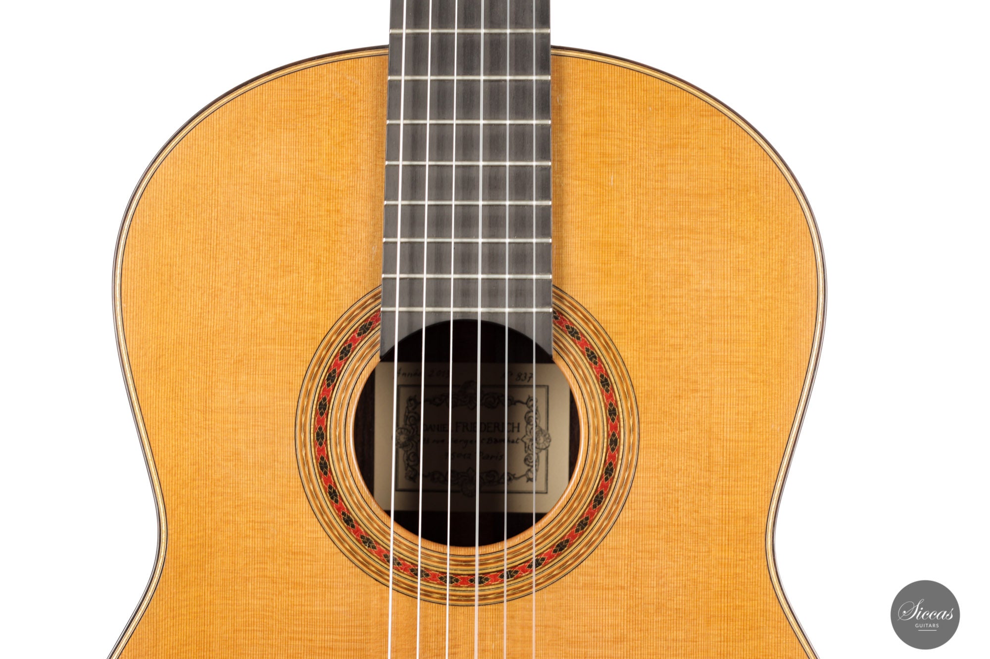 Außerdem ist diese Friederich, die wir aus erster Hand vom Erstbesitzer erhalten haben, in einem hervorragenden Zustand und auf Grund ihres unverwechselbaren Klangs ein herausragendes Meisterwerk des Gitarrenbaus. Wir sind geehrt und dankbar, ein solches Instrument anbieten zu dürfen.
