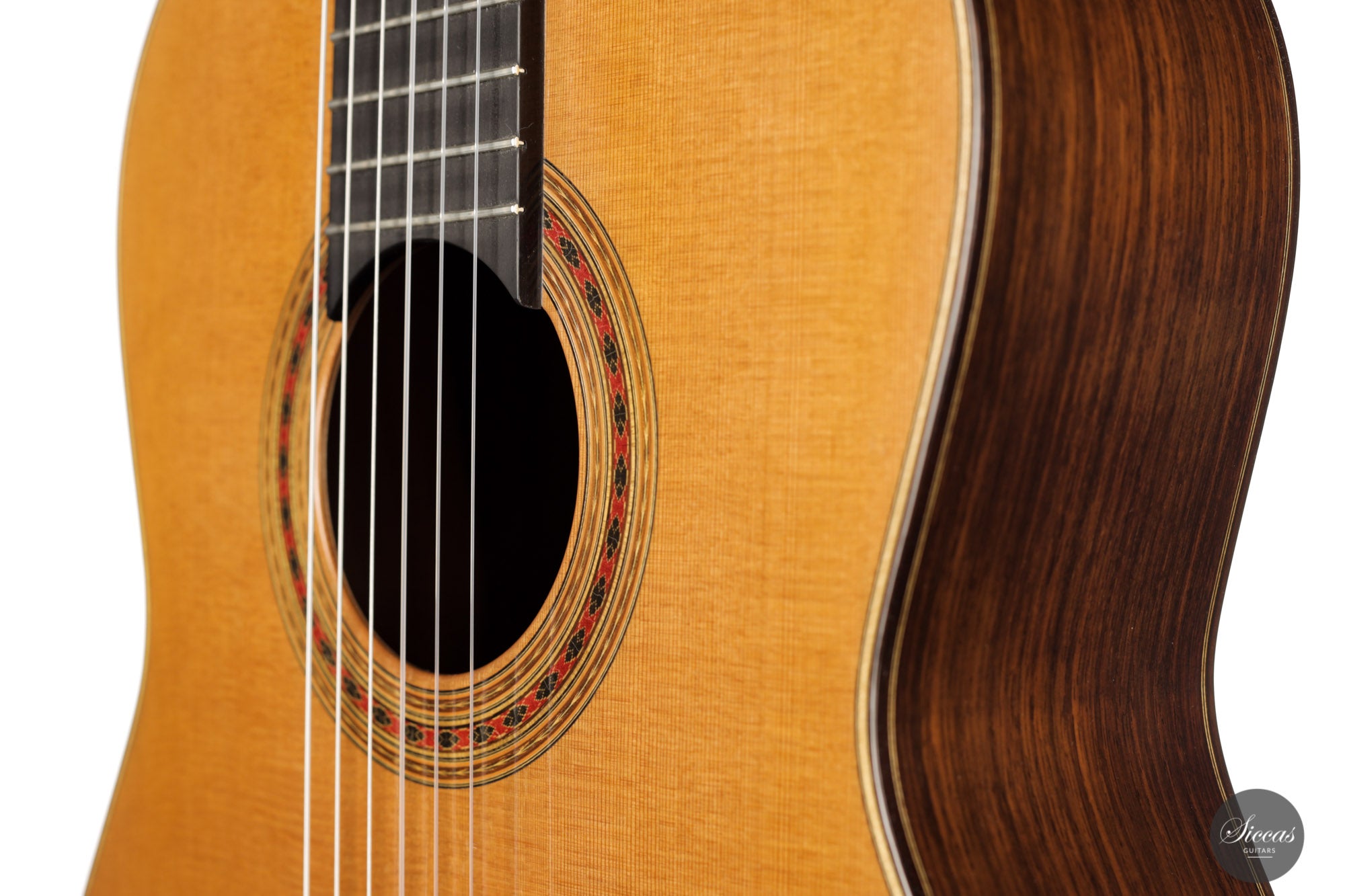 Es ist nicht einfach das Gefühl in Worte zu fassen, das einen überkommt, wenn man eine der seltensten und schönsten Gitarren in Händen hält, welche von einem der wohl angesehensten Gitarrenbauer der Geschichte gebaut wurde. Dieses wunderbare 2013 gefertigte Modell, seiner Zeit baute Daniel Friederich nur ein paar wenige Gitarren pro Jahr, ist nach unserer Einschätzung wahrscheinlich unter den 3 letzten Instrumenten, die er vollendet hat, bevor er sich zur Ruhe setzte. Kurzum es ist ein fantastisches Instrument, klanglich herausragend, voller Ausdruckskraft und Seele.