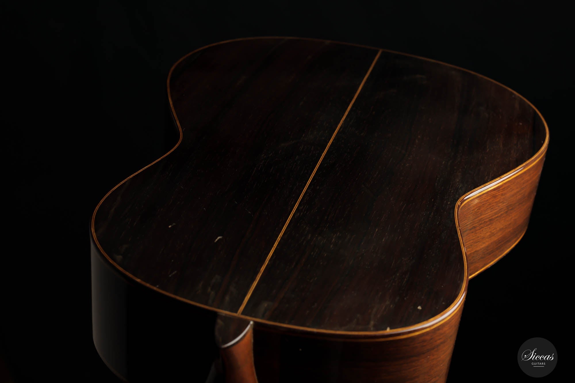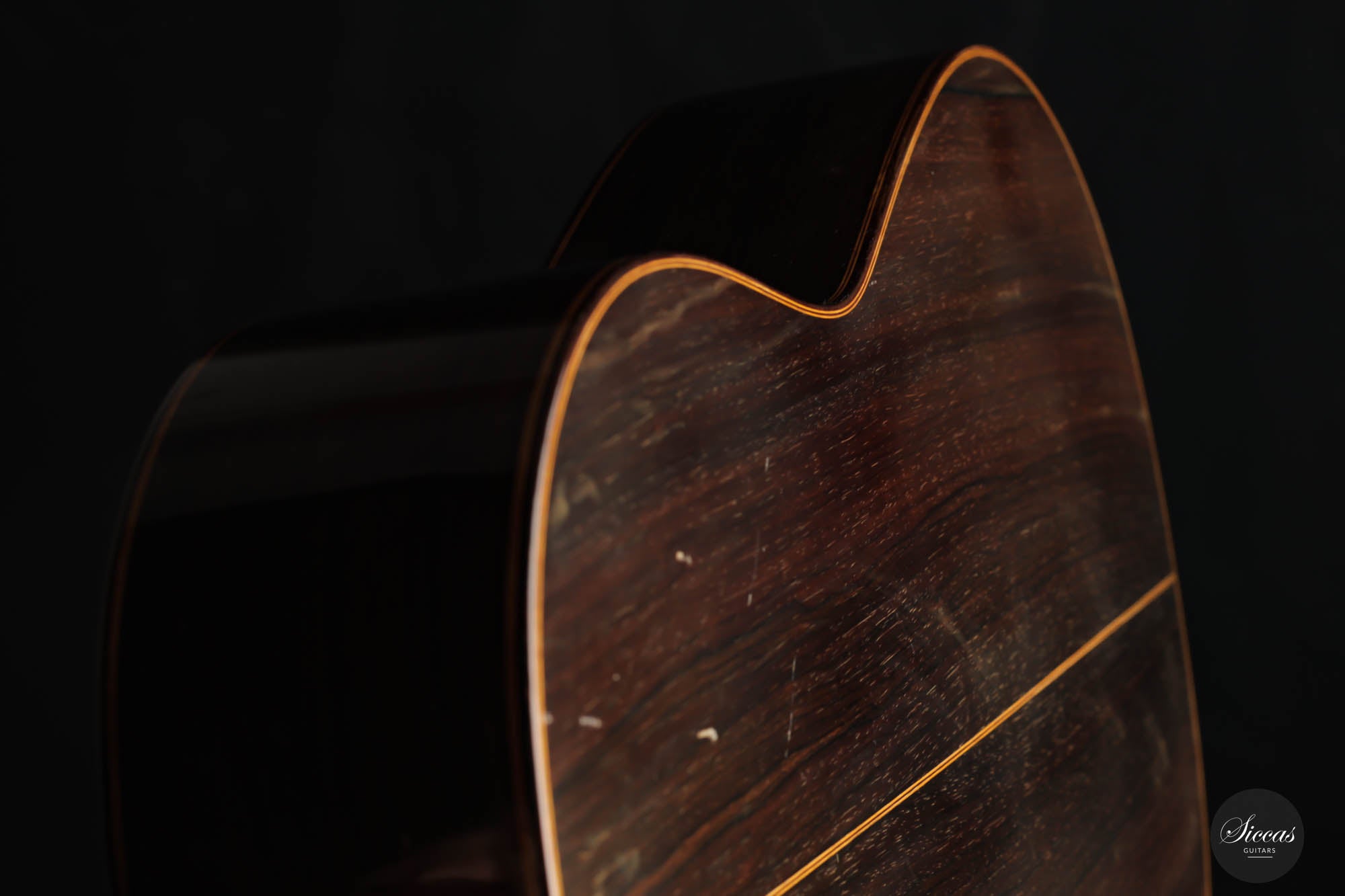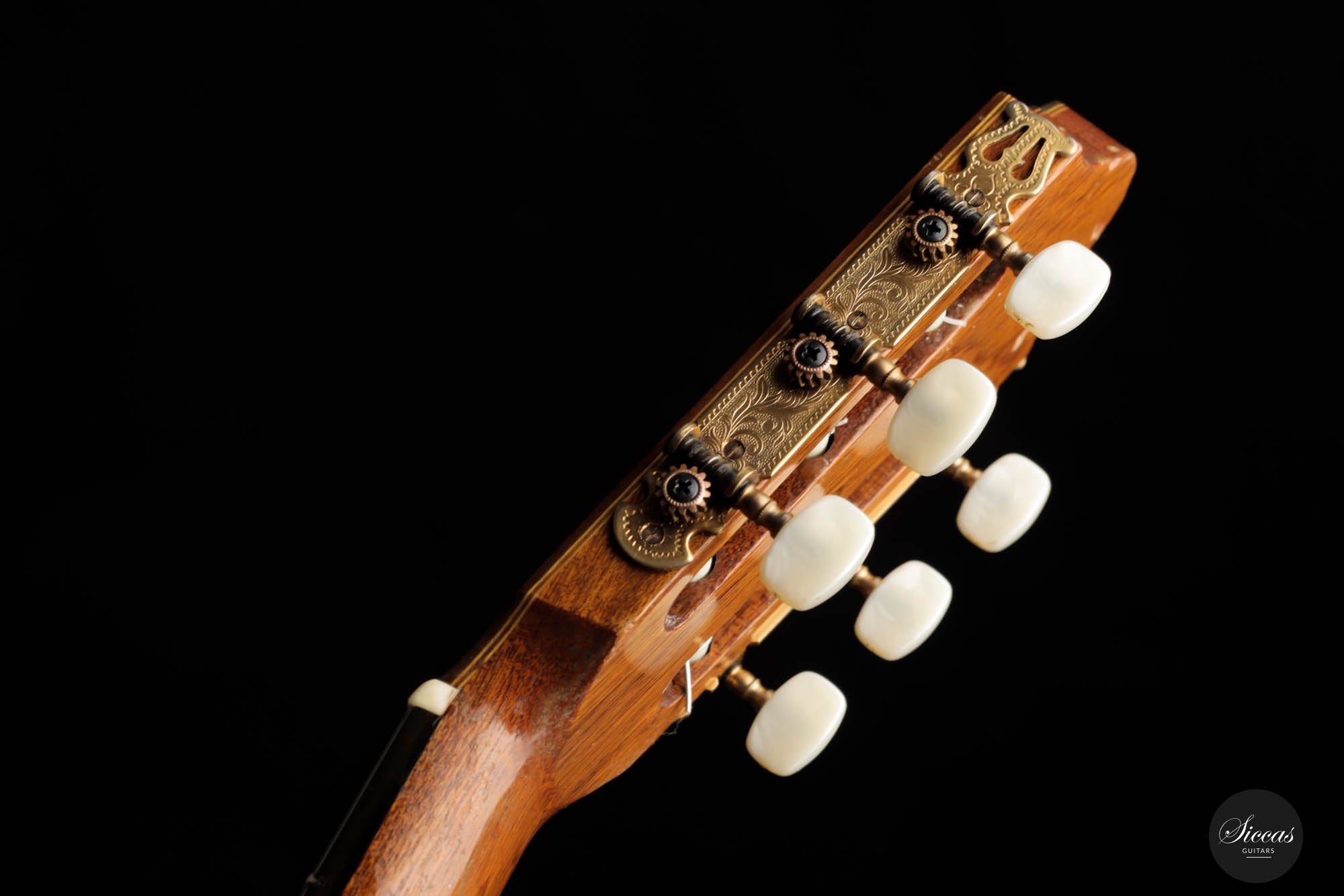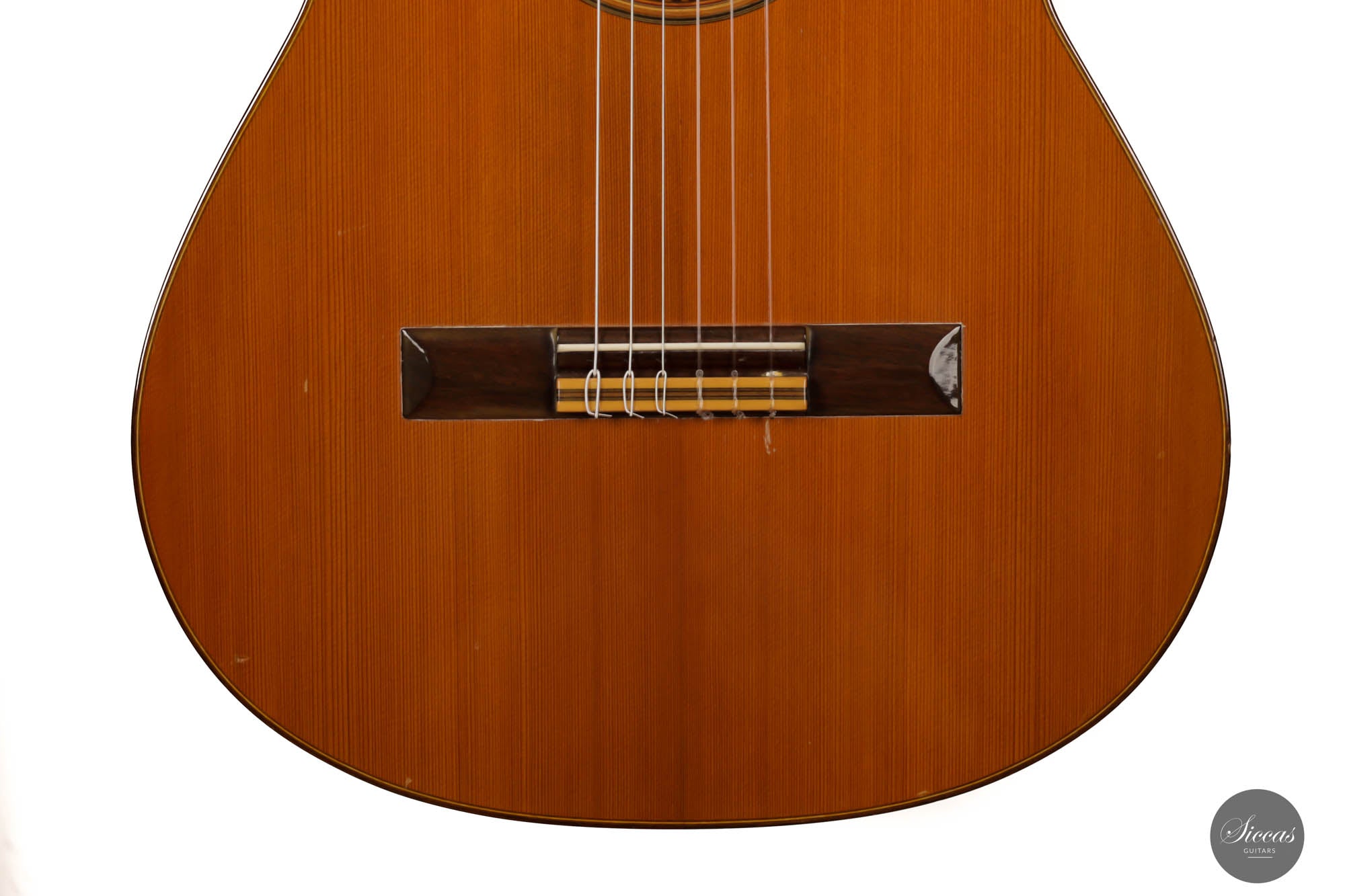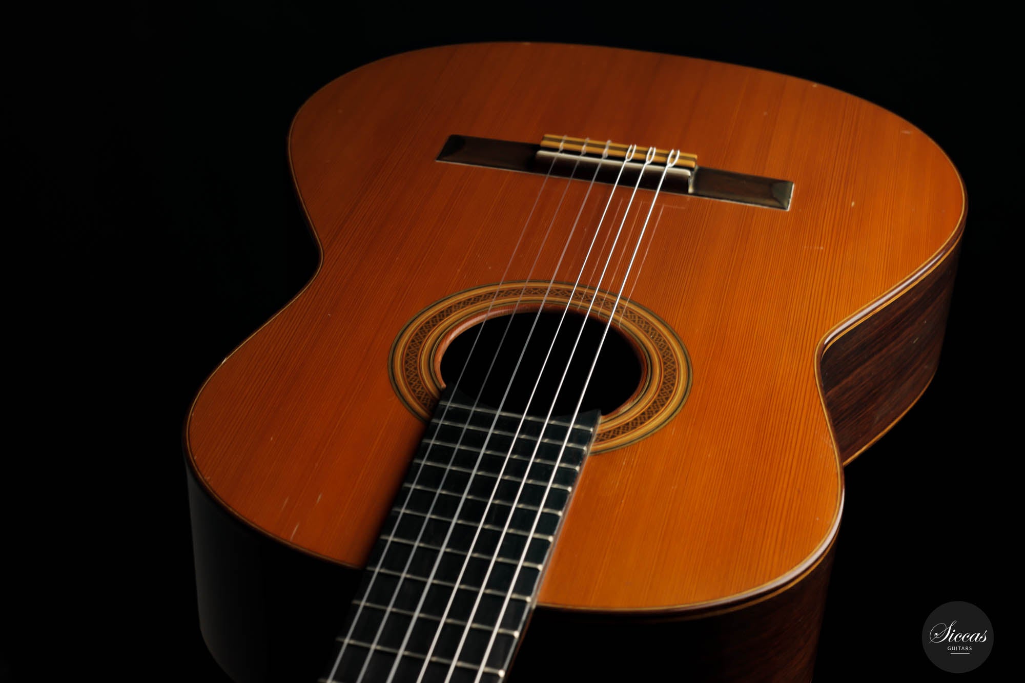 This magnificent guitar from 1975 is a perfect example of Daniel Lesueur's guitar at its finest. One can easily notice the similarities with Daniel Friederich's guitar. It is written on the label that this instrument is a copy of Daniel Friederich's guitar and authorized by Daniel Friederich himself ("Copie D. Friederich avec son autorisation"). Daniel Friederich started using cedar as a soundboard in 1973/1974. As this instrument from 1975 was also built using a cedar soundboard, it shows how close Daniel Friederich and Daniel Lesueur were. The guitar also comes with CITES-certified Brazilian rosewood back and sides, which is a true bargain for this price point. Acoustically, this instrument number 74 is a reminiscence of Daniel Friederich's guitar. It has a very similar timbre and sound character. The power and warmth of the tones are astonishing, and the color possibilities are inspiring. The complex-sounding trebles are to die for. This instrument is the chance for collectors and Friederich's guitars fan to own a very rare instrument at a very attractive price point.