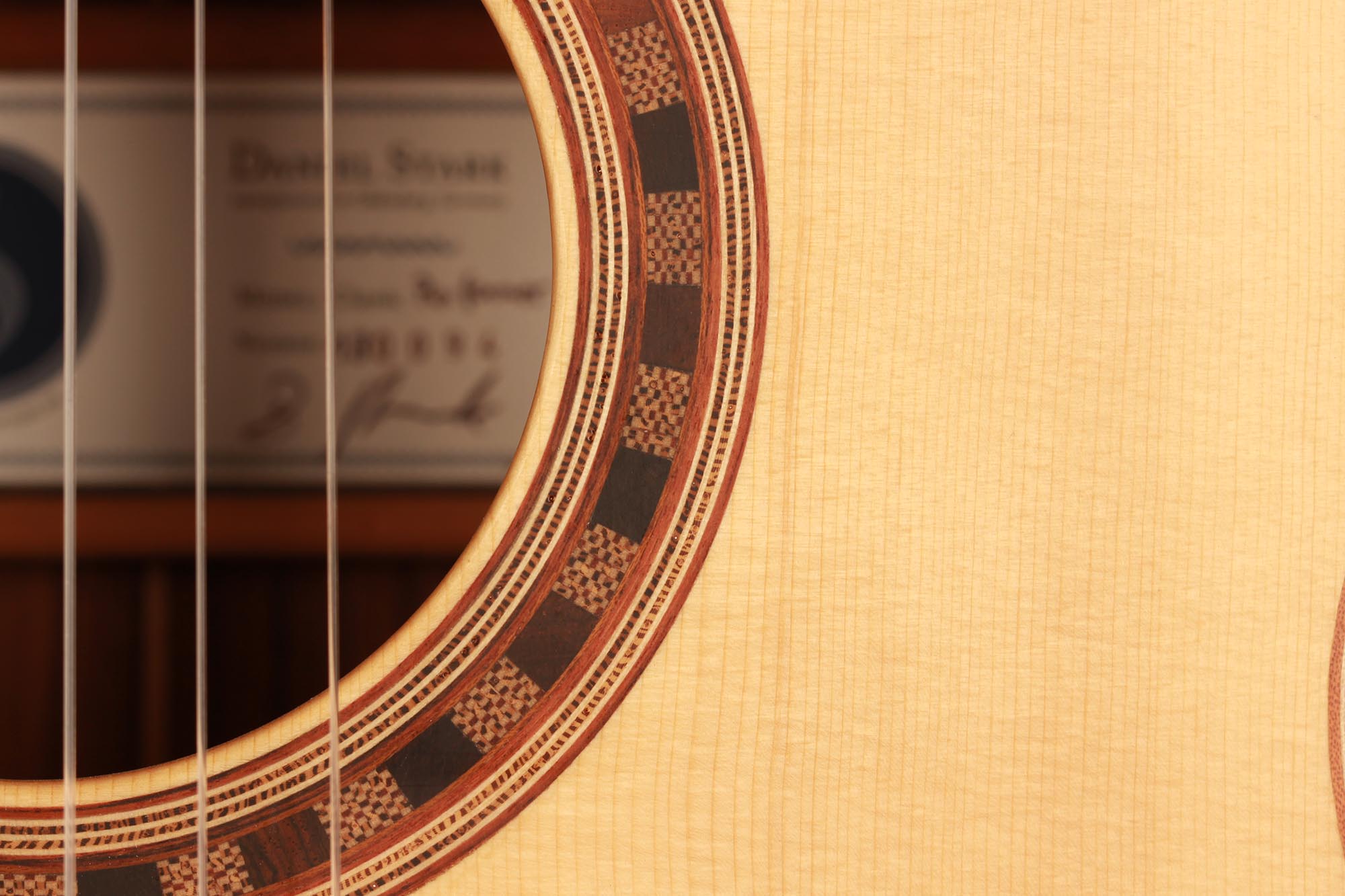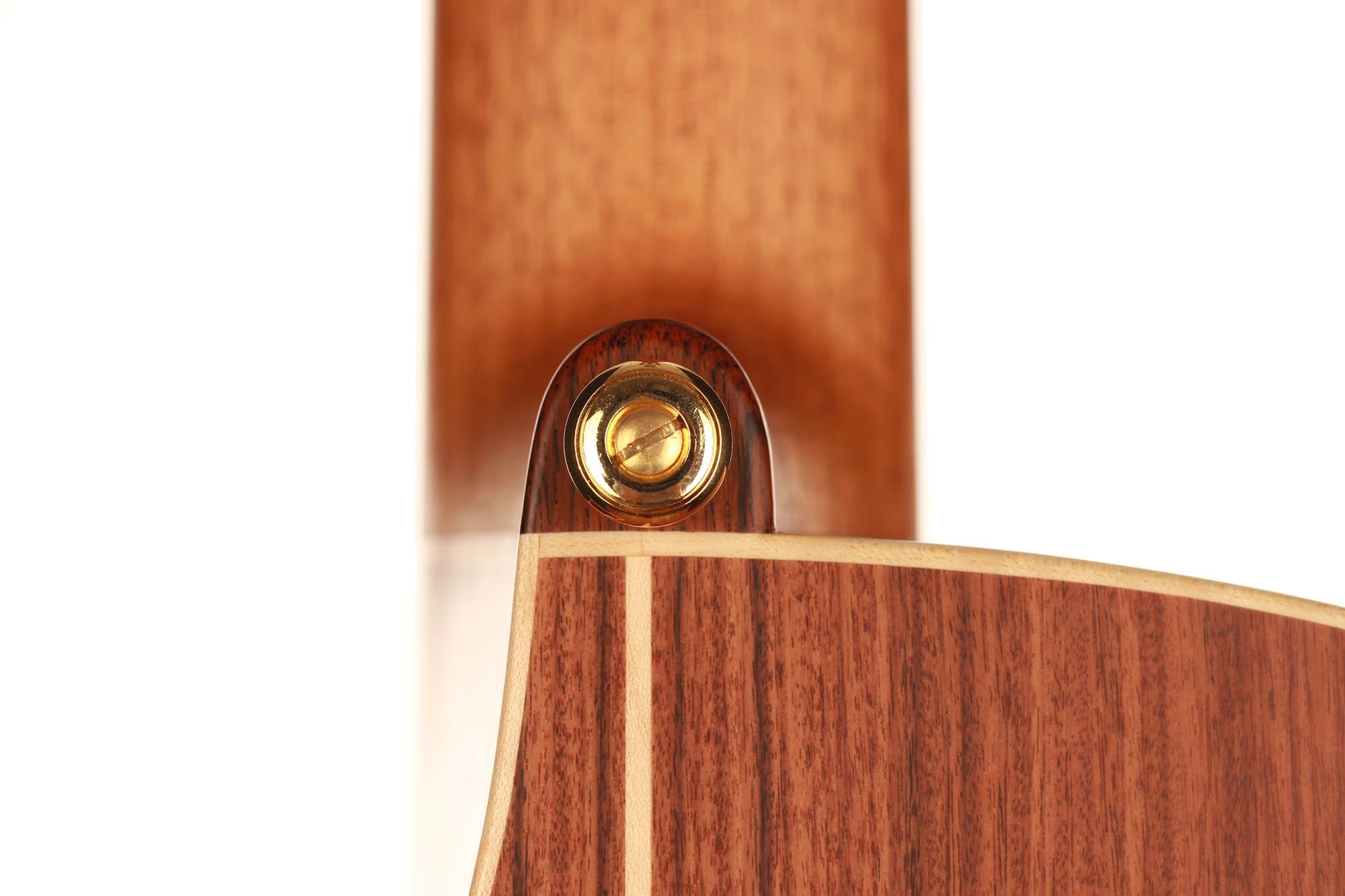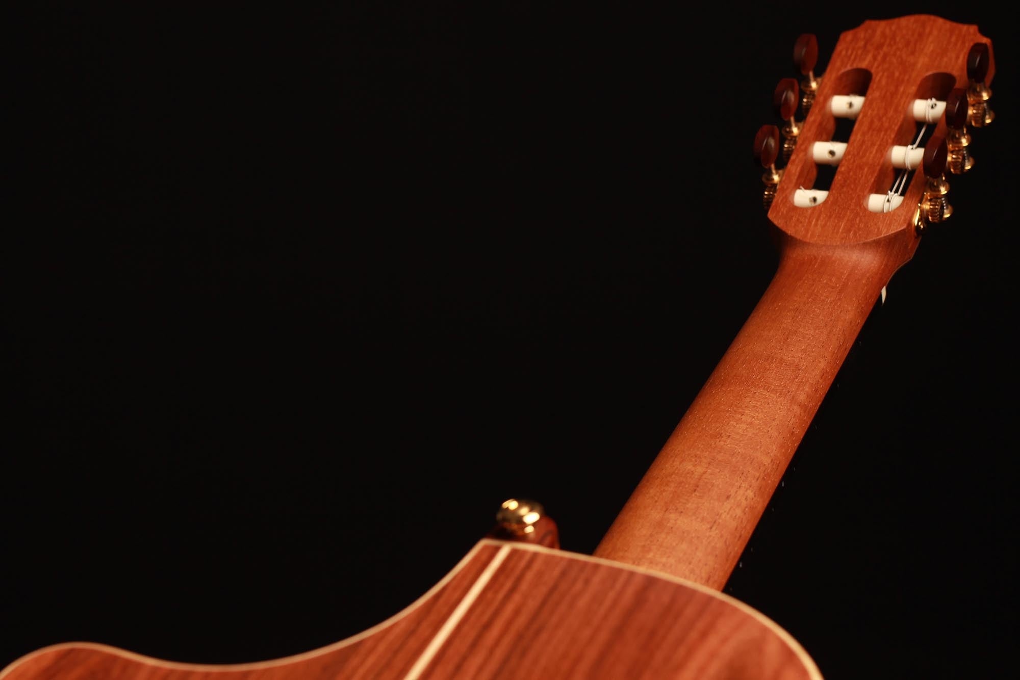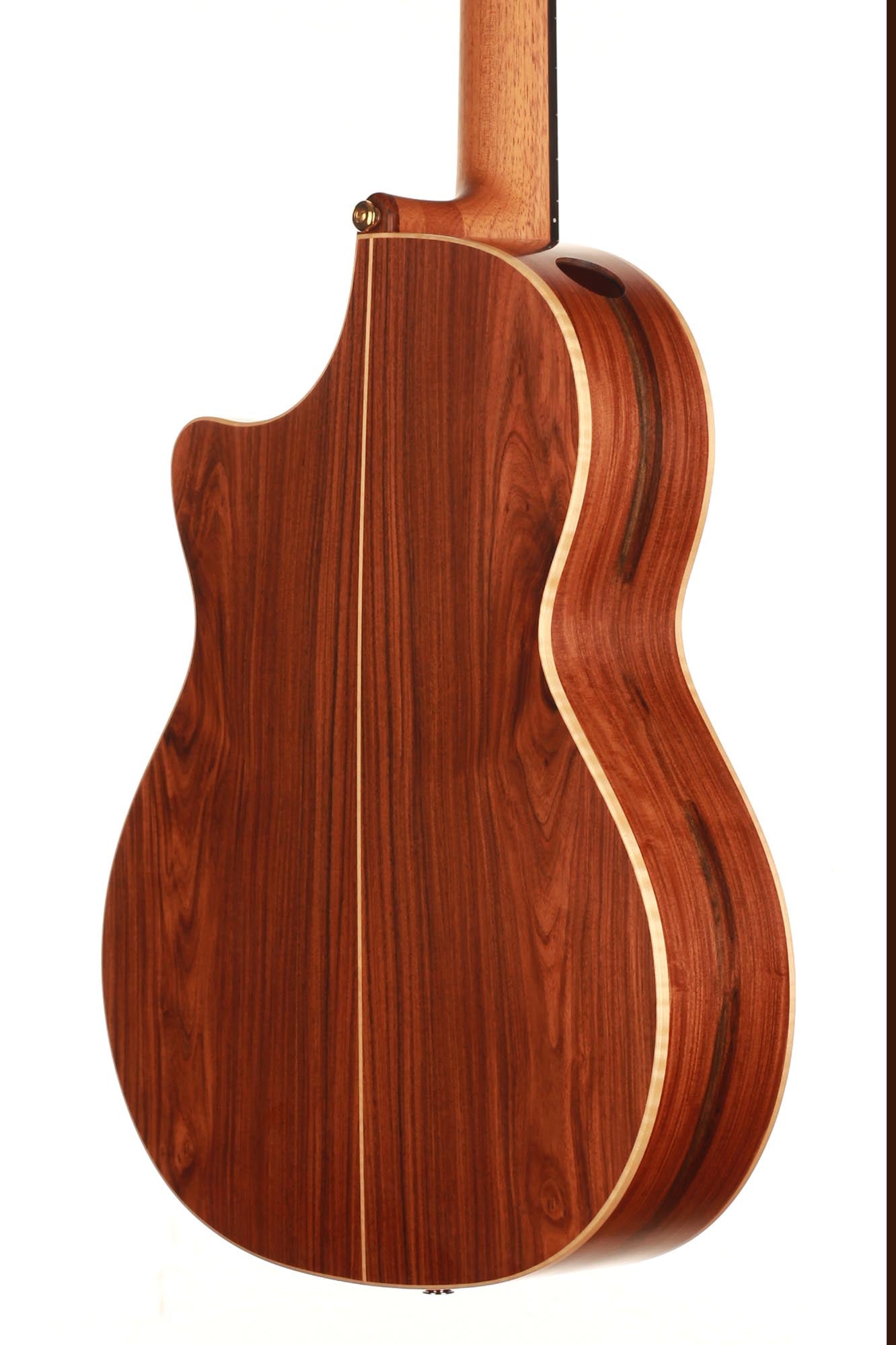 Darüber hinaus hat die Gitarre zusätzliches Zargen-Schallloch, so dass sich der Gitarrist beim Spielen selbst besser hören kann. Der Tonabnehmer ist ein hochwertige Carlos VIP DM, mit Untersattel-Koaxial-(VIP)-Wandler und Mini-Mikro, MONO-Ausgang, 3 Regler am Schallloch (Master, Ton, Mikroverstärkung). Dieses vielseitige Modell ist außerdem CITES-frei.
