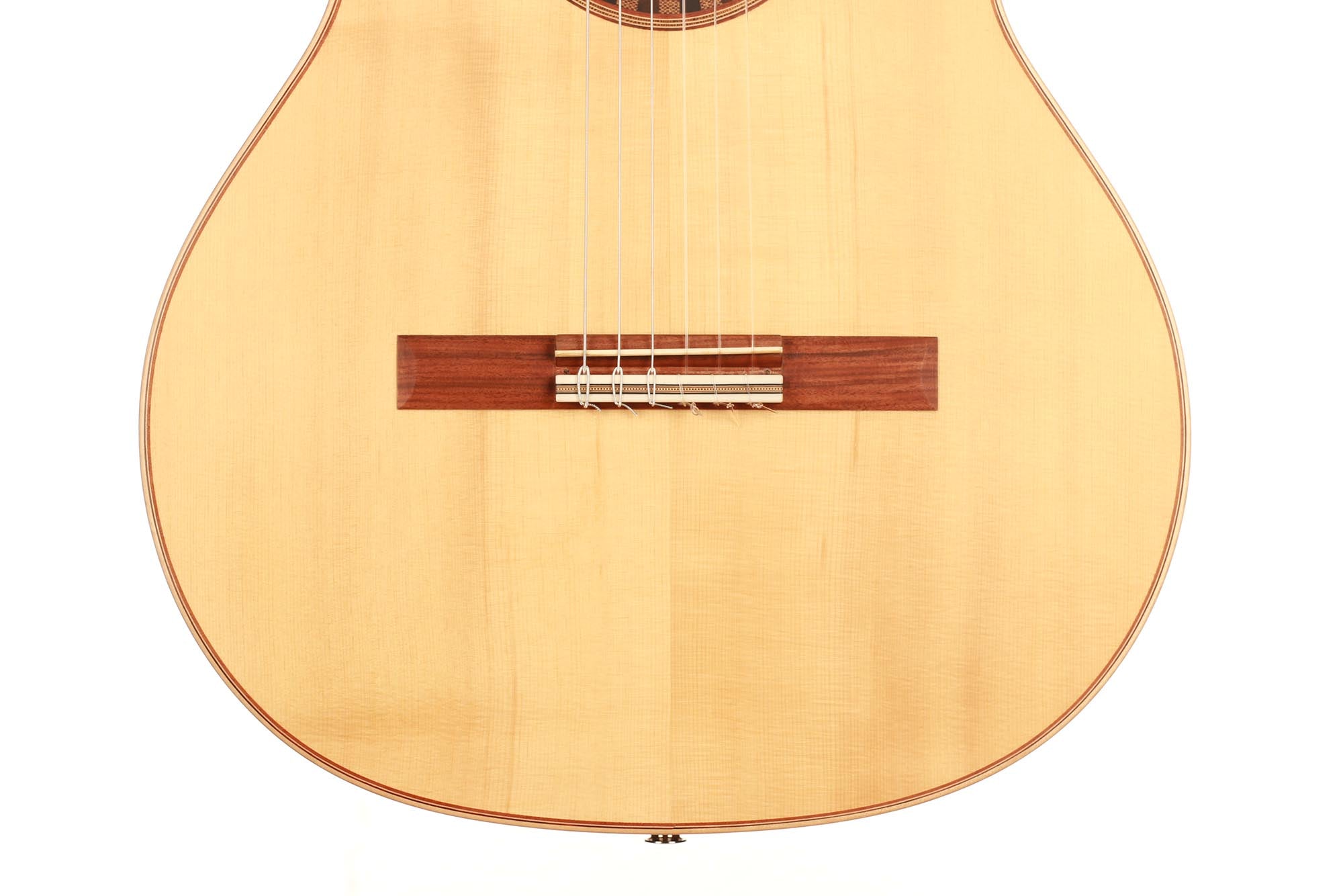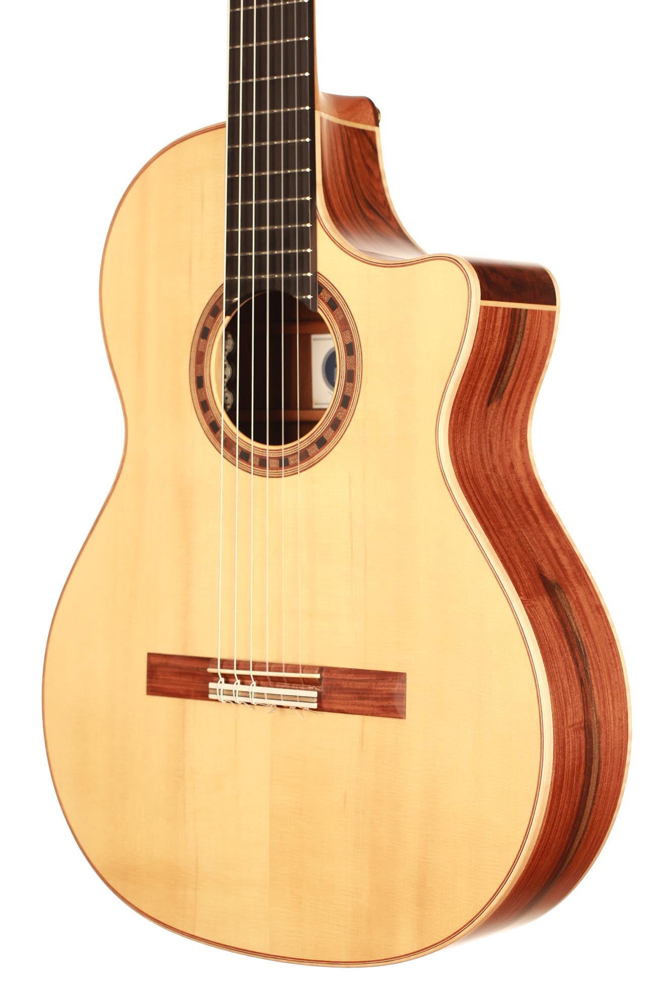 Dieses "Performer" Fusionsmodell, eignet sich hervorragend für verschiedenste Musikrichtungen mit oder ohne Verstärkung. Die Gitarre hat einen etwas dünneren Hals als traditionelle klassische Modelle, was beispielsweise das spielen von Akkorden mit dem Daumen möglich macht. Die 64 cm Mensur erhöht den Spielkomfort dieser Allround-Gitarre.