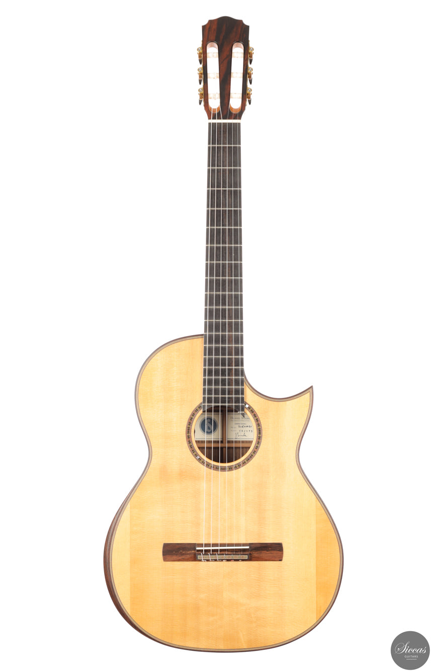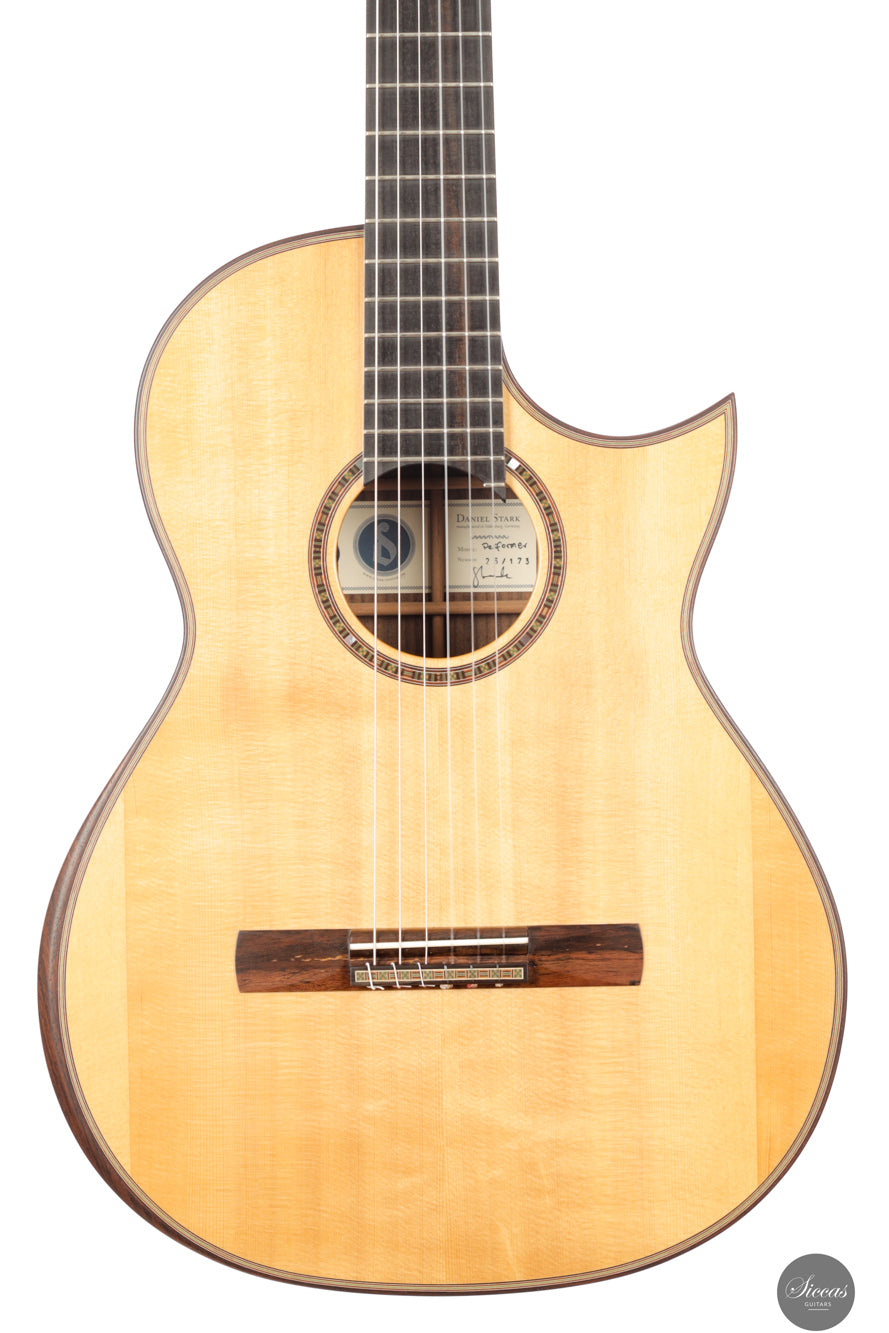 Daniel Starks „Performer“-Modell von 2026 ist eine traditionell gebaute Crossover-Gitarre mit Fichtendecke, Palisanderkorpus und schlankem Hals für moderne Vielseitigkeit. Sie bietet ausgewogene Projektion, differenzierten Klang und ein integriertes Carlos VIP DM-System für Bühne und Studio.