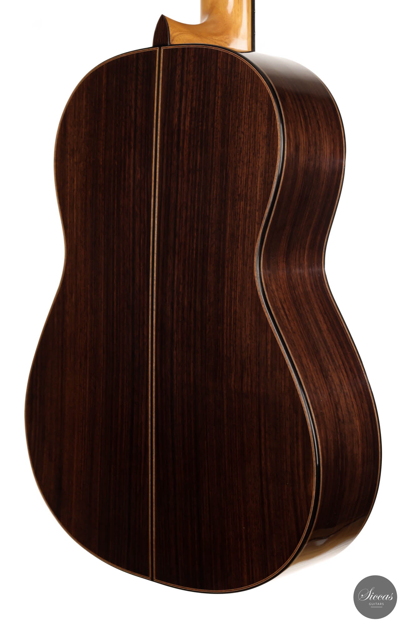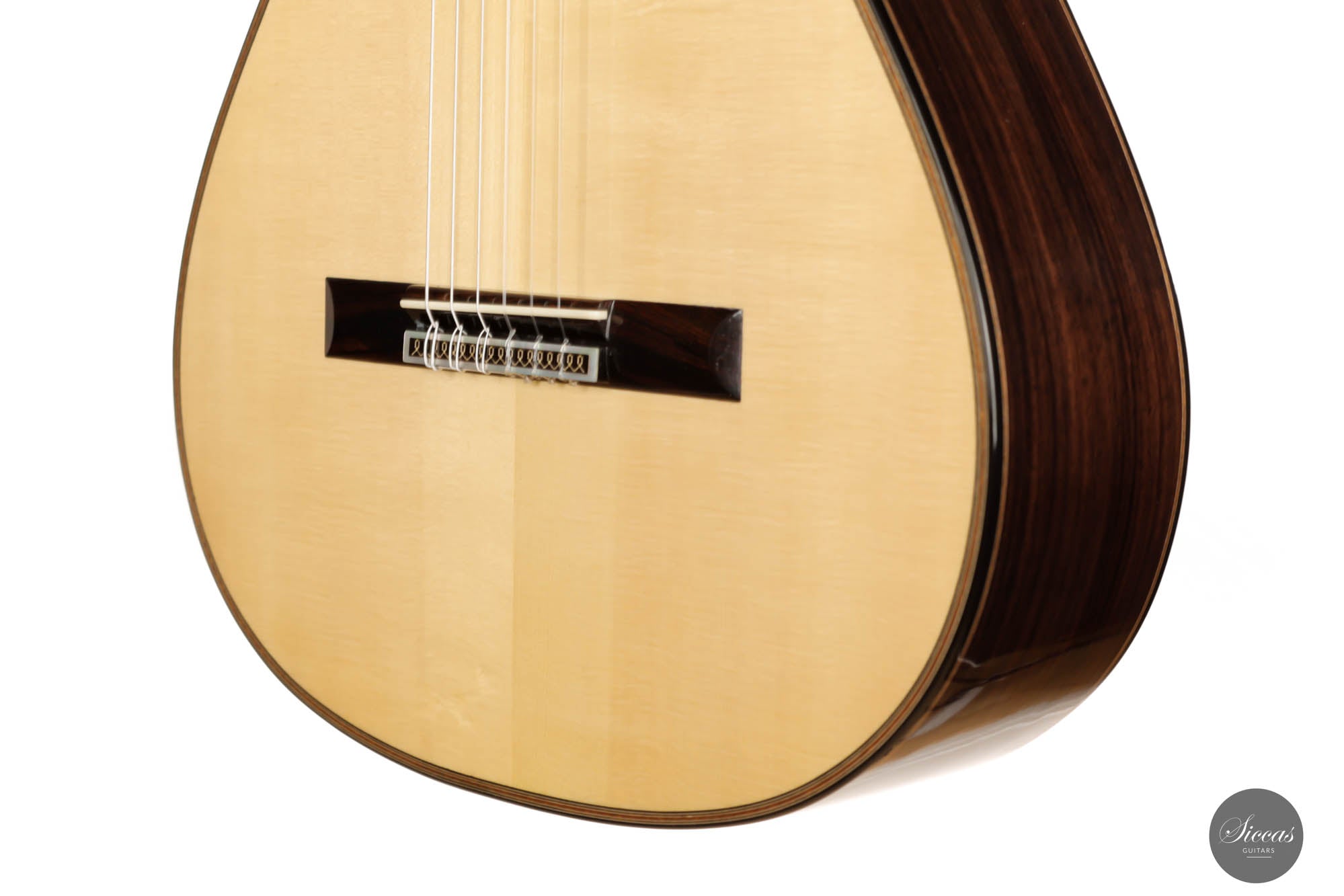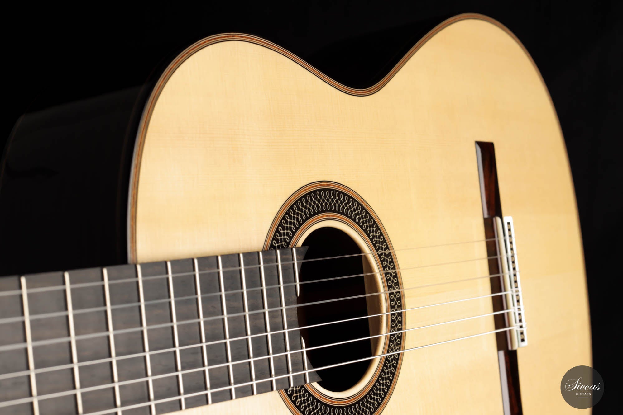Diese Gitarre von Daniele Marrabello ist eine besonders reizvolle und edel gestaltete Gitarre mit einer absolut herausragenden Auswahl an Hölzern. Die Ästhetik dieses Instruments ist beeindruckend, und Daniele hat seine handwerkliche Kunstfertigkeit bei diesem Instrument vollständig ausgeschöpft. Die Kombination aus dreiteiligem indischem Palisander, einer federleichten, von Hand gespaltenen Decke aus Schweizer Fichte erster Klasse und einem intensiv geflammten Cedrela-Odorata-Hals mit einer Fülle von feinen und eleganten Verzierungen machen sie zu einem beeindruckenden Gesamtkunstwerk.
