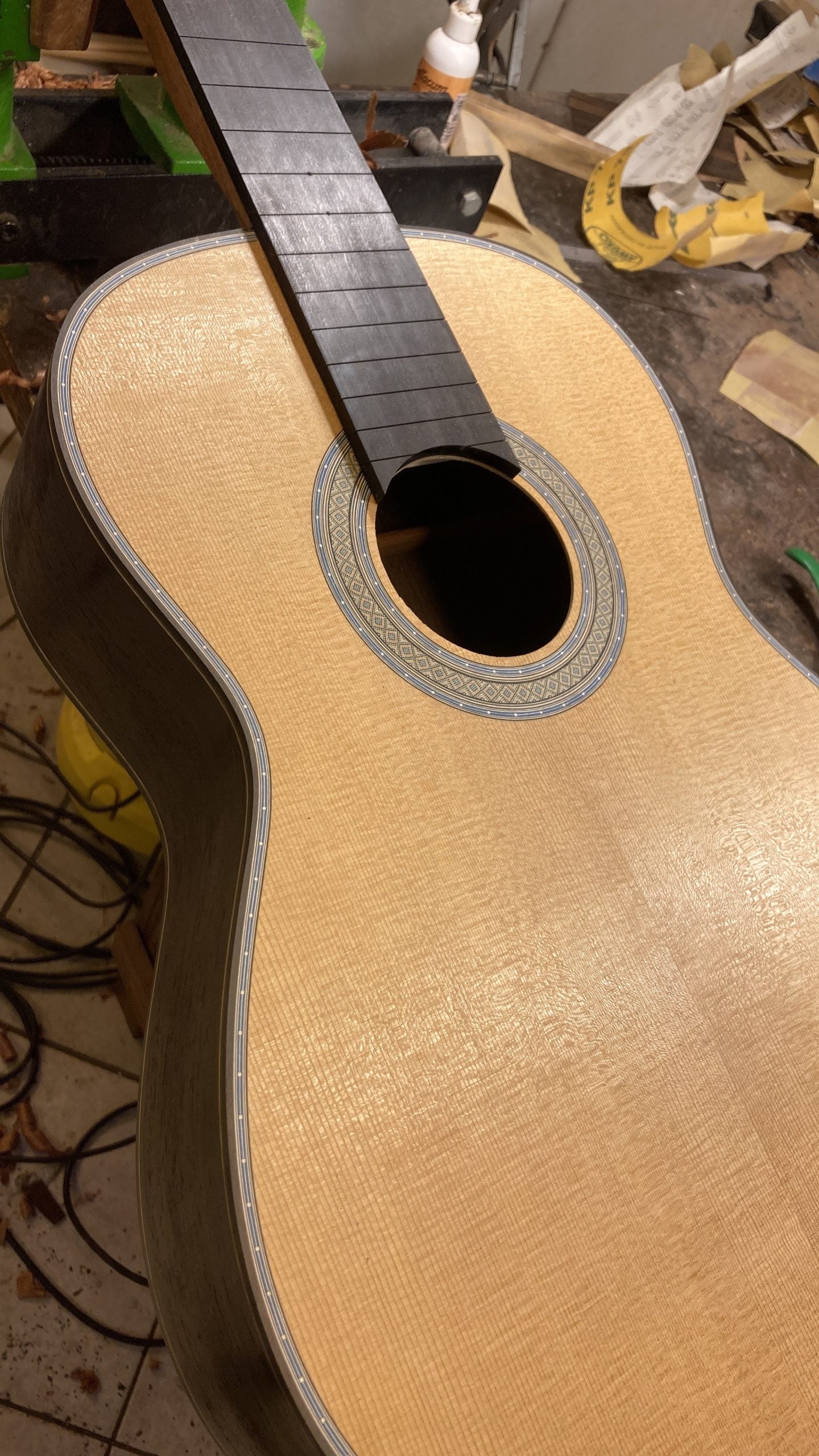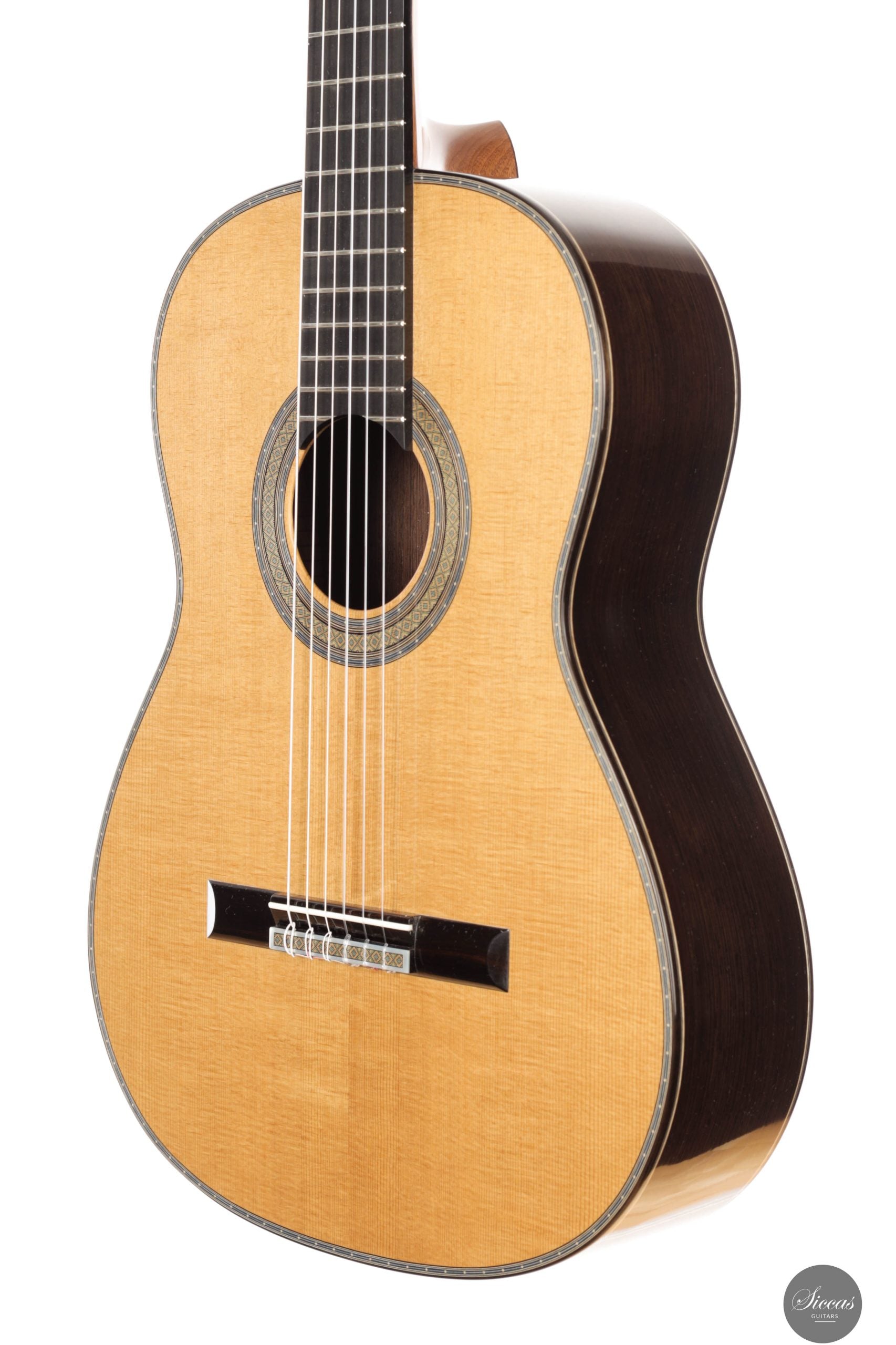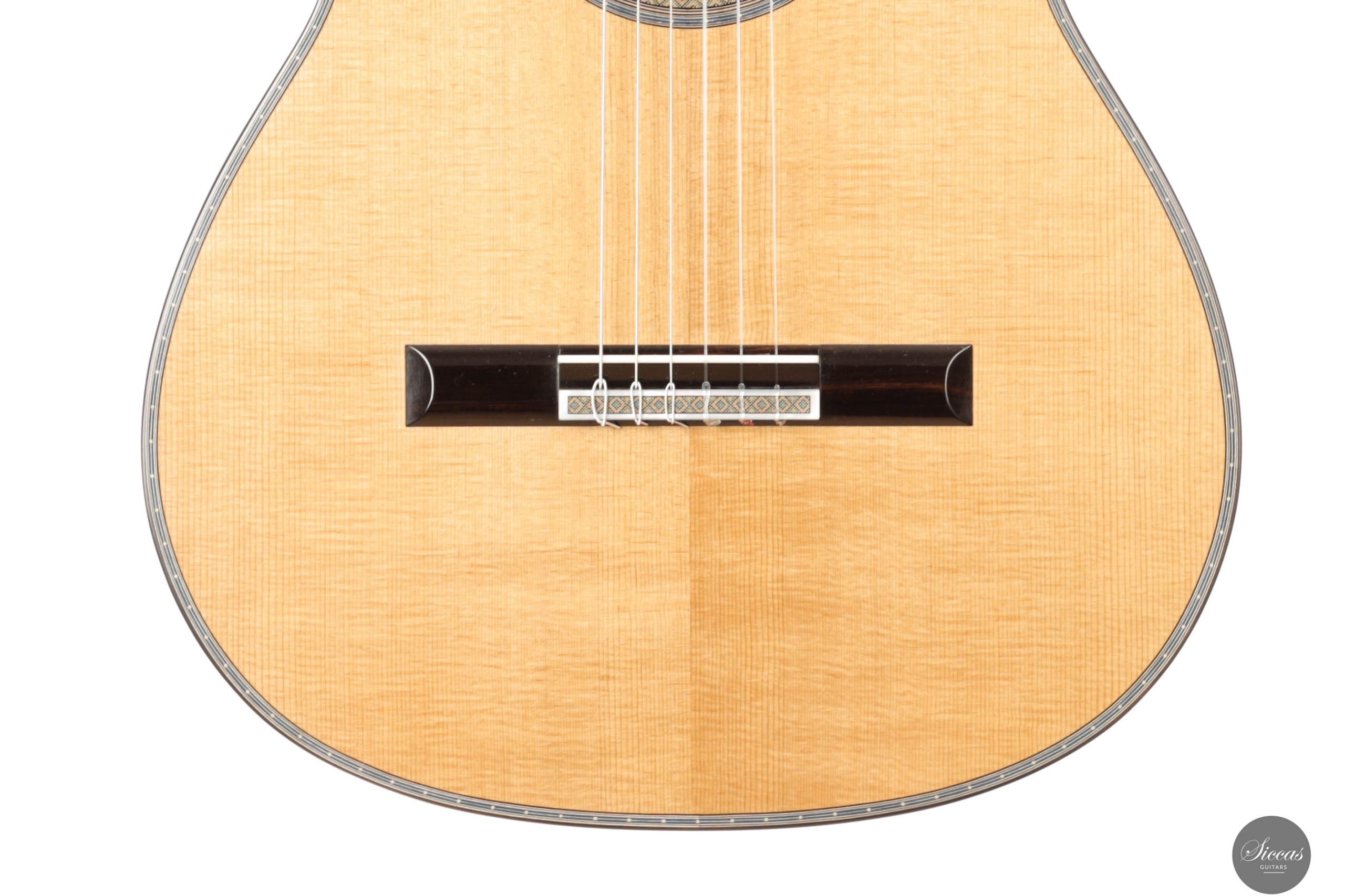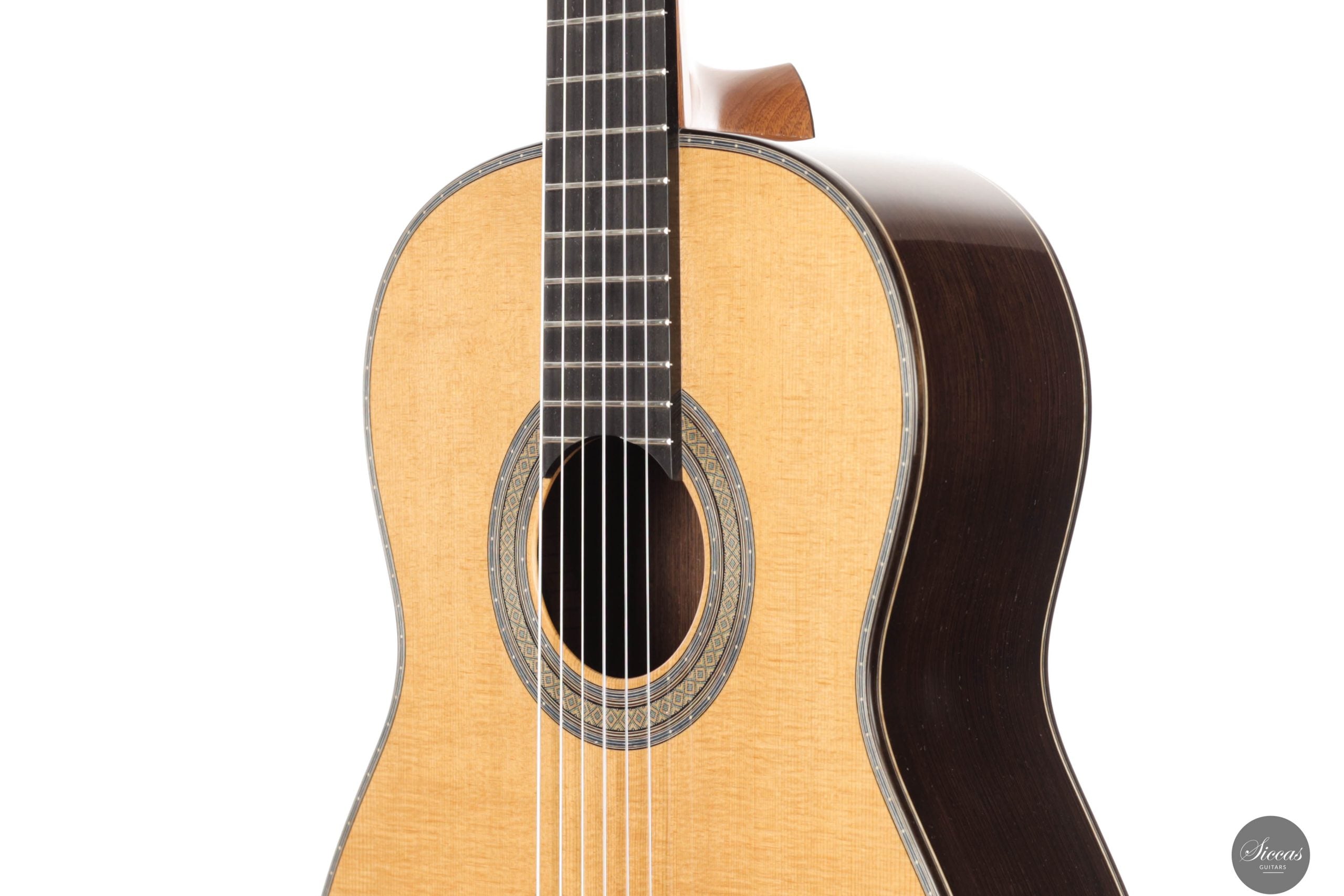 It delivers crystal-clear trebles with balanced, focused basses, providing a sound that is both refined and powerful. The choice of wengé for the back and sides significantly enhances the projection and overall volume of the instrument, giving it the strength and presence required for concert performance. This guitar responds beautifully to polyphonic repertoire, allowing complex musical textures to be articulated with clarity and depth. In addition, it offers a remarkably organic timbre that feels natural and pleasing to the ear.