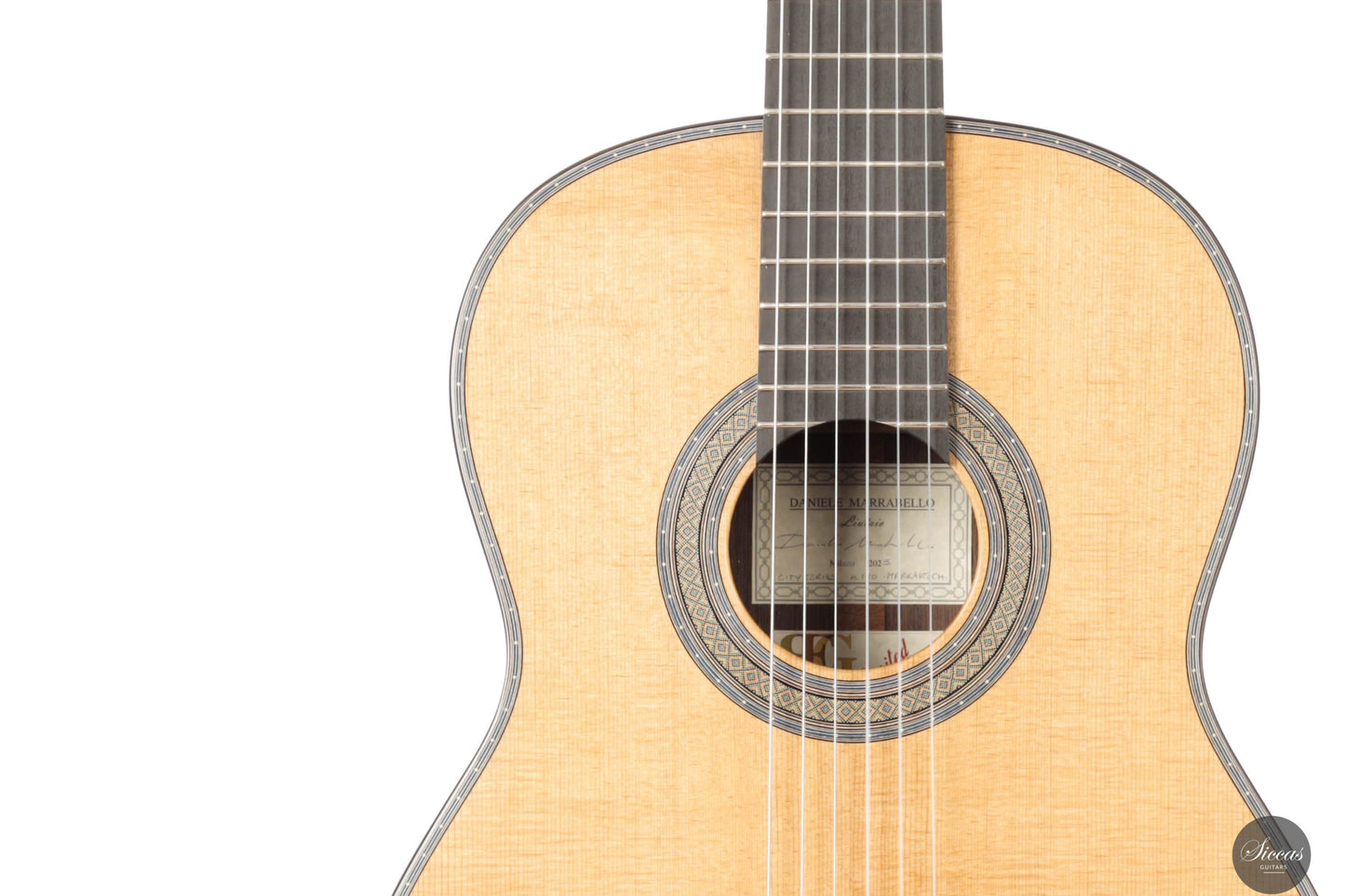 Daniele Marrabello is one of the most sought-after Italian luthiers. After his guitar-making studies at the Civica Scuola di Liuteria in Milan, he became Enrico Bottelli’s pupil and deepened his woodworking skills, aesthetical identity, and sound personality under the guidance of the esteemed maestro. Daniele Marrabello opened his personal workshop in Vimodrone, on the outskirts of Milan, in 2012.
