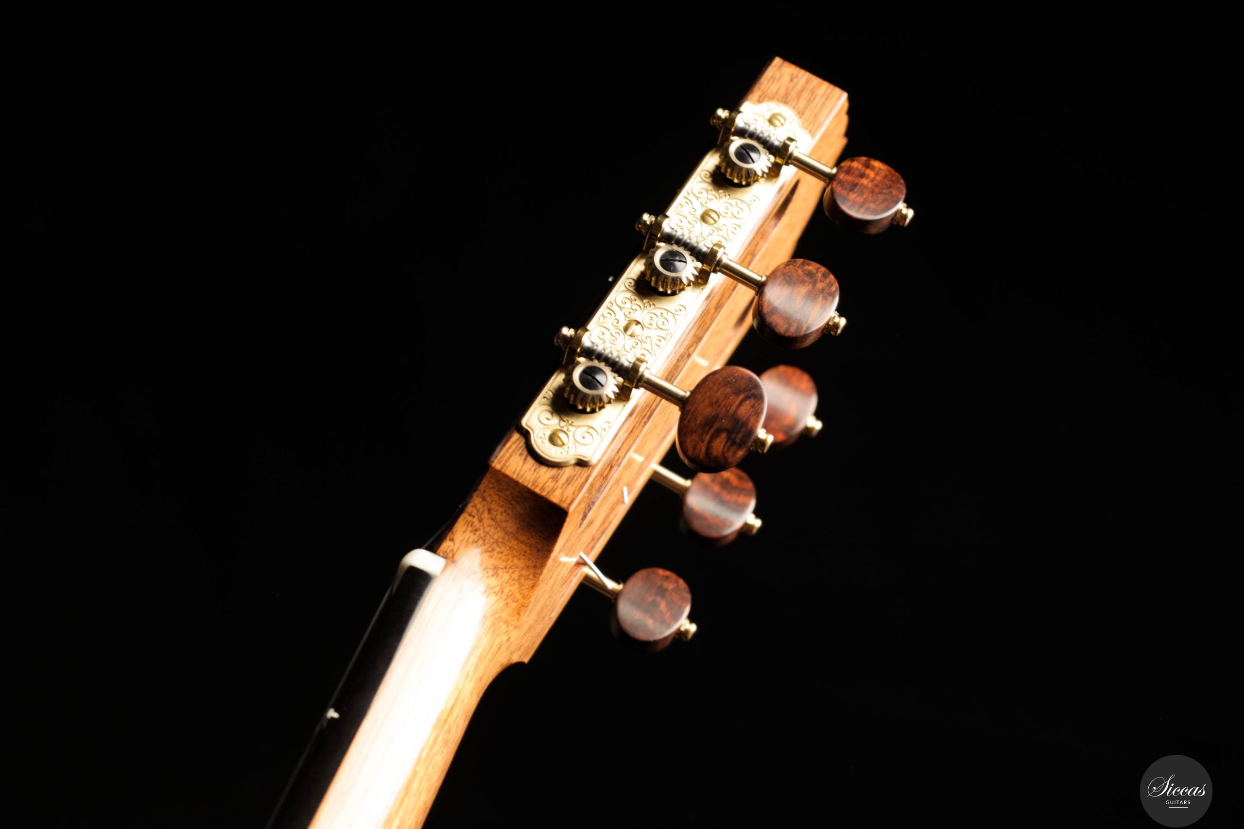 Crafted with torrefied spruce for the soundboard and wengé for the back and sides, “Marrakech” blends warm tonal colors with deep contrasts, reflecting the palette of the city and the nearby desert. The neck is made from sipo mahogany, complementing the overall harmony of African woods used in this instrument.